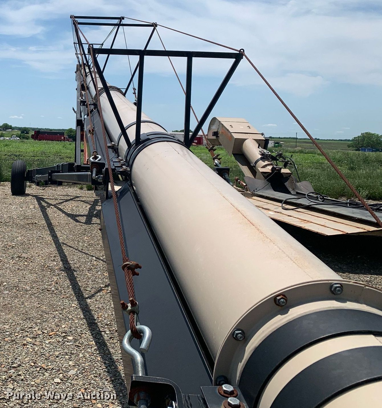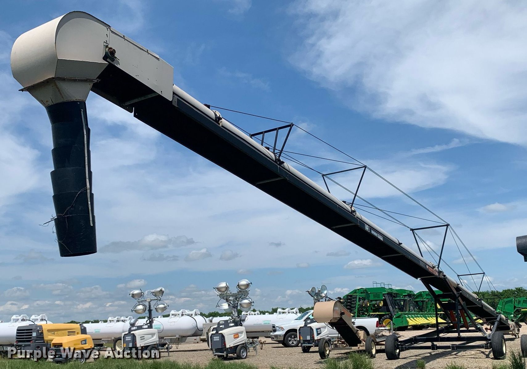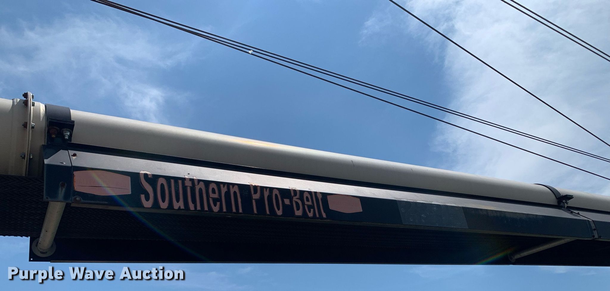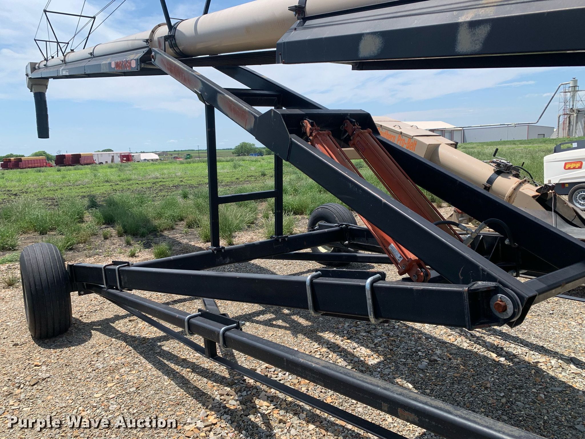 Purple Wave is selling a used Auger or Conveyor in Texas. This item is a Universal Souther Pro-Belt 2295 conveyor with the following: Length: 97', Width: 22", Lift: Hydraulic