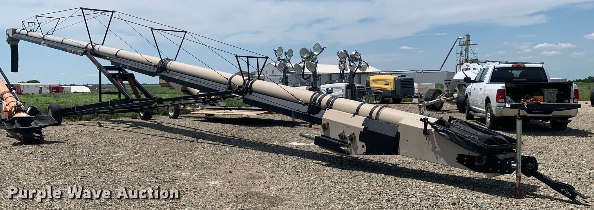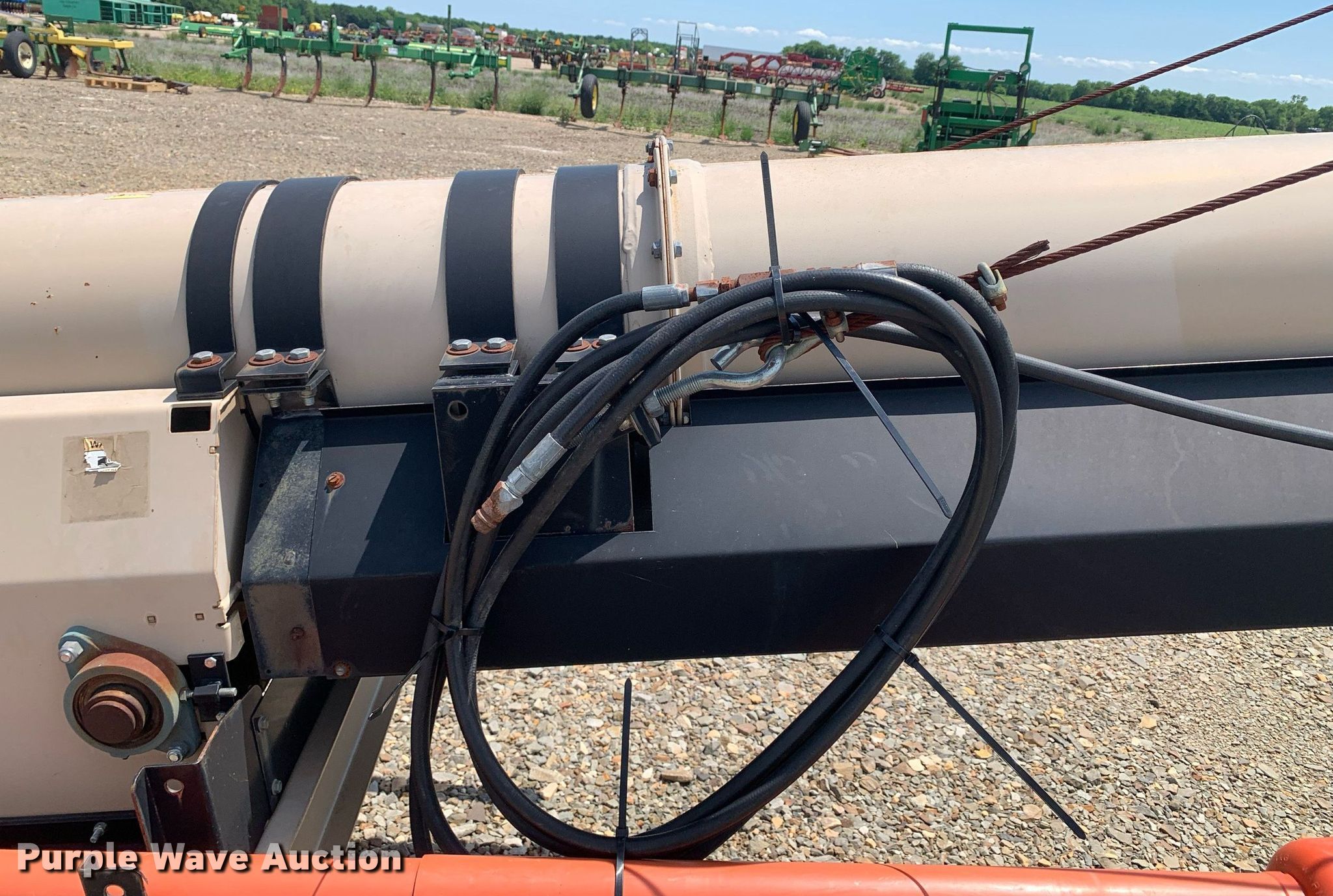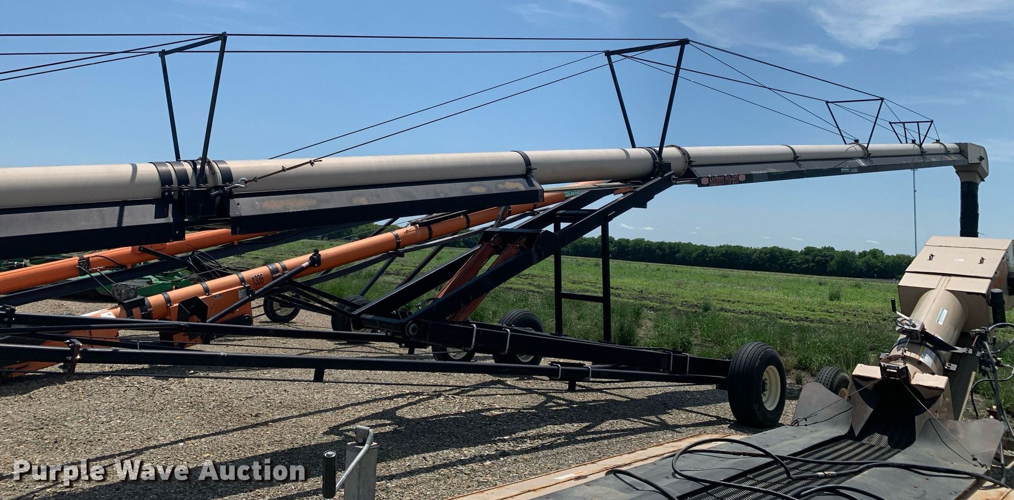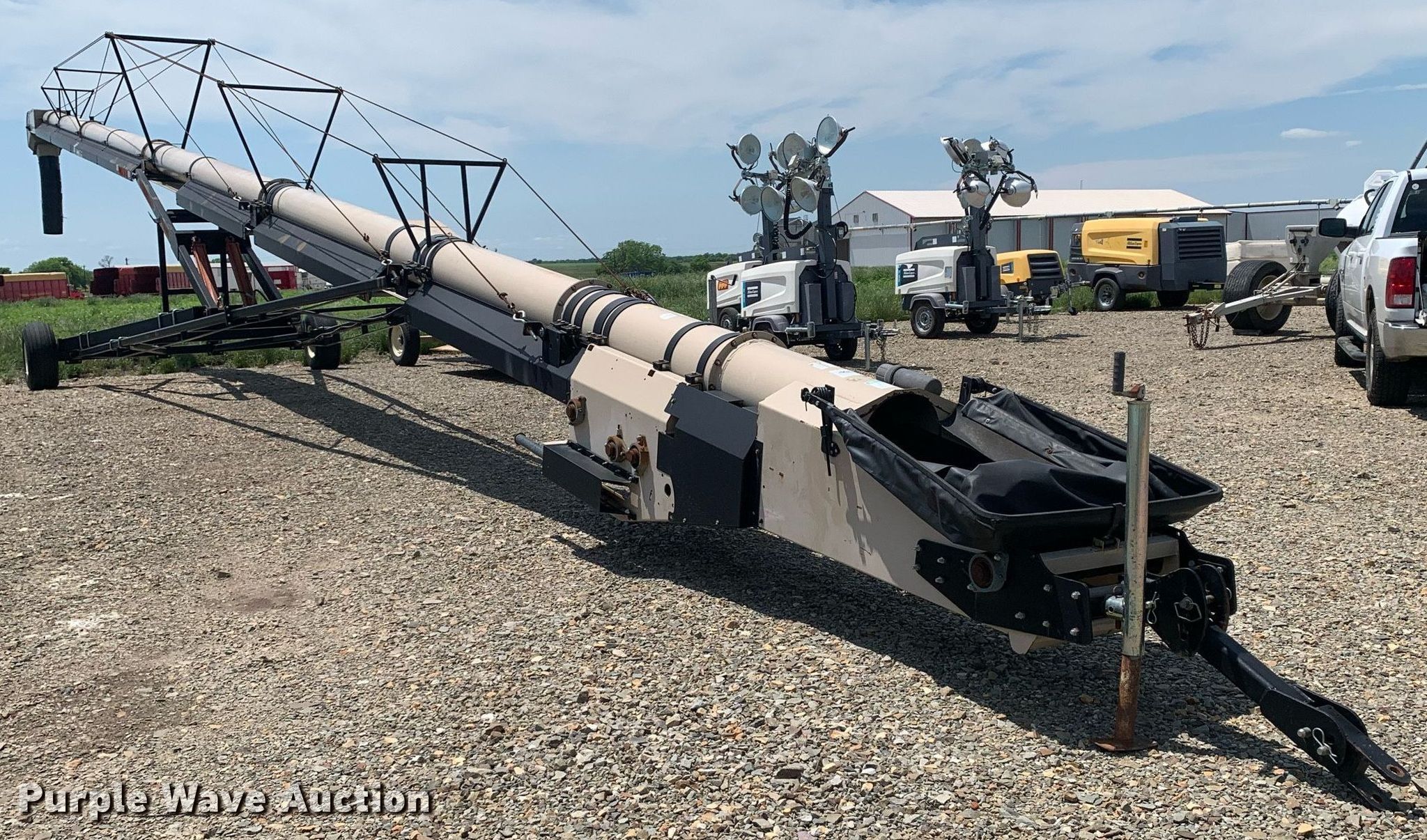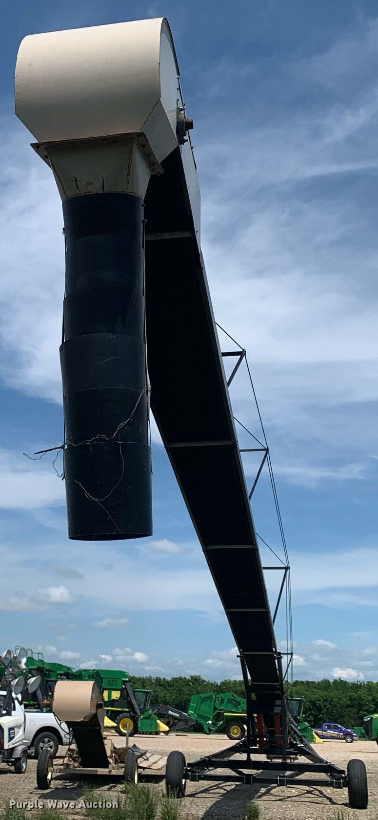 Purple Wave is selling a used Auger or Conveyor in Texas. This item is a Universal Souther Pro-Belt 2295 conveyor with the following: Length: 97', Width: 22", Lift: Hydraulic