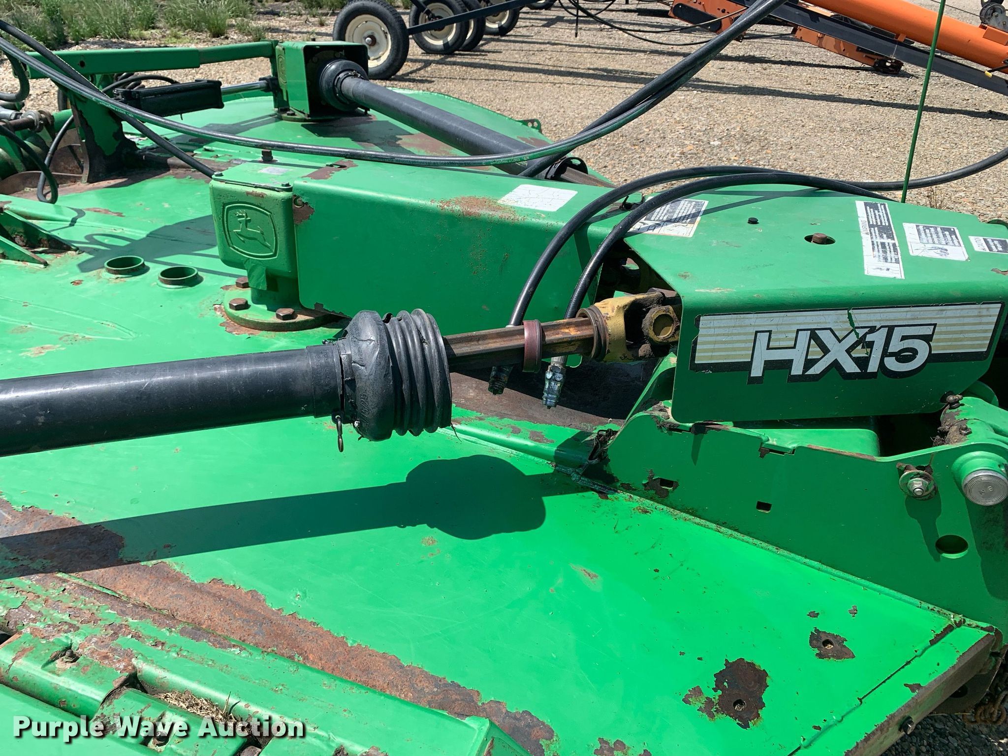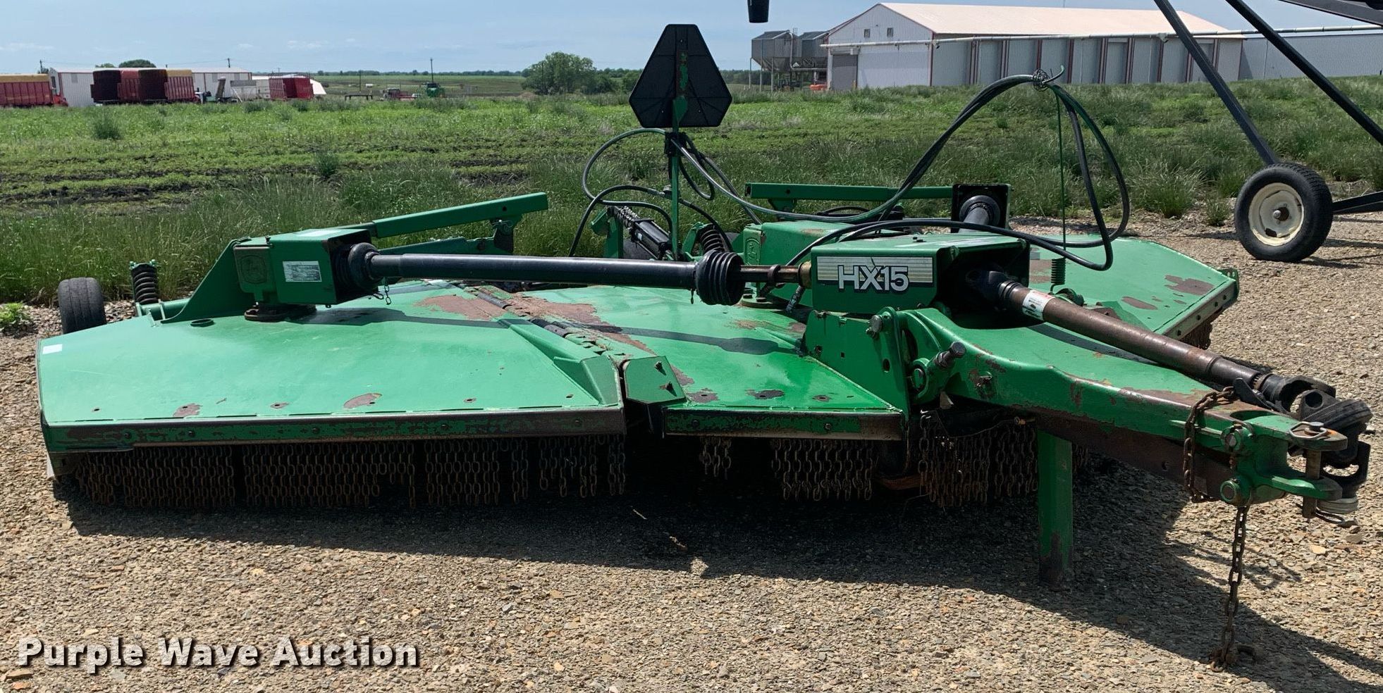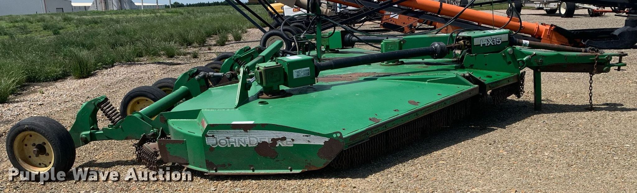 Purple Wave is selling a used Mower, Cutter, Shredder in Texas. This item is a John Deere HX15 batwing rotary mower with the following: Width: 15' 2", Hydraulic lift, Hydraulic fold, PTO: 540