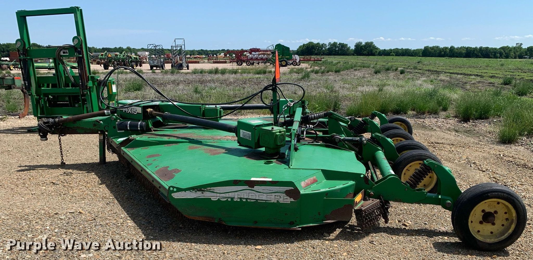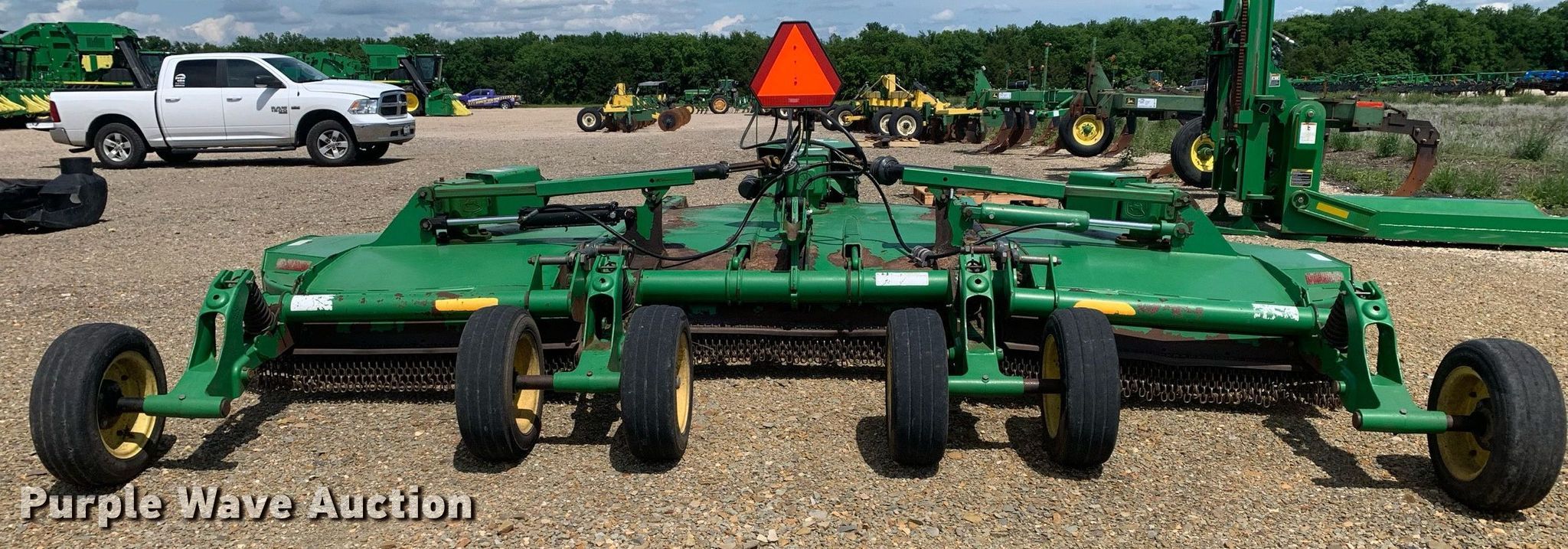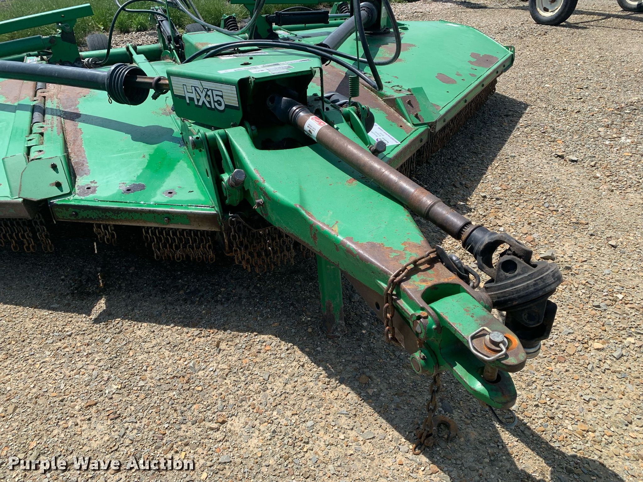 Purple Wave is selling a used Mower, Cutter, Shredder in Texas. This item is a John Deere HX15 batwing rotary mower with the following: Width: 15' 2", Hydraulic lift, Hydraulic fold, PTO: 540
