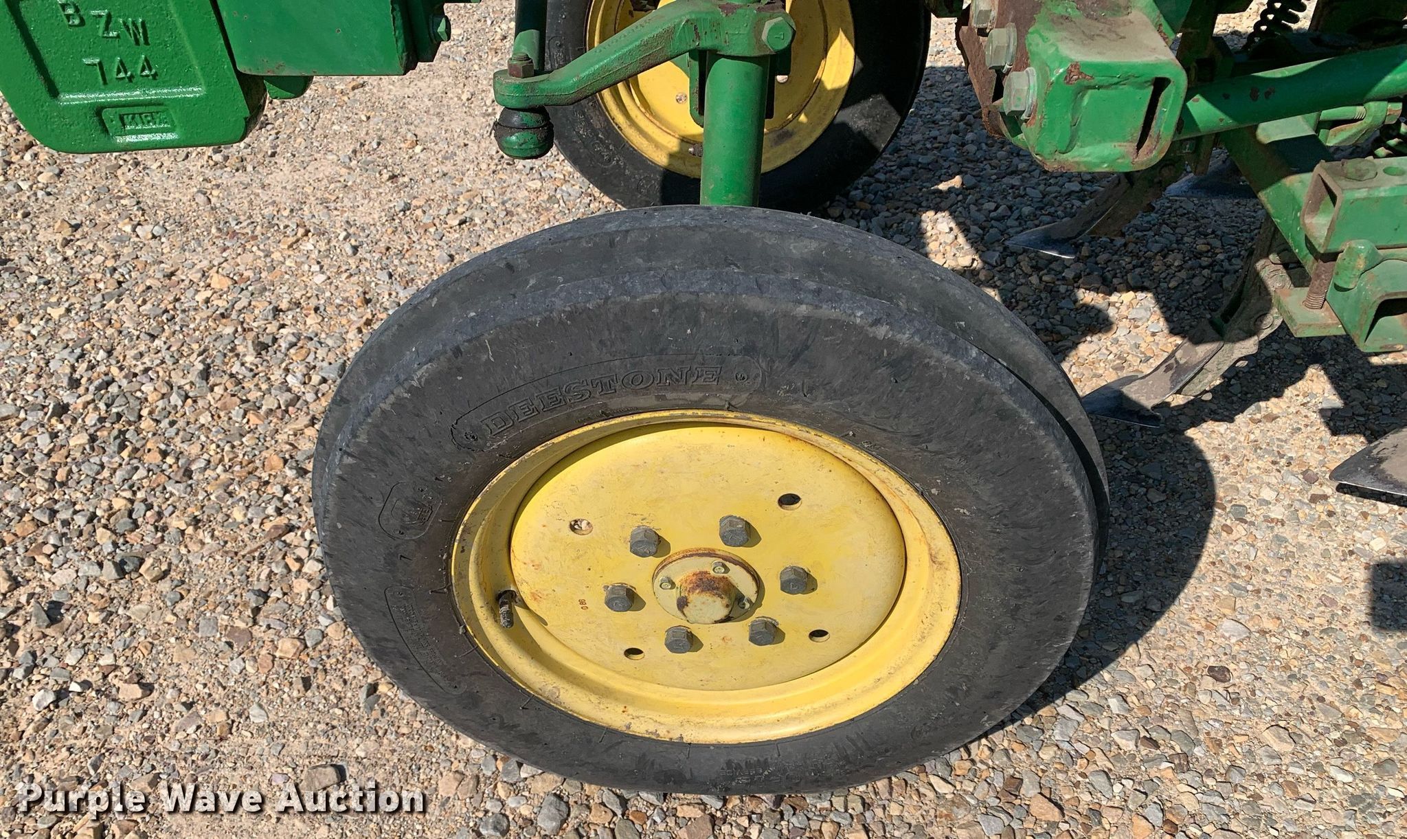 1987 John Deere 900HC tractor. Hours: 233 on meter, Serial: CH0900S001821. Engine John Deere 3T80JS, Serial: CB3043D215500, Cylinders: 3, Fuel type: Diesel. Transmission Manual, 8F - 2R, Differential lock. Features PTO: 540, Three point Top link, Suitcase weights: 5. Tires Front: 5.00-15, Rear: 11.2-28, Wheel weights: 1. John Deere high crop sweep plow Overall width: 4' 10". Features Shanks: 2, Sweep width: 16", Attachments Hitch: Three point. John Deere high crop sweep plow Overall width: 3' 2", Serial: N00008X001008. Features Shanks: 6, Sweep width: 8", Mid-mounted. PPF - Open Inspection June 19 and 26. 700 FM 1335. Cooper, TX 75432