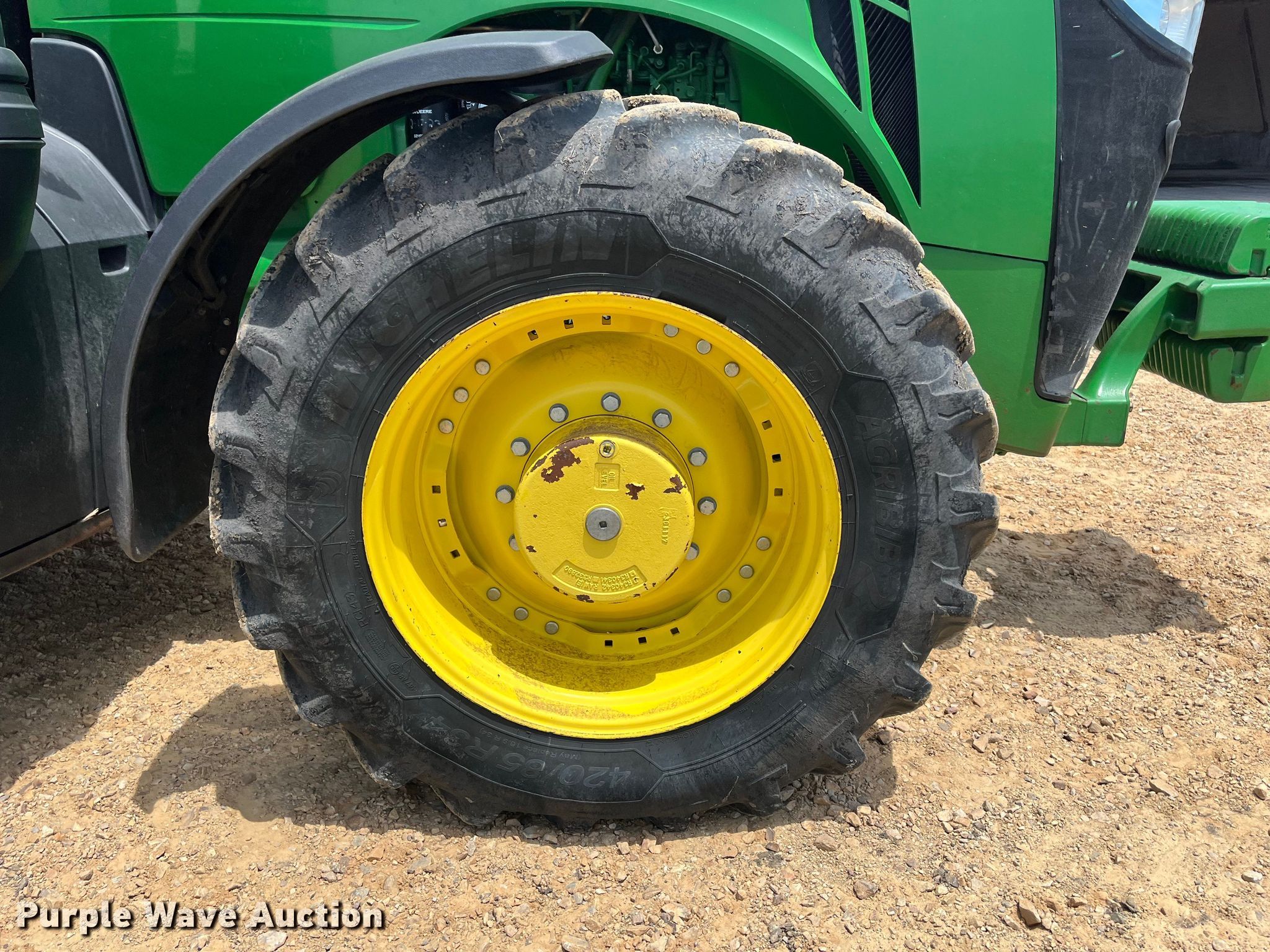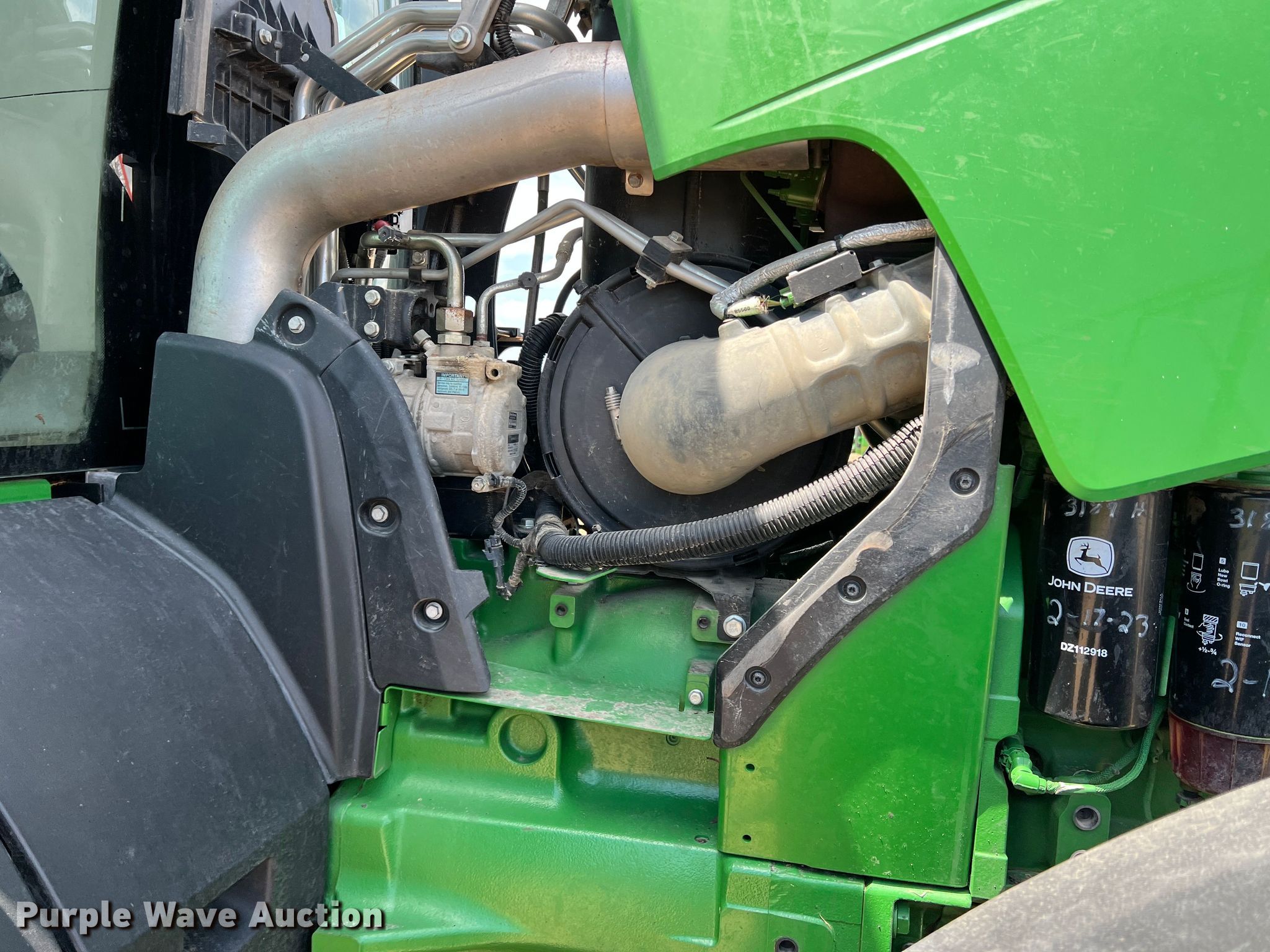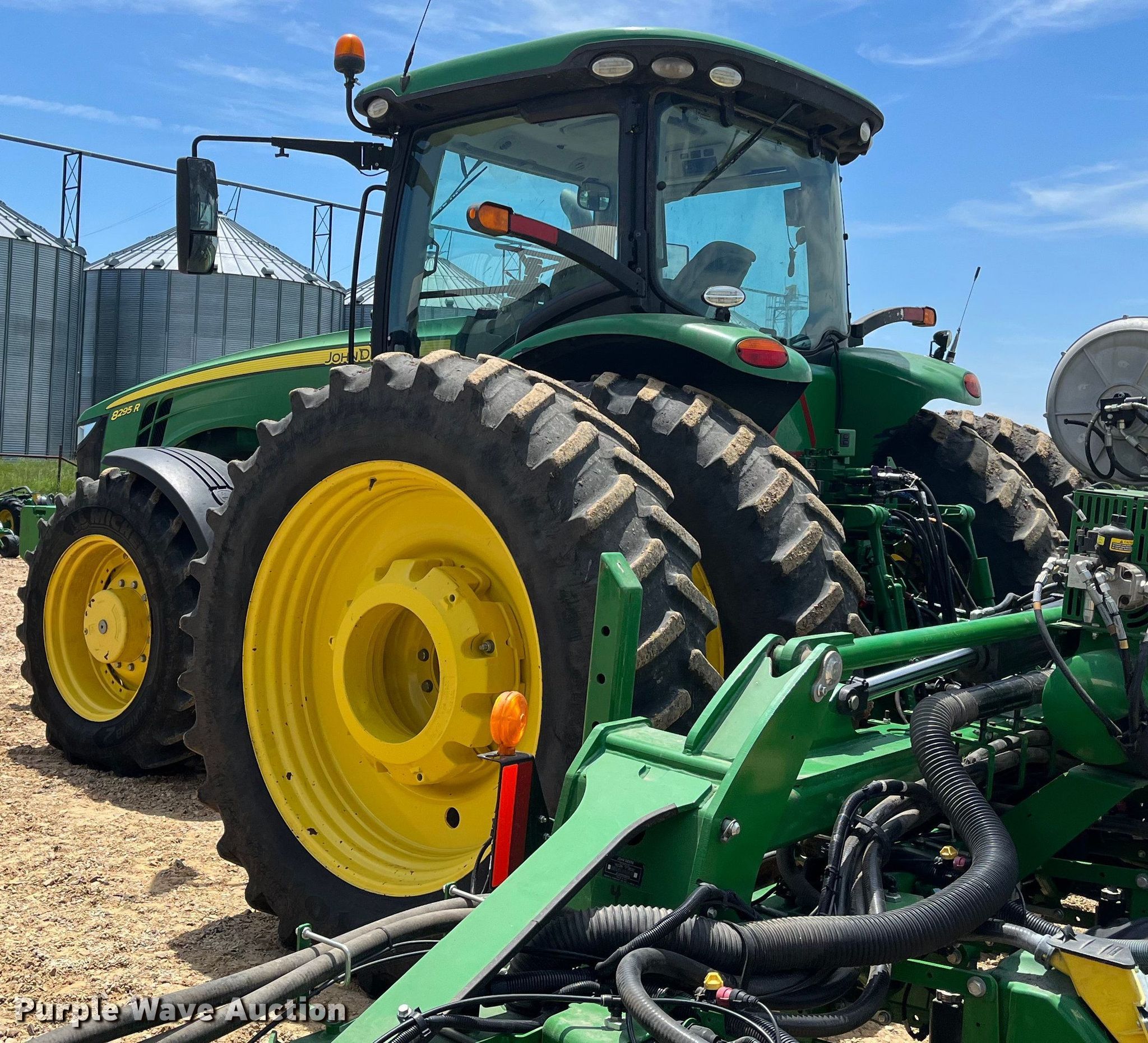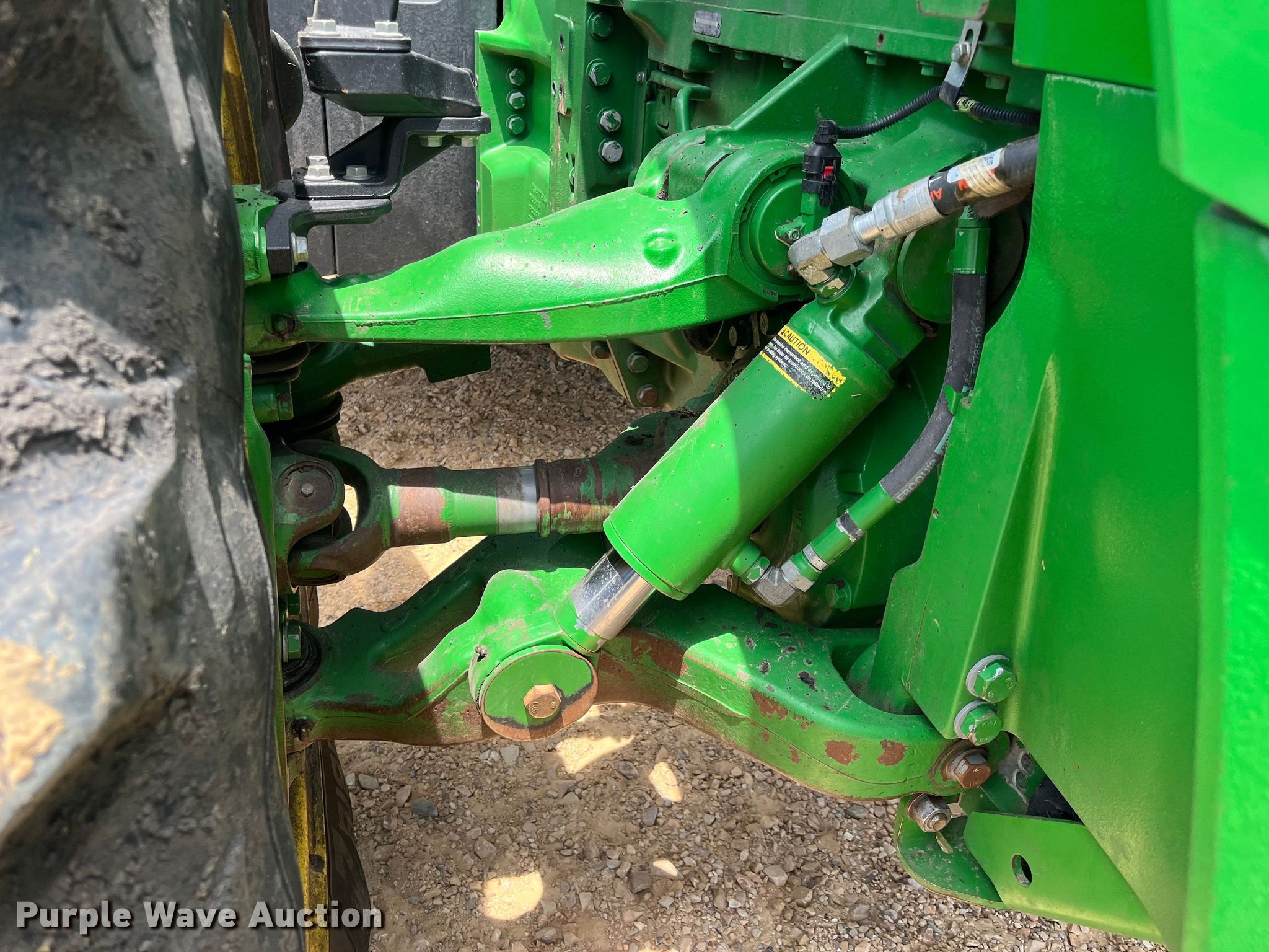 2018 John Deere 8295R MFWD tractor. Hours: 3,428 on meter, Miles or hours may vary, unit still in use, Serial: 1RW8295RKJD131695. Engine John Deere, Cylinders: 6, Fuel type: Diesel. Transmission IVT, Differential lock. Operators station AC, Heat, GPS receiver John Deere, Display John Deere, Auto steer. Features PTO: 1 3/4" 1000, Three point Top link, Quick attach, Seven pin outlet, ISOBUS outlet, Hydraulic remote sets Rear: 5, Power beyond (hydraulics), Suitcase weights: 20, ILS. Tires Front: 420/85R34, Rear: 480/80R50, Wheel weights: 6. Notes Planter not included. Item will be utilized during the removal process. Item will be available for load-out beginning July 13. PPF - Open Inspection June 19 and 26. 700 FM 1335. Cooper, TX 75432