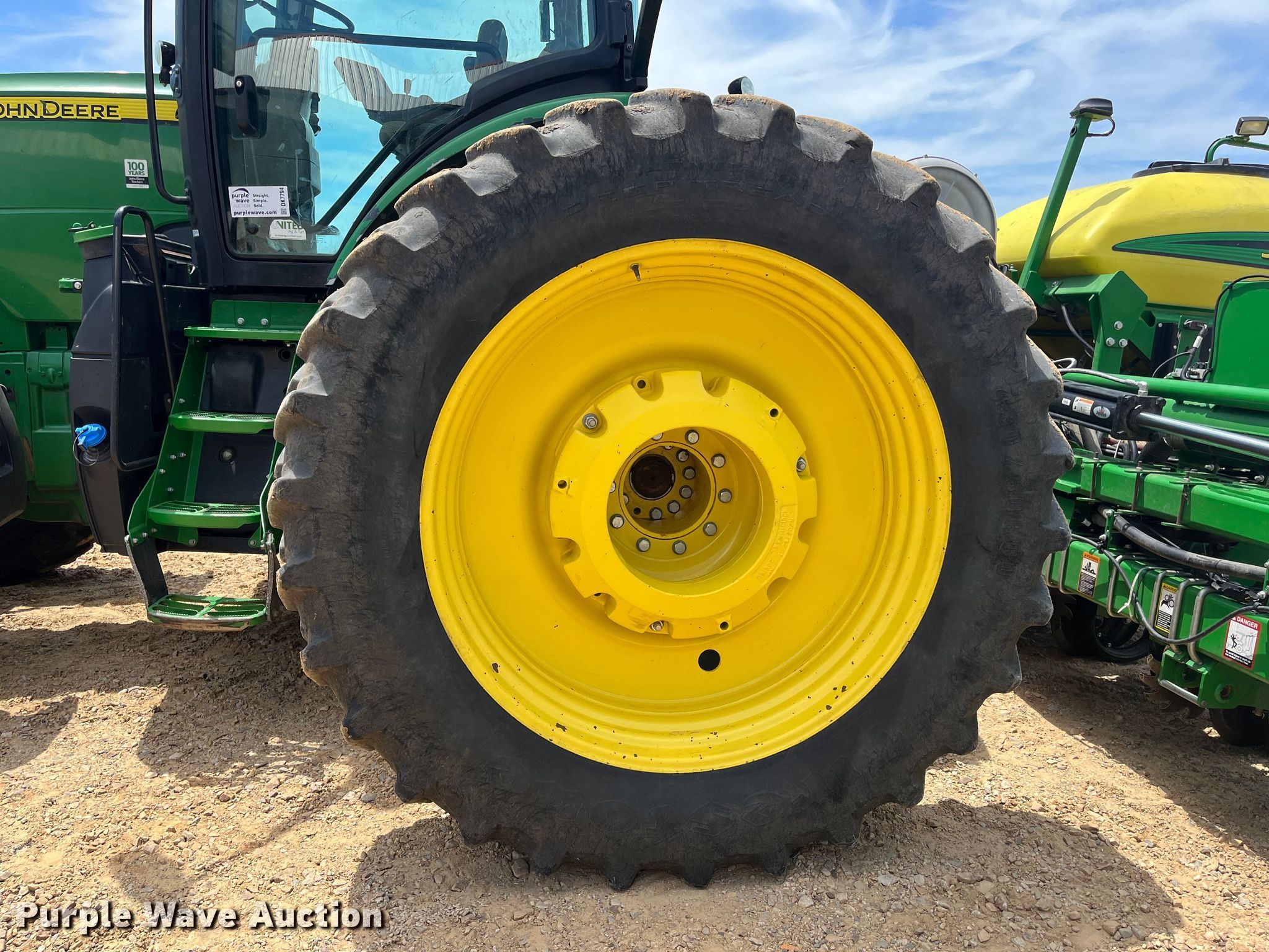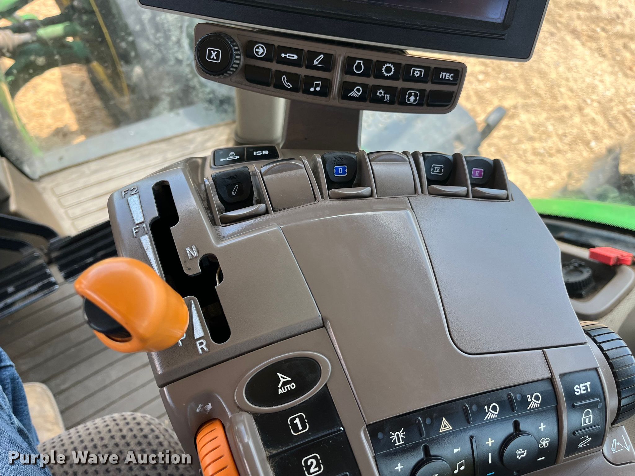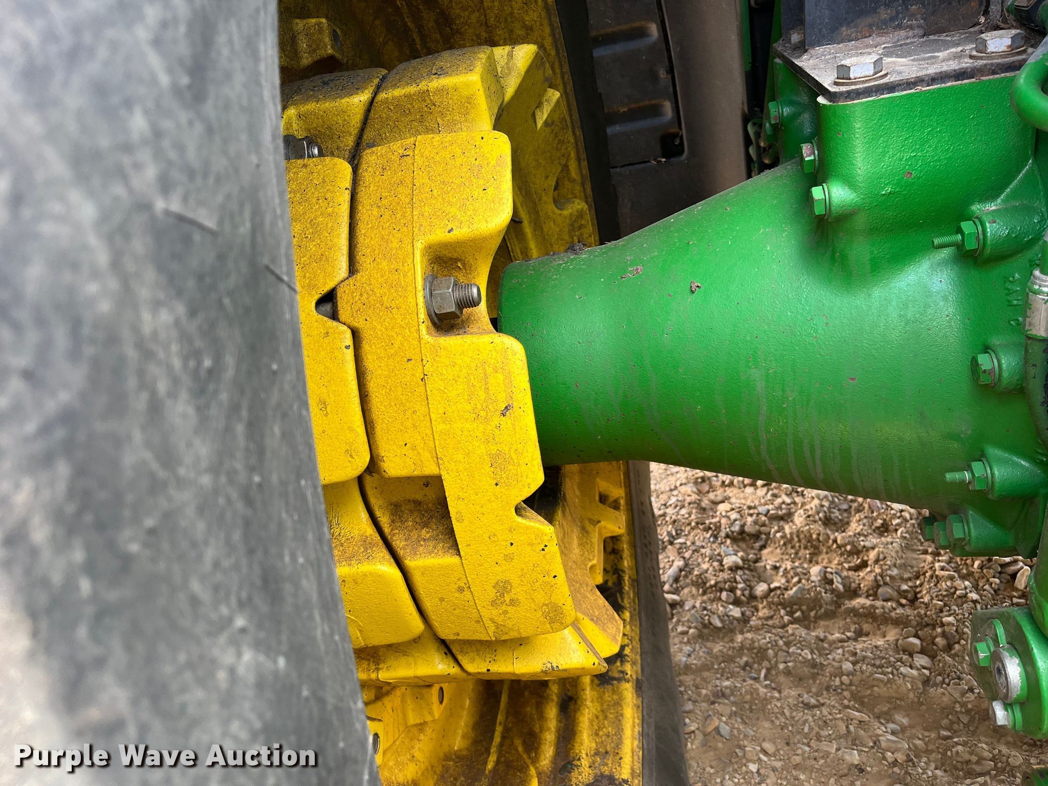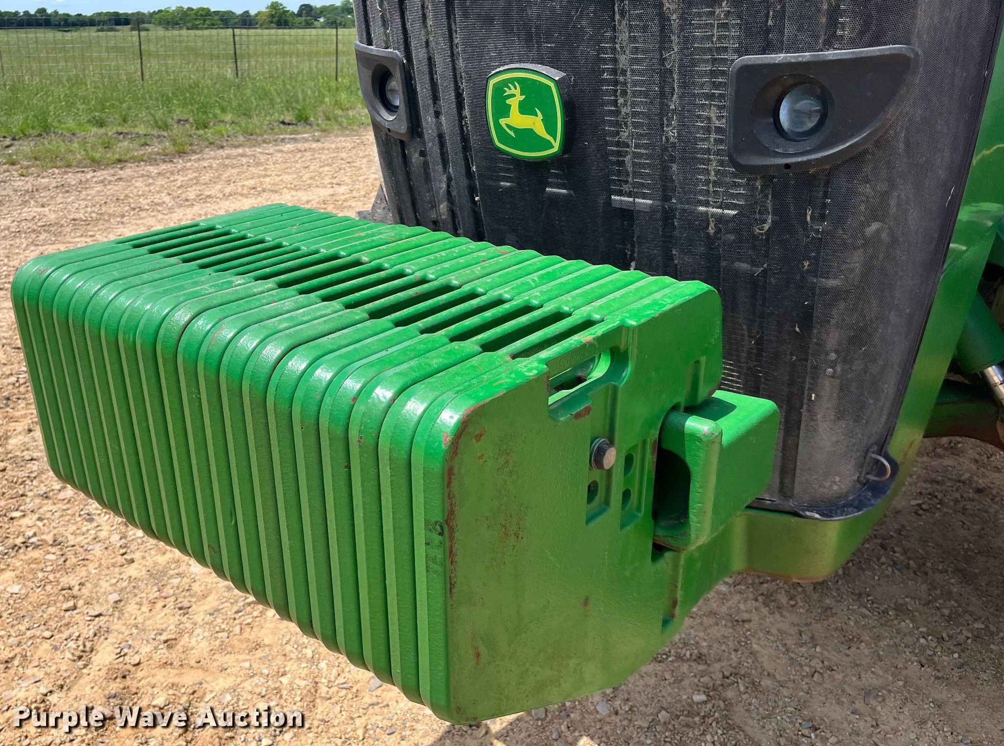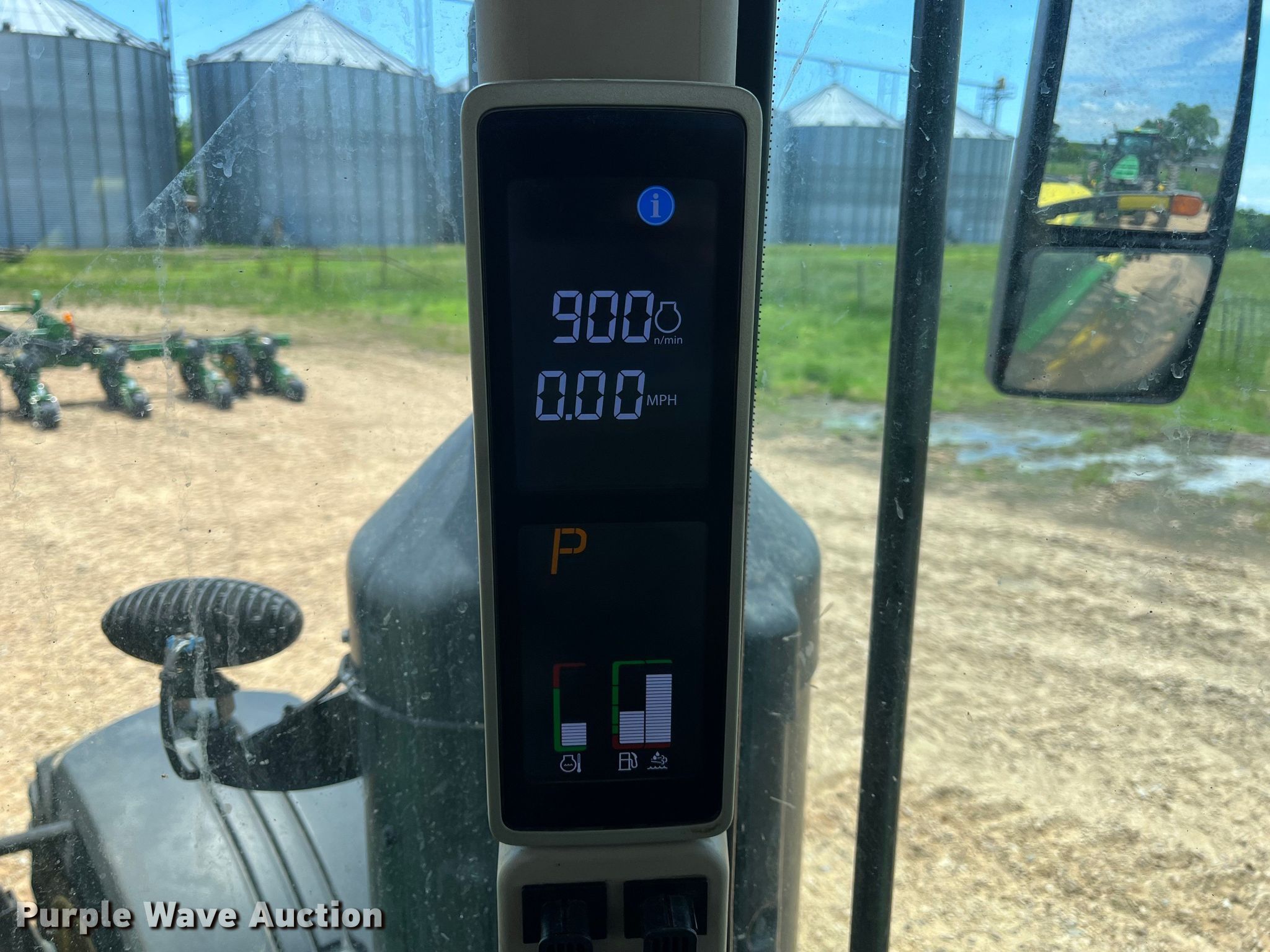 2018 John Deere 8295R MFWD tractor. Hours: 3,428 on meter, Miles or hours may vary, unit still in use, Serial: 1RW8295RKJD131695. Engine John Deere, Cylinders: 6, Fuel type: Diesel. Transmission IVT, Differential lock. Operators station AC, Heat, GPS receiver John Deere, Display John Deere, Auto steer. Features PTO: 1 3/4" 1000, Three point Top link, Quick attach, Seven pin outlet, ISOBUS outlet, Hydraulic remote sets Rear: 5, Power beyond (hydraulics), Suitcase weights: 20, ILS. Tires Front: 420/85R34, Rear: 480/80R50, Wheel weights: 6. Notes Planter not included. Item will be utilized during the removal process. Item will be available for load-out beginning July 13. PPF - Open Inspection June 19 and 26. 700 FM 1335. Cooper, TX 75432