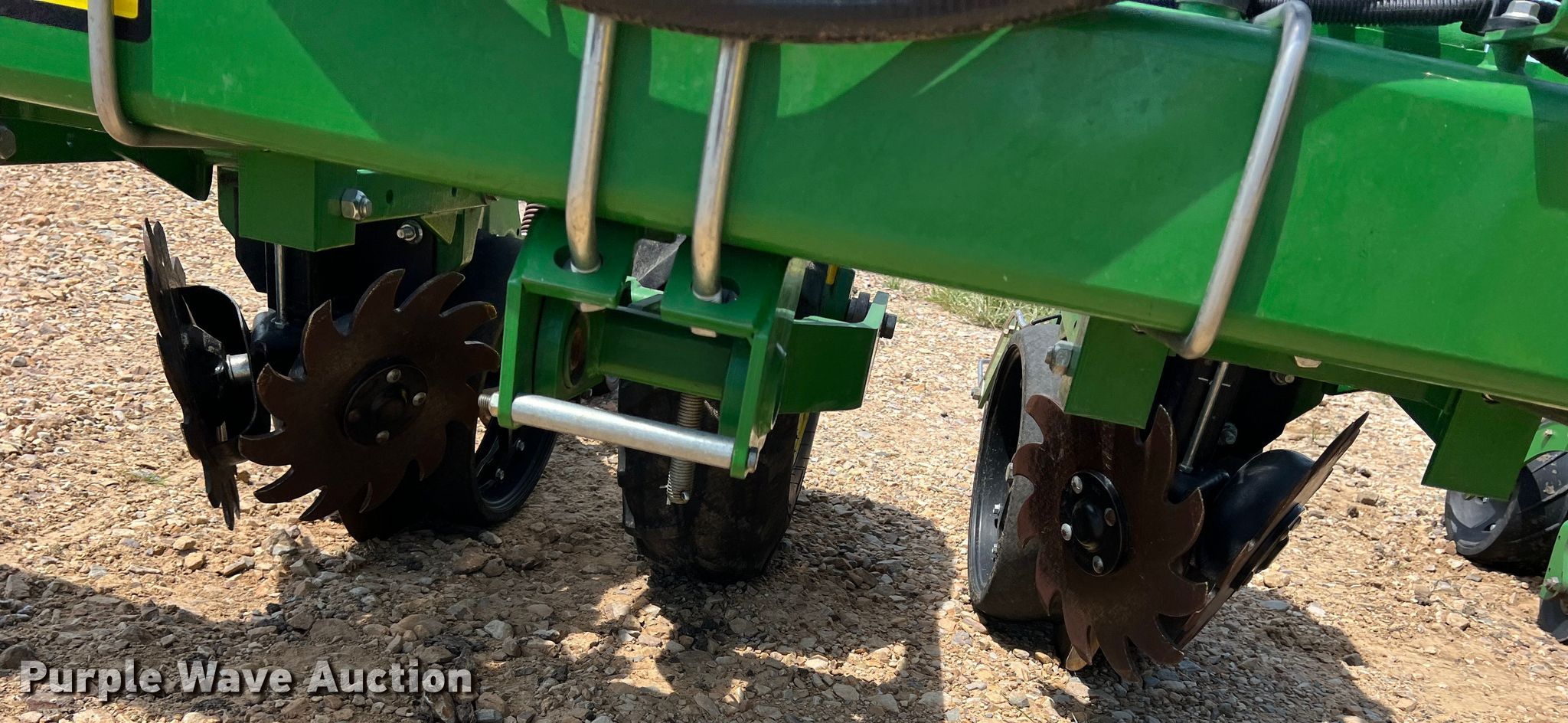 2019 John Deere 1725C Exact Emerge planter. Row units: 12, Row spacing: 38", Acres: 8,310 on meter, Serial: 1A01725HCJT780127. Features Frame Hitch: Three point, Hydraulic fold Stack fold, Seed delivery Bulk fill system, Row units Vacuum metering, Meter drive: Electric, Down pressure: Pneumatic, Row cleaners, Disk openers: Double, Gauge wheels: Single, Closing system: Single Type: Rubber.. Tires Transport tire size: 7.60-15. Notes Acres may vary, unit still in use, Monitor not included, Tractor and seed not included. PPF - Open Inspection June 19 and 26. 700 FM 1335. Cooper, TX 75432
