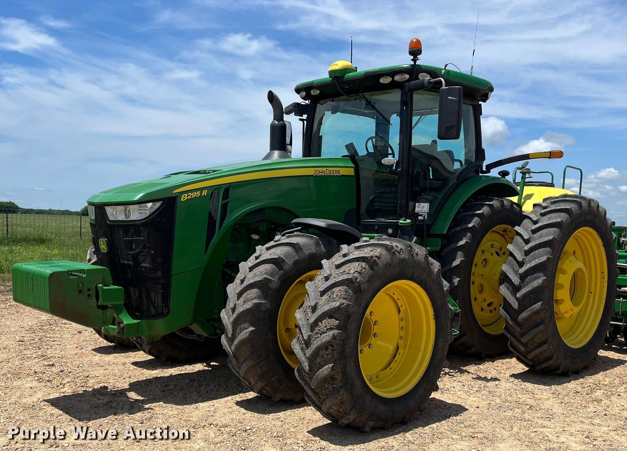2017 John Deere 8295R MFWD tractor. Hours: 3,457 on meter, Miles or hours may vary, unit still in use, Serial: 1RW8295REHD121379. Engine Cylinders: 6, Fuel type: Diesel. Transmission IVT, Differential lock. Operators station AC, Heat, GPS receiver, Display, Auto steer. Features PTO: 1 3/4" 1000, Three point Top link, Quick attach, Seven pin outlet, ISOBUS outlet, Hydraulic remote sets Rear: 5, Power beyond (hydraulics), Suitcase weights: 20, ILS. Tires Front: 420/85R34, Rear: 480/80R42, Wheel weights: 4, Duals, Front duals. Notes Planter not included. PPF - Open Inspection June 19 and 26. 700 FM 1335. Cooper, TX 75432