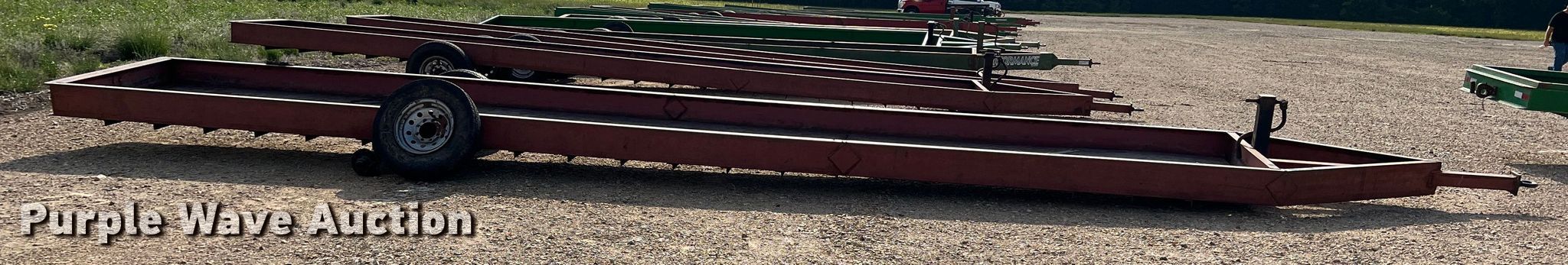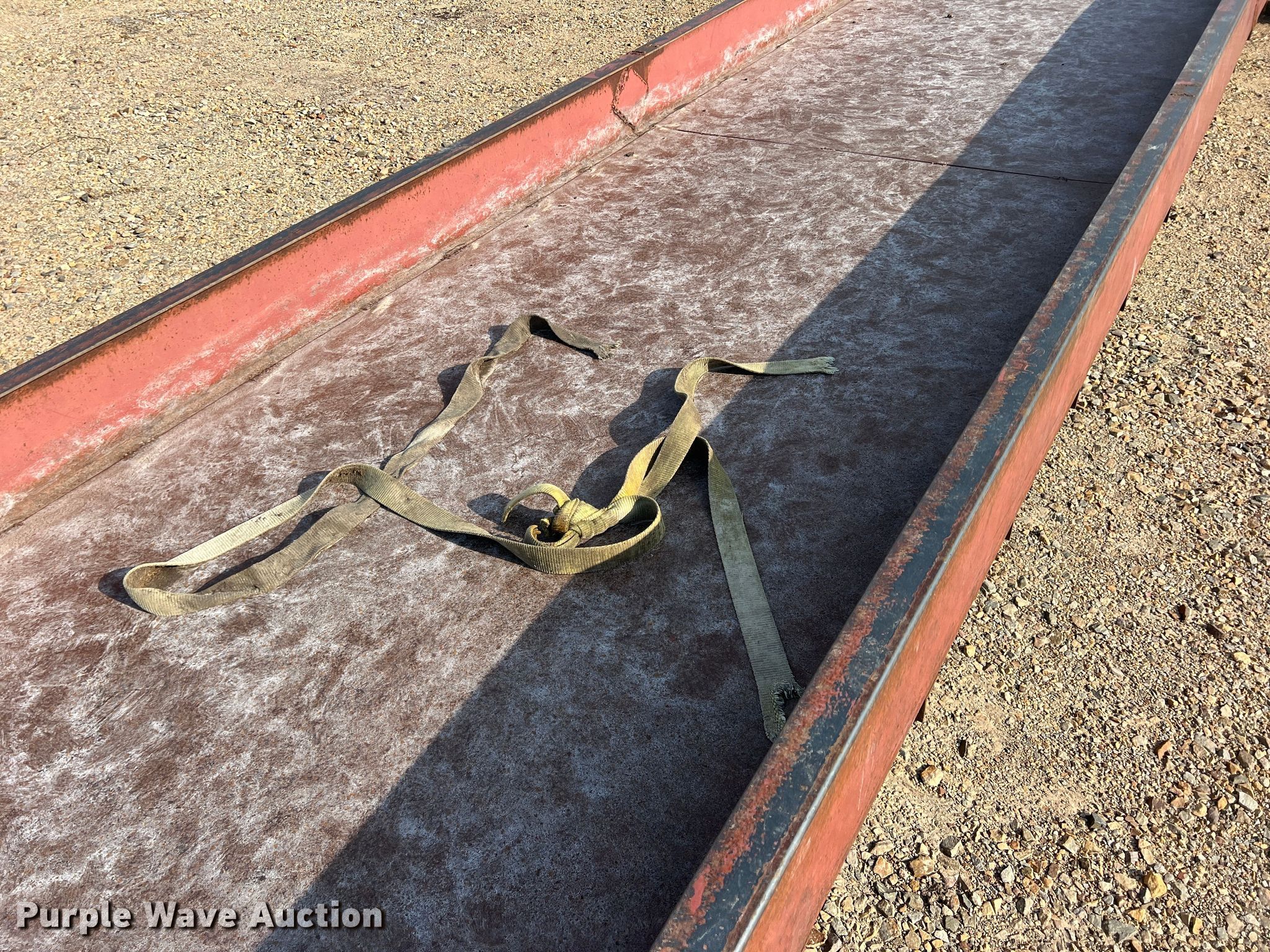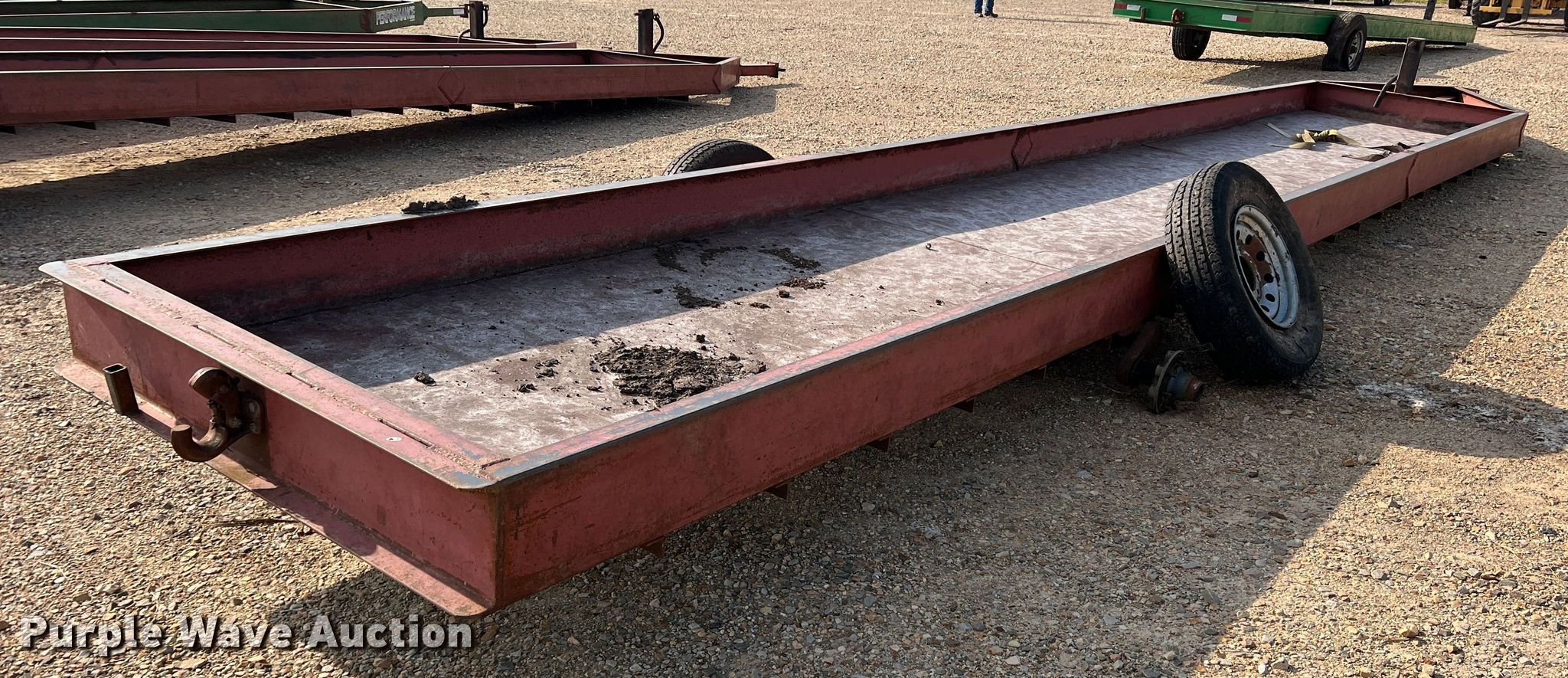 Purple Wave is selling a used Livestock Equip. in Texas. This item is a H&S feed trough trailer with the following: Overall: 37' L x 7' W, Deck: 32' L x 5' W, Side height: 10"