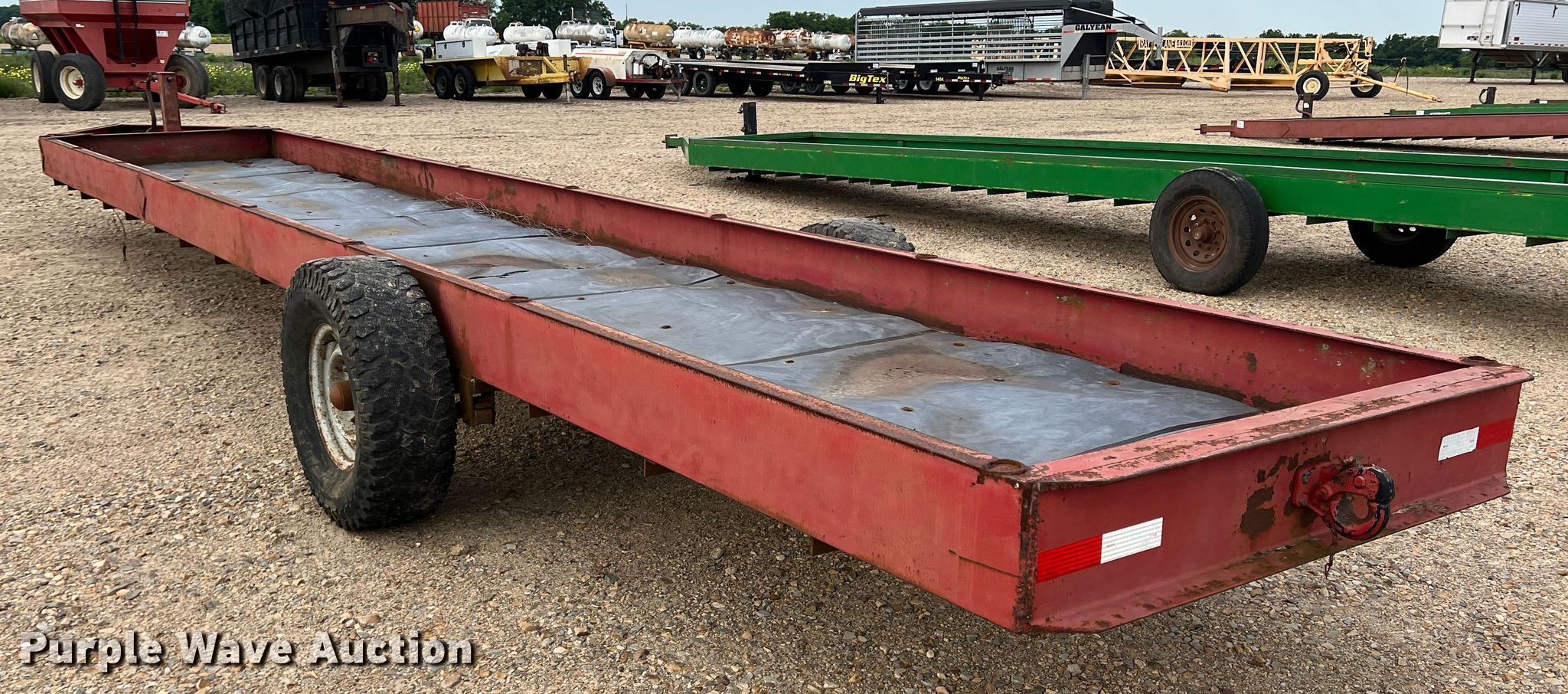 Purple Wave is selling a used Livestock Equip. in Texas. This item is a Feed trough trailer with the following: Overall: 37' L x 7' W, Deck: 32' L x 5' W, Side height: 10"