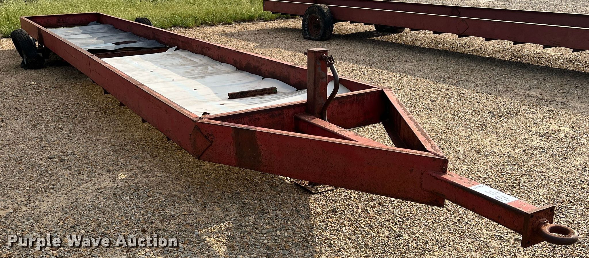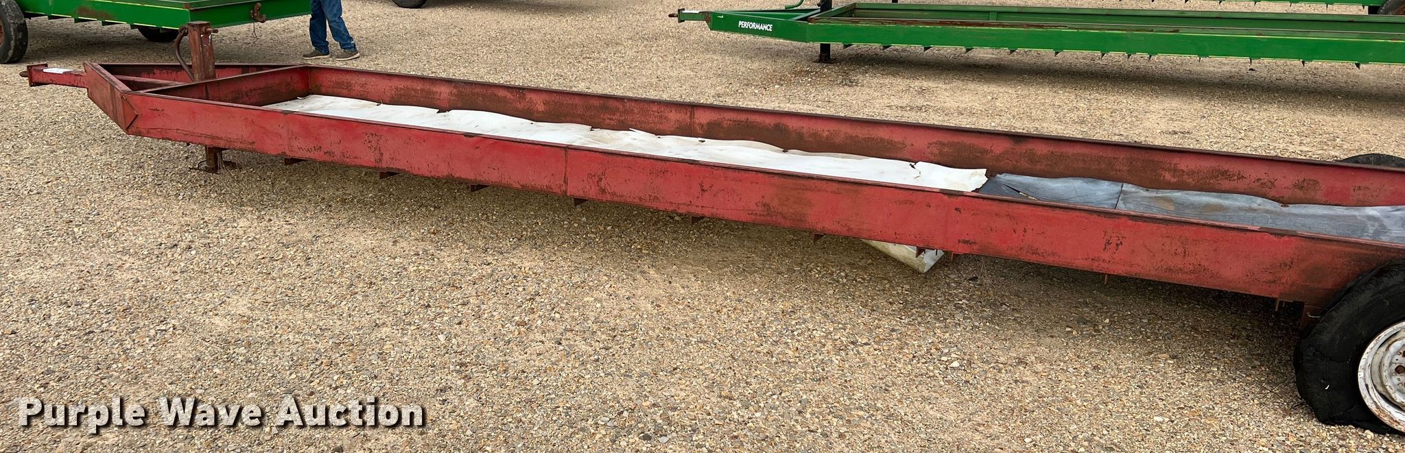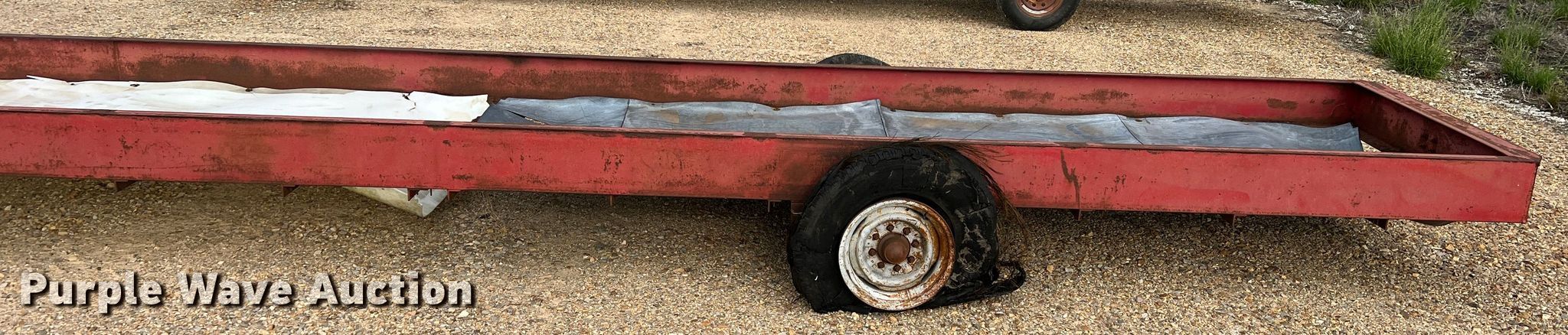 Purple Wave is selling a used Livestock Equip. in Texas. This item is a Feed trough trailer with the following: Overall: 37' L x 7' W, Deck: 32' L x 5' W, Side height: 10"