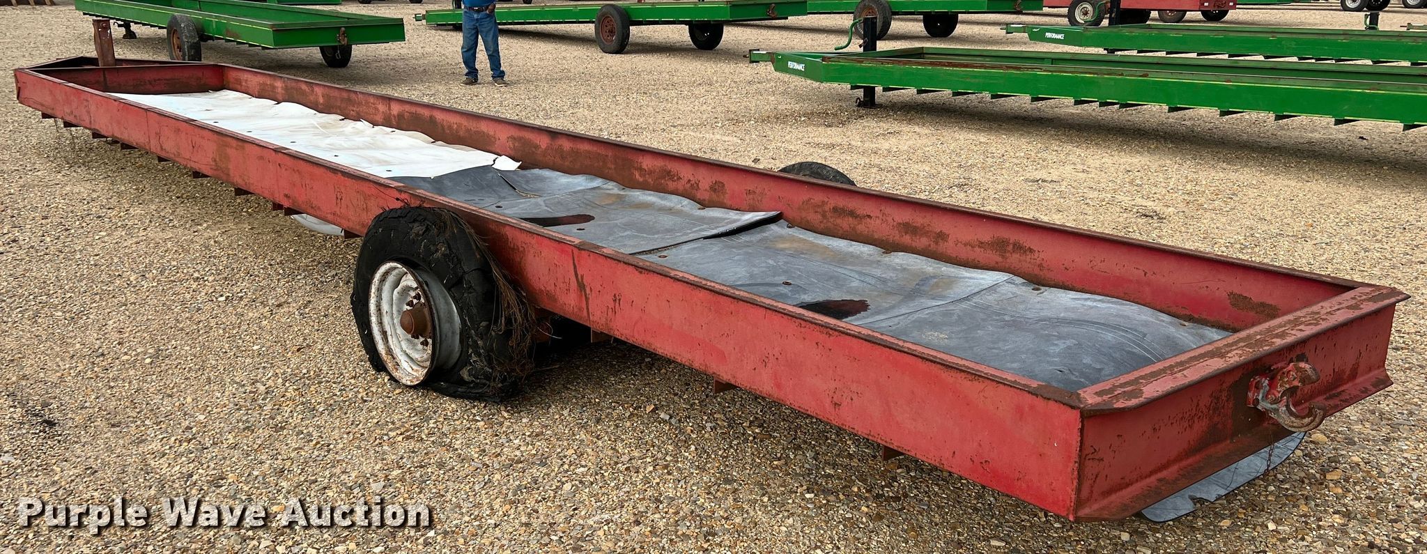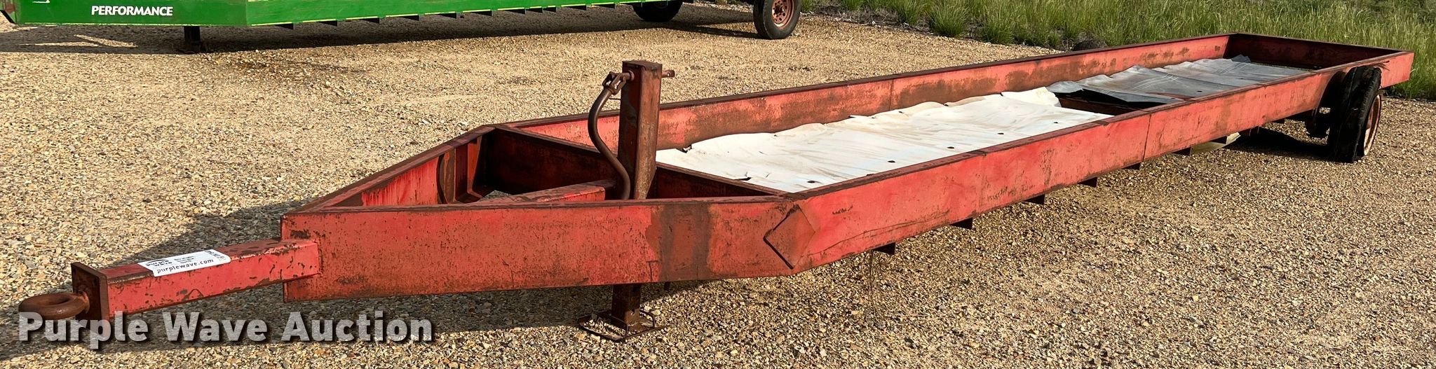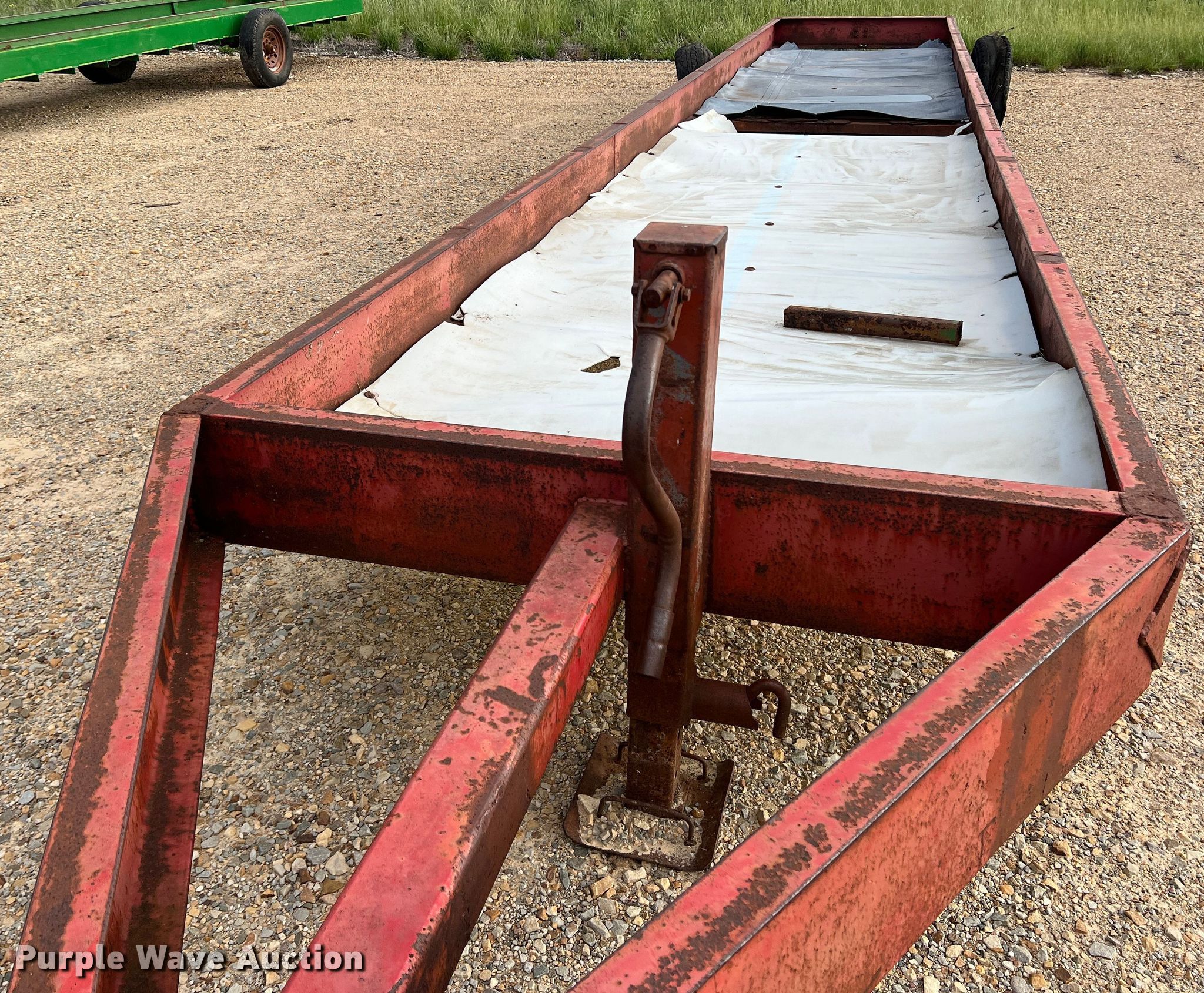 Purple Wave is selling a used Livestock Equip. in Texas. This item is a Feed trough trailer with the following: Overall: 37' L x 7' W, Deck: 32' L x 5' W, Side height: 10"