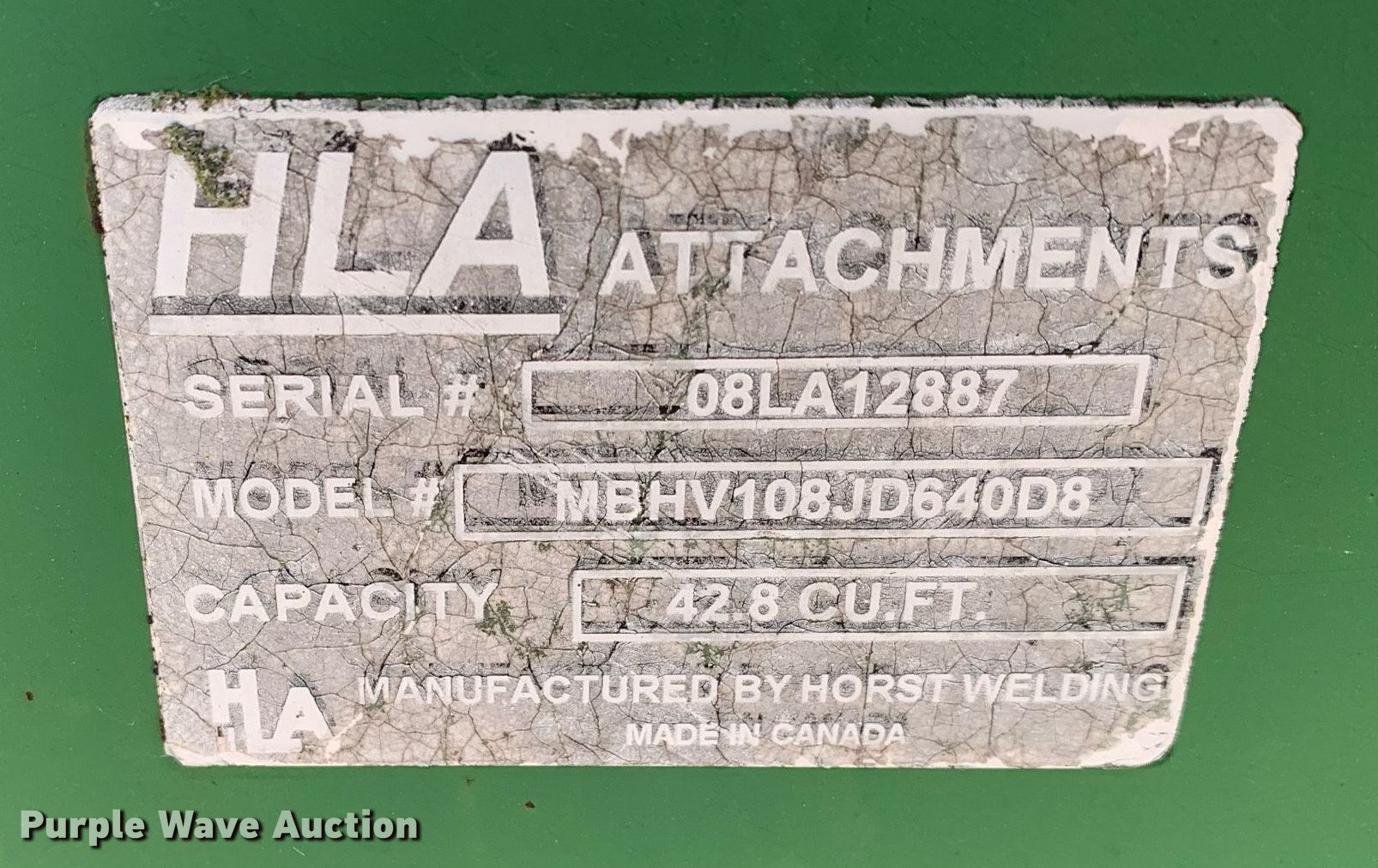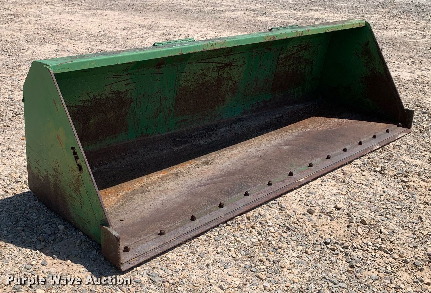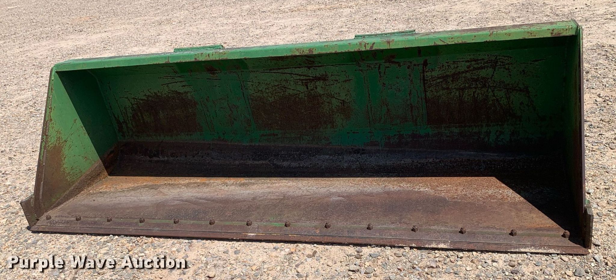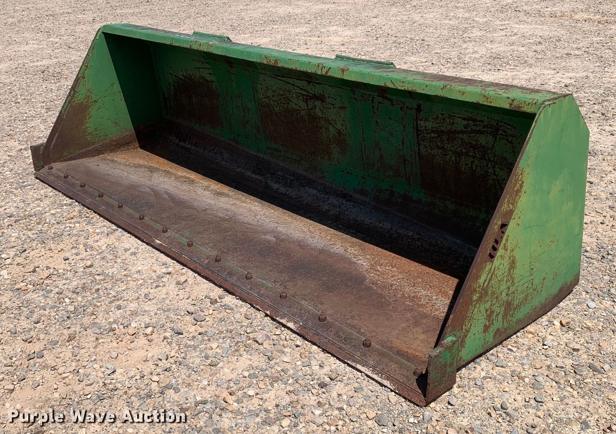 Purple Wave is selling a used Ag Tractor Loader or Attach. in Texas. This item is a HLA MBHV108JD640DB 9'1"W bucket with the following: Serial: 08LA12887