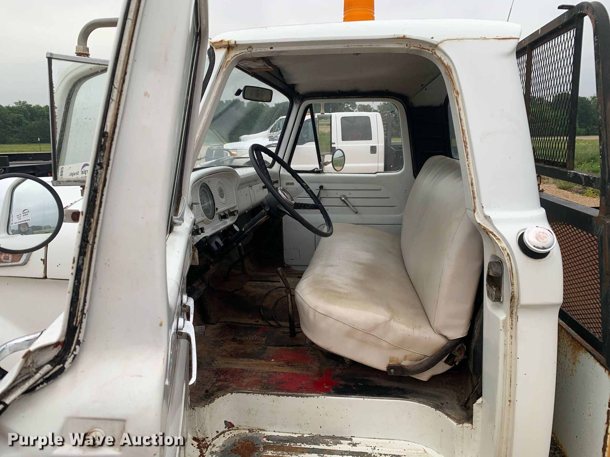 1963 Ford F350 flatbed pickup truck. Miles: 27,144 on odometer, VIN: F35CK412519. Engine Cylinders: 8, Fuel type: Gas. Transmission Manual, Speed: 4. Interior Heat. Features Flatbed 8' 6" L x 7' 6" W, Hitch: Gooseneck. Tires Front: LT235/85R16, Rear: 7.50-17. Notes Headliner loose, Non-operational brakes. Texas title. Title distribution may be delayed up to 14 days from verification of funds. PPF - Open Inspection June 19 and 26. 700 FM 1335. Cooper, TX 75432
