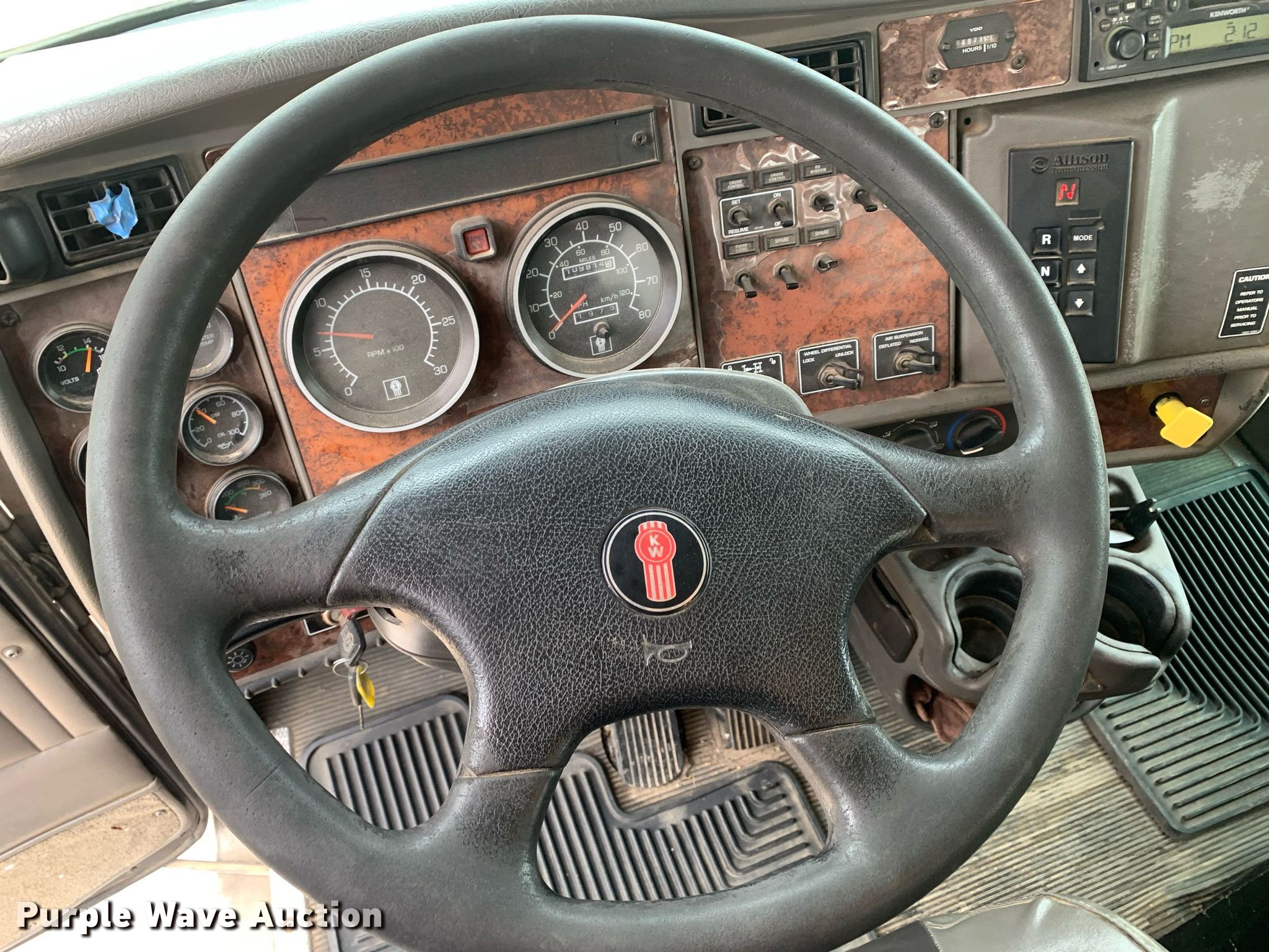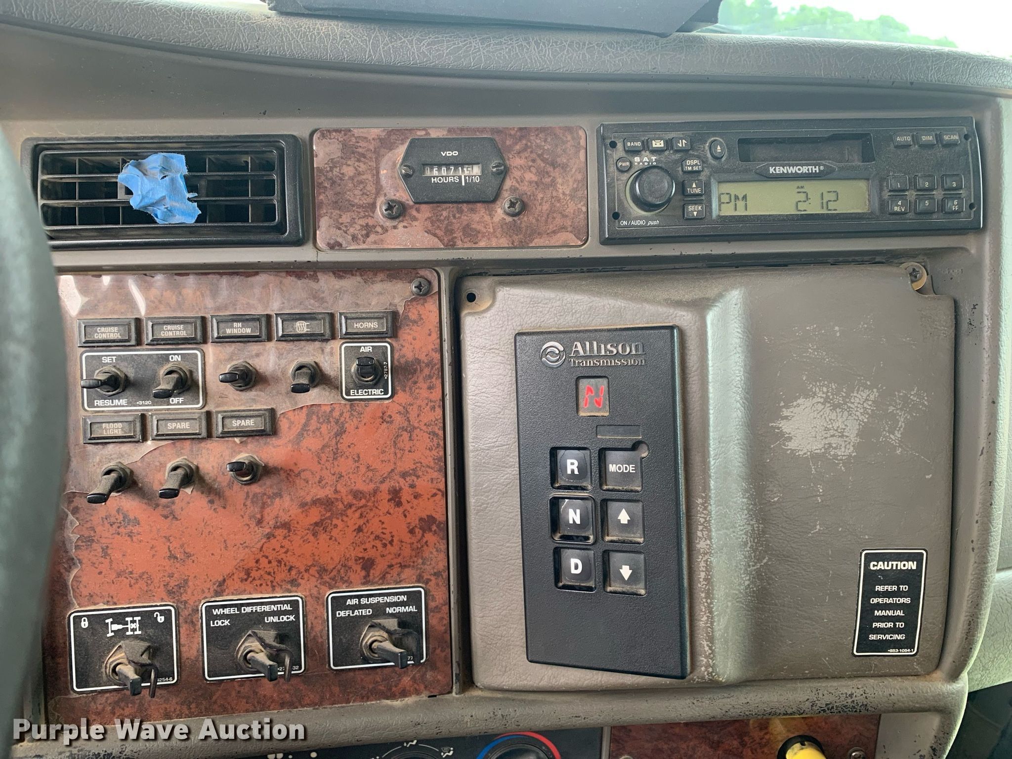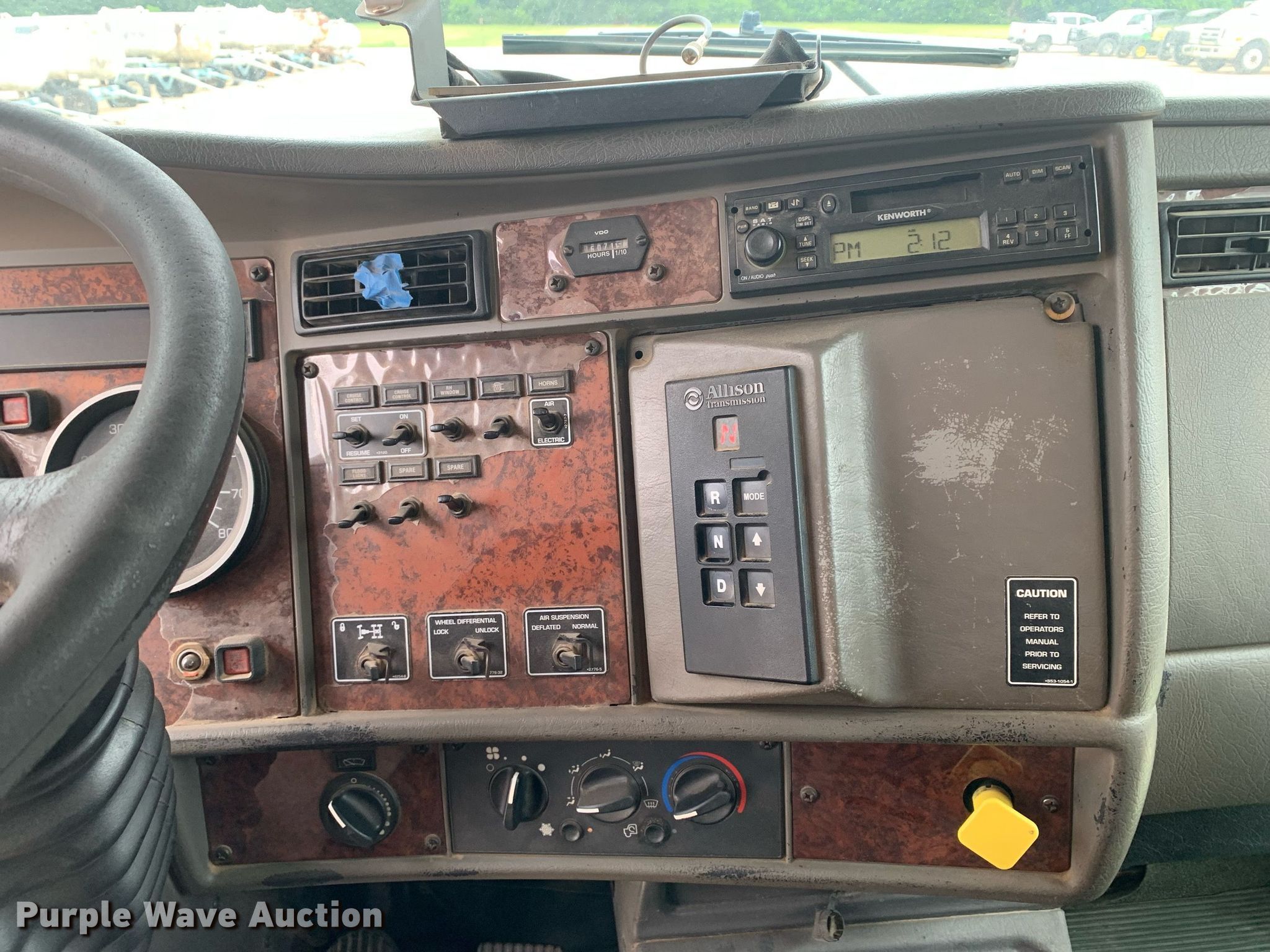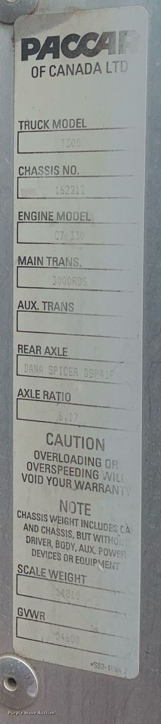 2007 Kenworth T300 cotton module transport truck. Miles: 109,815 on odometer, Hours: 6,072 on meter, VIN: 2NKMLD9X67M162212. Engine Caterpillar C7 Acert, Displacement: 7.2L, Cylinders: 6, Fuel type: Diesel, HP: 330. Transmission Allison, Automatic. Chassis Axles: Tandem, Differential lock: Full, Suspension: Air Dump valves, Brakes: Air, PTO, Wet kit, GVWR: 54,600 lbs. Interior AC, Heat, Heated mirrors, Power windows, Cruise control. Features Cotton module transport bed 37'8"L overall, 33'L x 9'W body, Side height: 87" Tarp frame height: 24", Floor: Chain conveyor Hydraulic driven, Fuel tank: Dual. Tires Front: 11R22.5, Rear: 11R24.5. Notes Windshield chipped or cracked, Rear tires will be replaced with 11R24.5. Texas title. Title distribution may be delayed up to 14 days from verification of funds. PPF - Open Inspection June 19 and 26. 700 FM 1335. Cooper, TX 75432