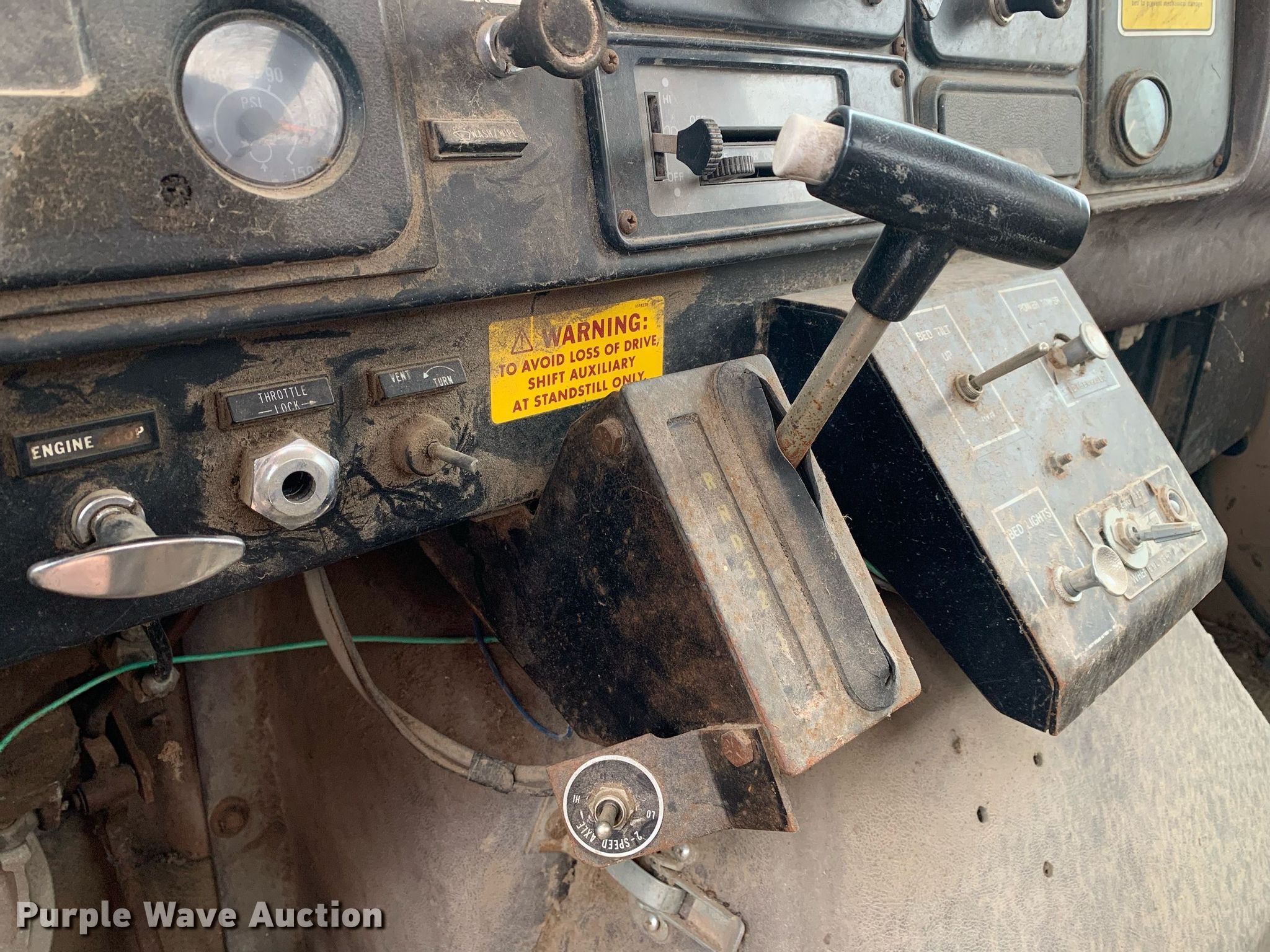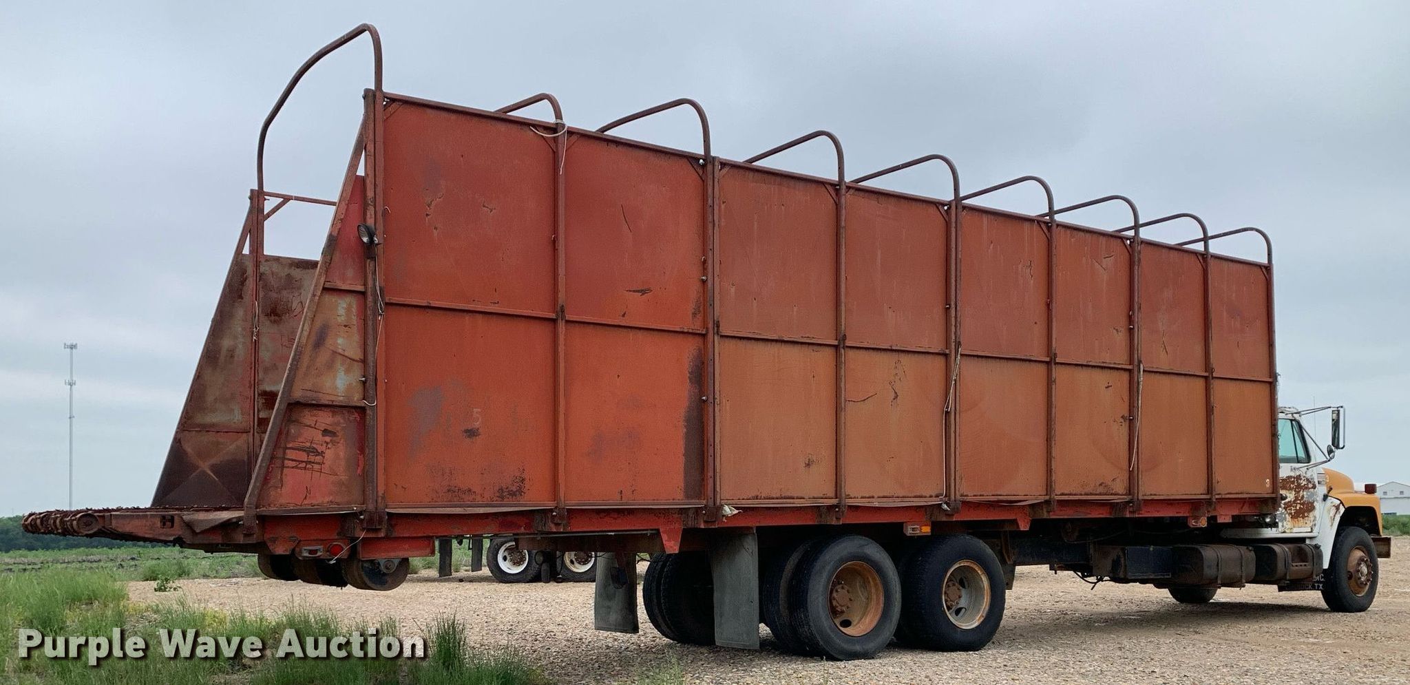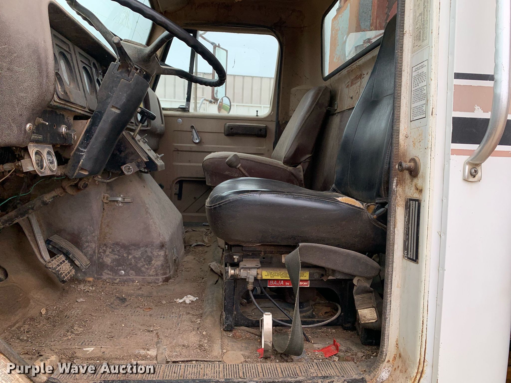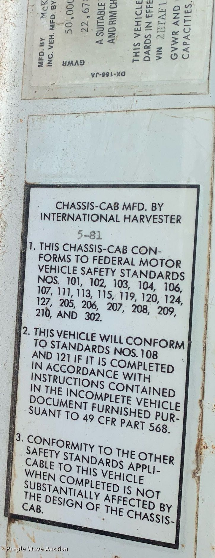 1981 International F1954 cotton module transport truck. Miles: 184,387 on odometer, VIN: 2HTAF1959BCA21597. Engine International, Displacement: 7.6L, Cylinders: 6, Fuel type: Diesel. Transmission Automatic. Chassis Axles: Tandem, Suspension: Spring over walking beam, Brakes: Air, PTO, Wet kit, GVWR: 50,000 lbs FAWR: 12,000 lbs, IAWR: 19,000 lbs, RAWR: 19,000 lbs. Interior Heat. Features Cotton module transport bed Floor: Chain conveyor Hydraulic driven.. Tires Size: 11R22.5. Notes Windshield chipped or cracked, Unknown operating condition of bed. Texas title. Title distribution may be delayed up to 14 days from verification of funds. PPF - Open Inspection June 19 and 26. 700 FM 1335. Cooper, TX 75432