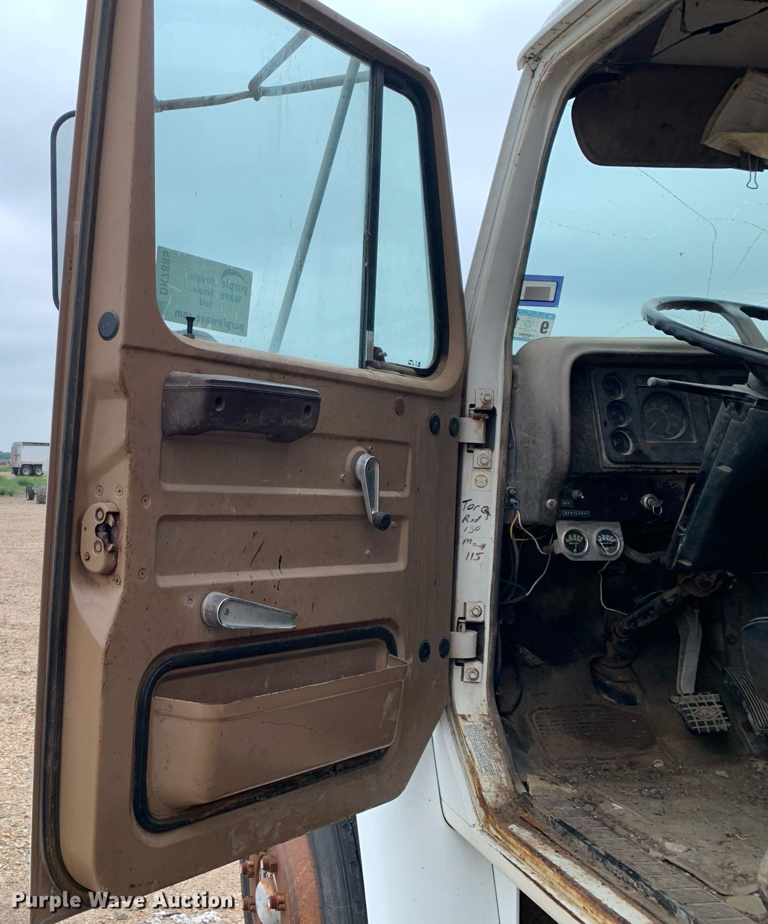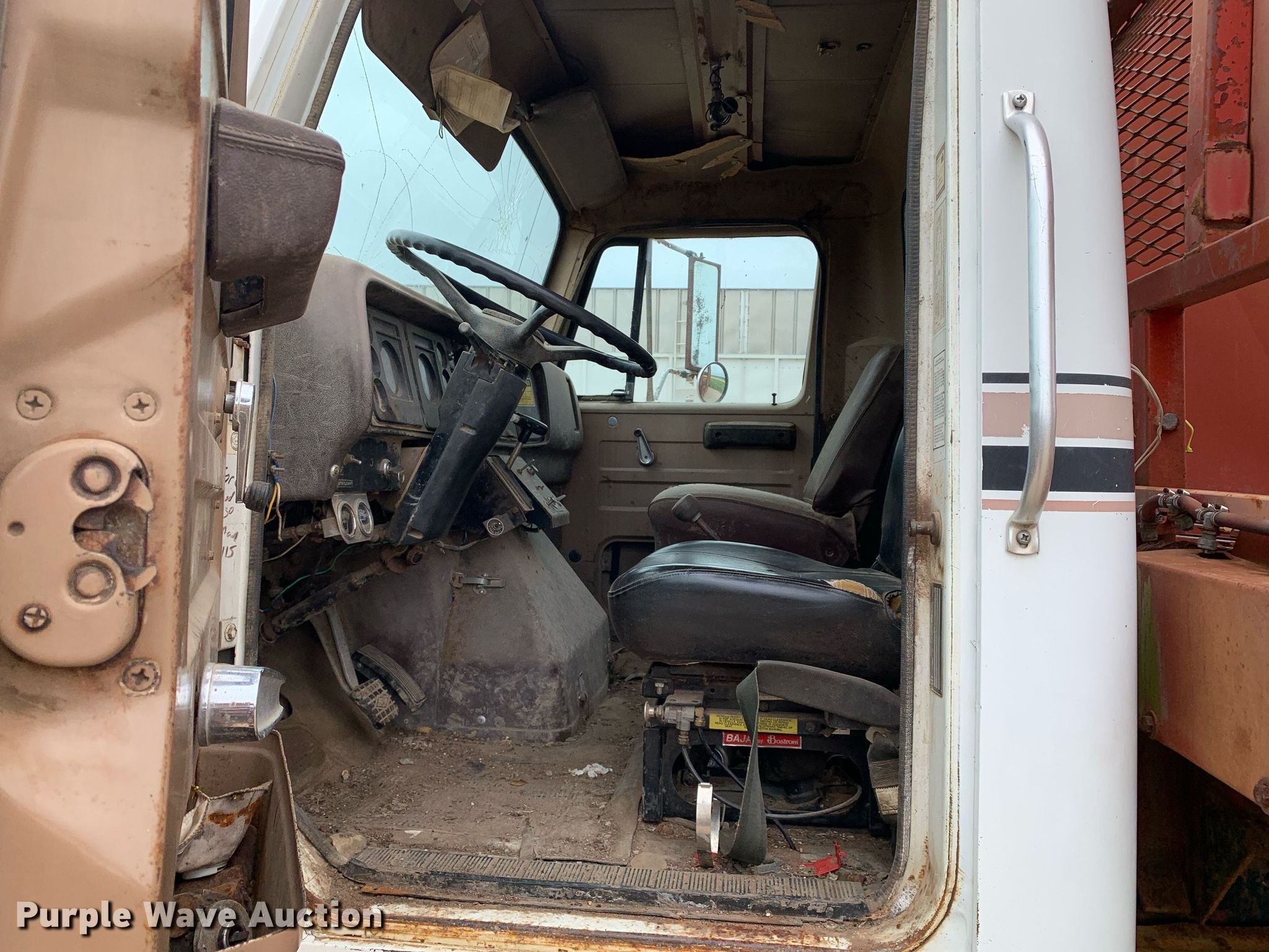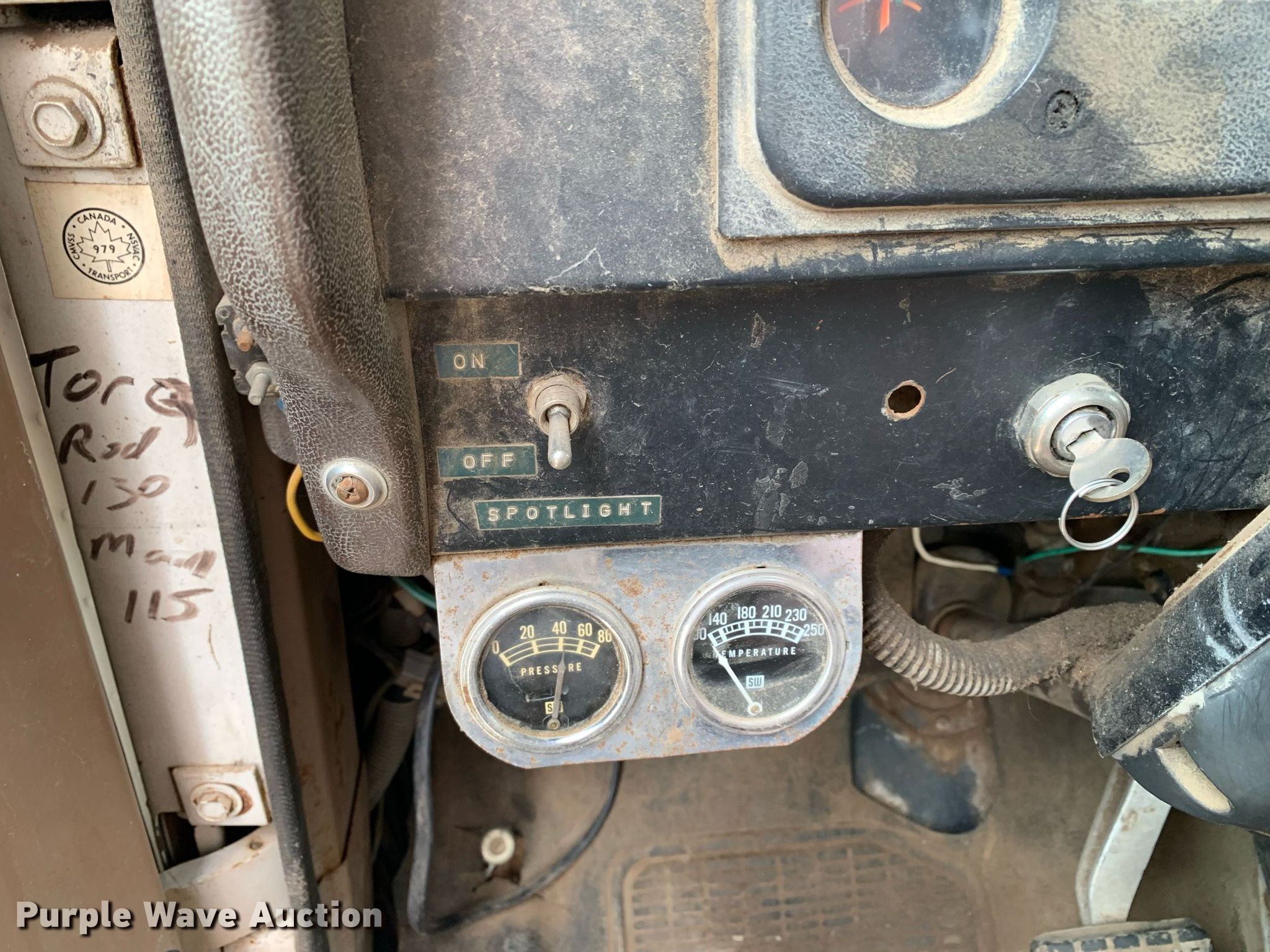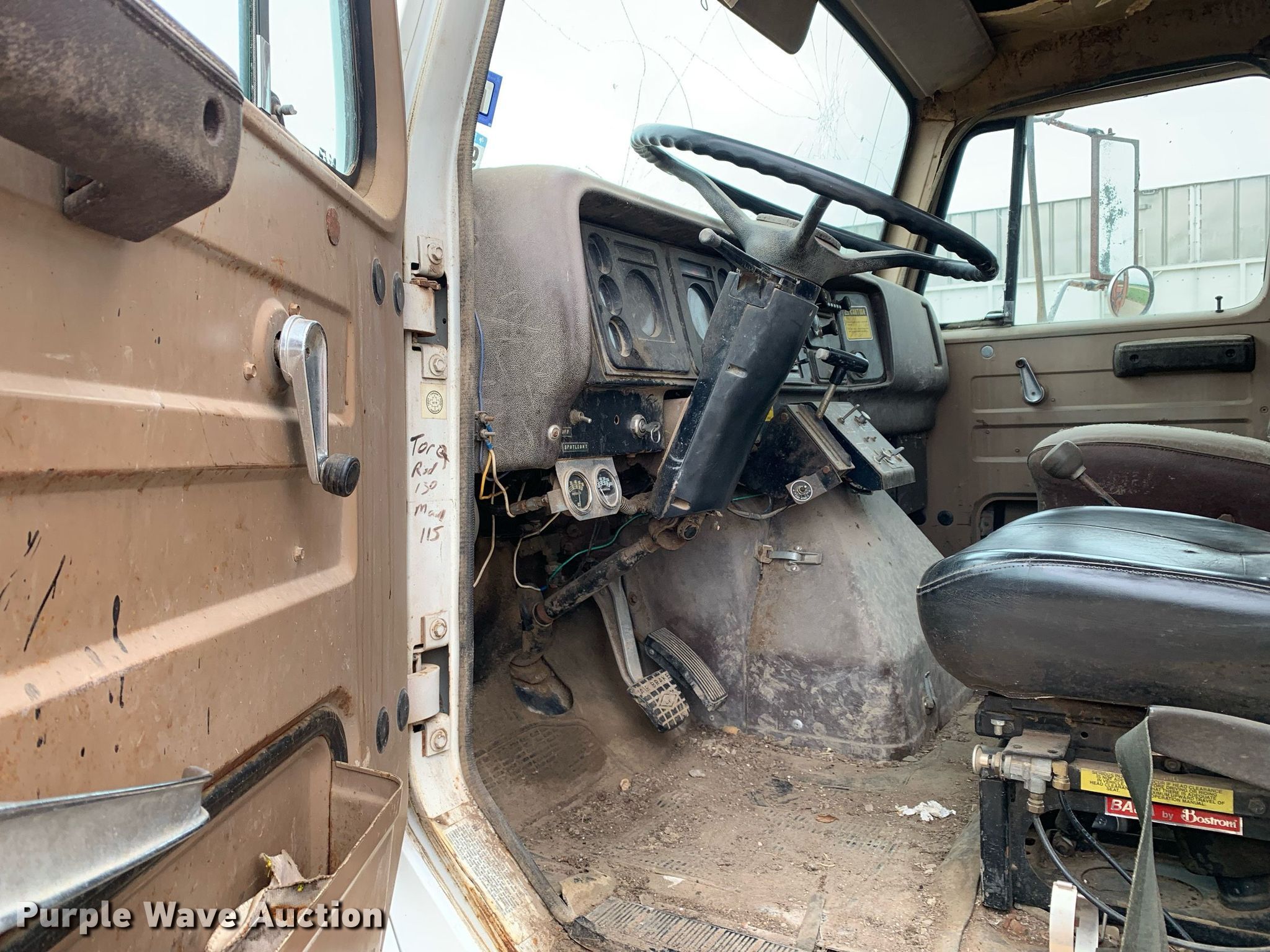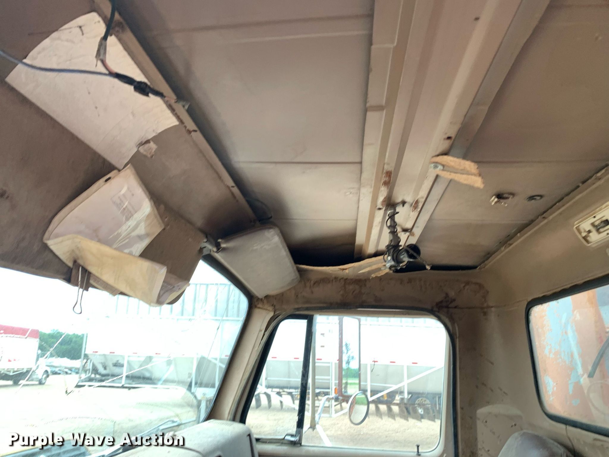 1981 International F1954 cotton module transport truck. Miles: 184,387 on odometer, VIN: 2HTAF1959BCA21597. Engine International, Displacement: 7.6L, Cylinders: 6, Fuel type: Diesel. Transmission Automatic. Chassis Axles: Tandem, Suspension: Spring over walking beam, Brakes: Air, PTO, Wet kit, GVWR: 50,000 lbs FAWR: 12,000 lbs, IAWR: 19,000 lbs, RAWR: 19,000 lbs. Interior Heat. Features Cotton module transport bed Floor: Chain conveyor Hydraulic driven.. Tires Size: 11R22.5. Notes Windshield chipped or cracked, Unknown operating condition of bed. Texas title. Title distribution may be delayed up to 14 days from verification of funds. PPF - Open Inspection June 19 and 26. 700 FM 1335. Cooper, TX 75432