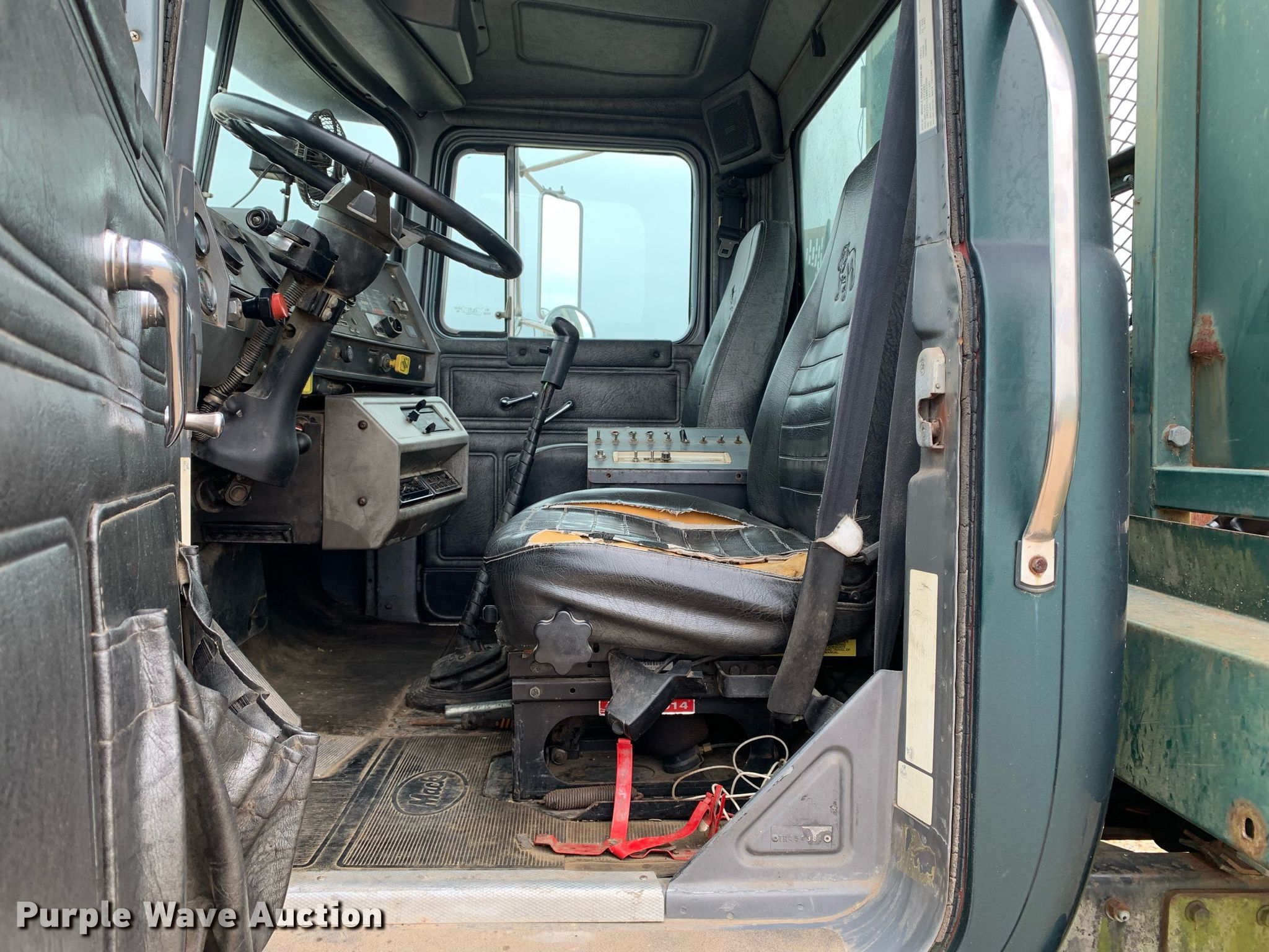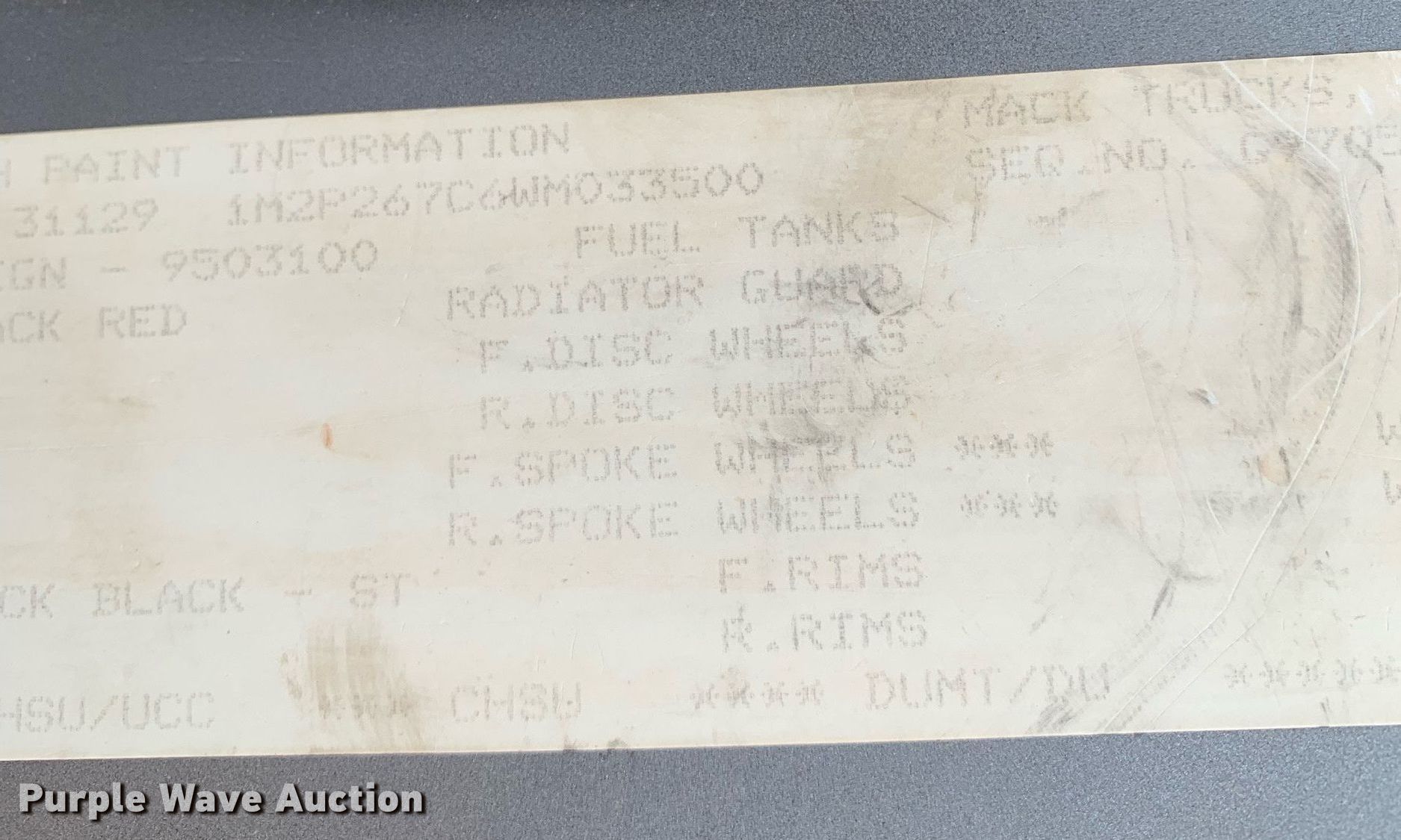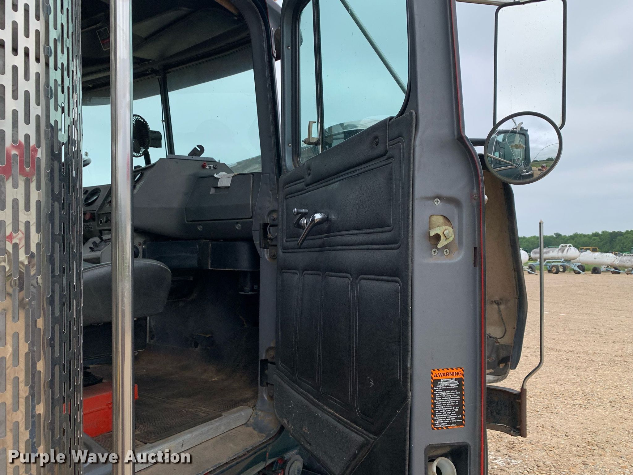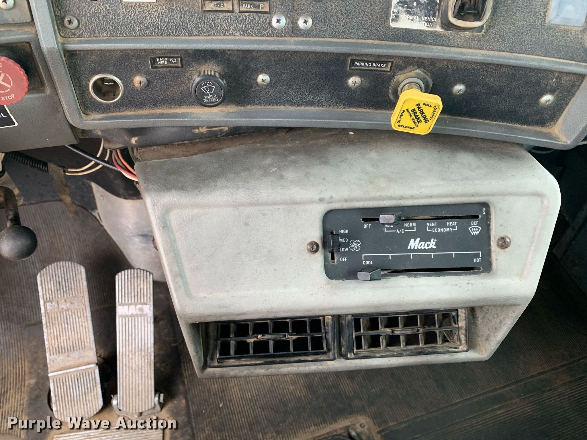 1998 Mack RD688S cotton module transport truck. Miles: 111,065 on odometer, Hours: 12,916 on meter, VIN: 1M2P267C6WM033500. Engine Mack, Displacement: 12.0L, Cylinders: 6, Fuel type: Diesel. Transmission Eaton Fuller, Manual, Speed: 9. Chassis Axles: Tandem, Suspension: Camelback, Brakes: Air, PTO, Wet kit, GVWR: 50,350 lbs FAWR: 12,350 lbs, IAWR: 19,000 lbs, RAWR: 19,000 lbs. Interior AC, Heat. Features Cotton module transport bed Floor: Chain conveyor Hydraulic driven.. Tires Size: 11R22.5. Notes Windshield chipped or cracked, Unknown operating condition of bed. Texas title. Title distribution may be delayed up to 14 days from verification of funds. PPF - Open Inspection June 19 and 26. 700 FM 1335. Cooper, TX 75432