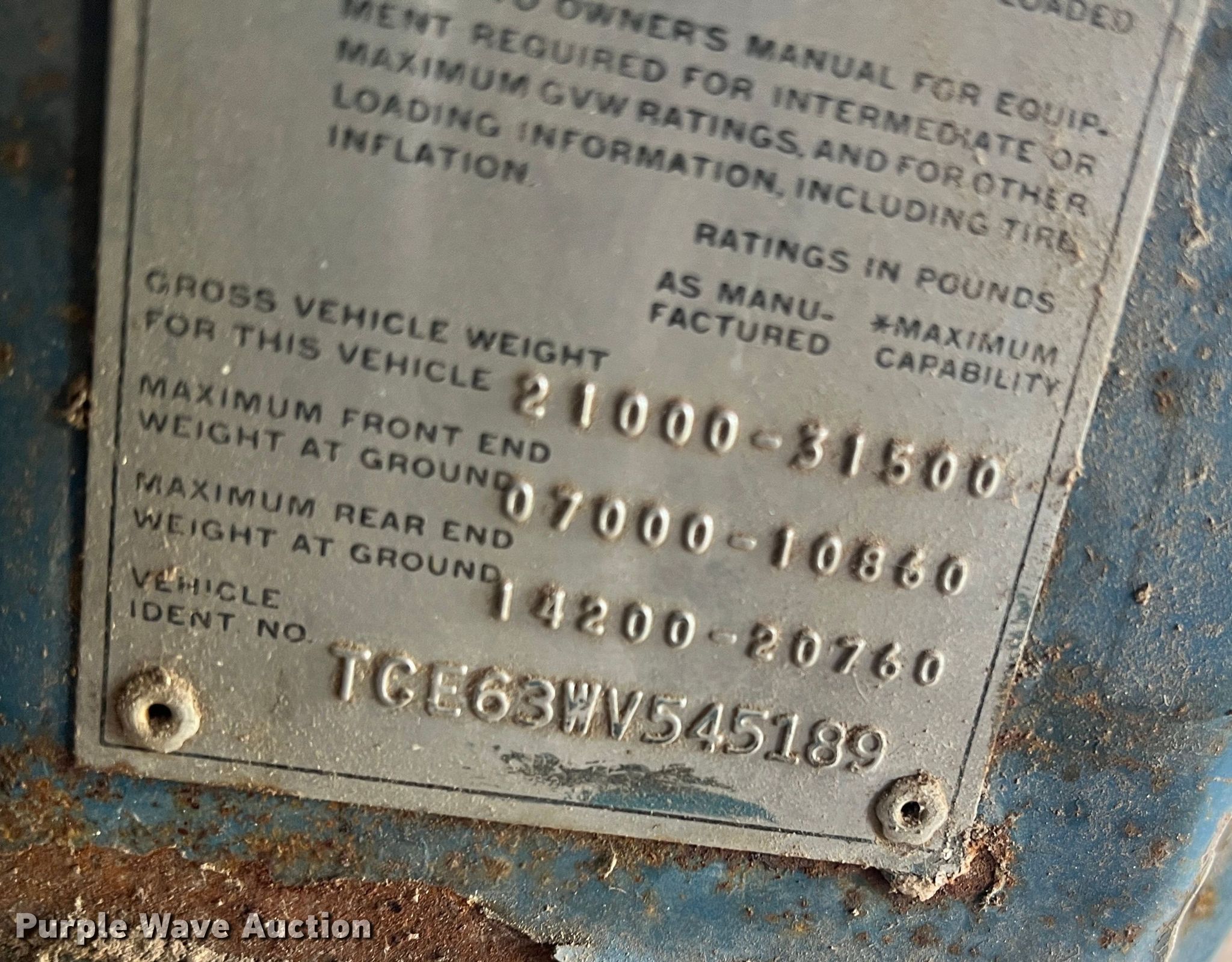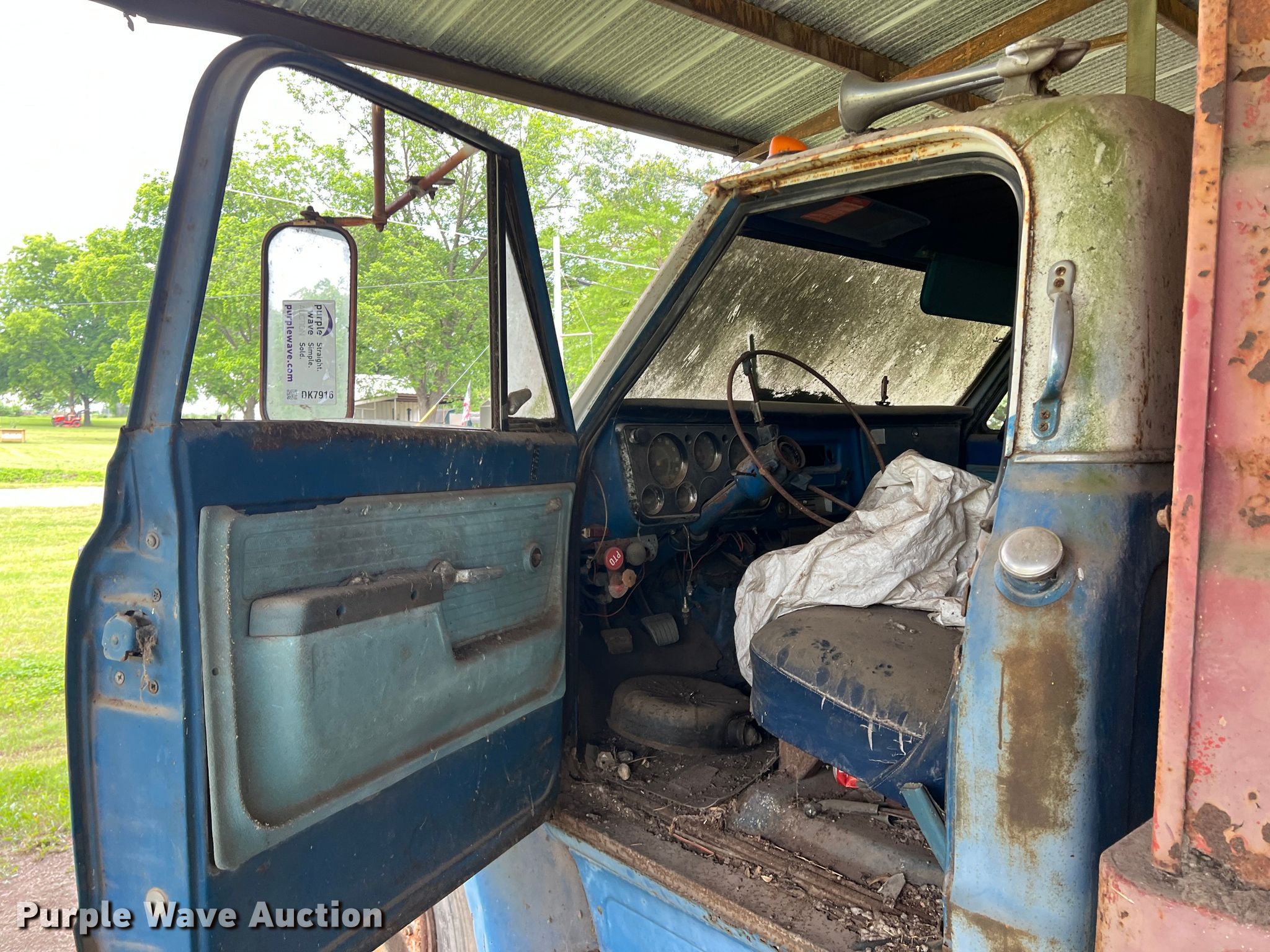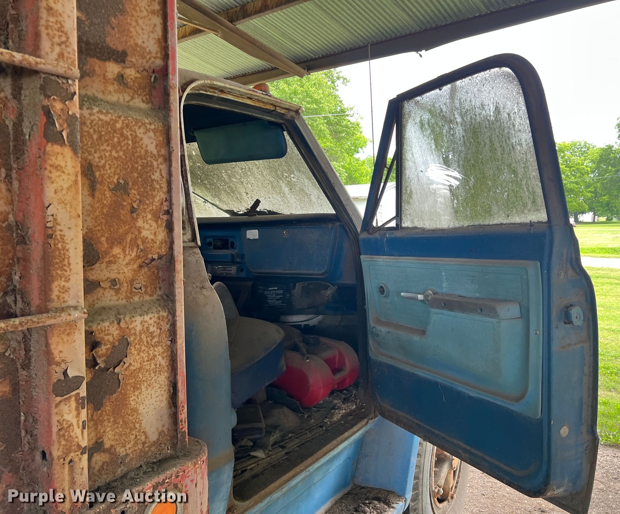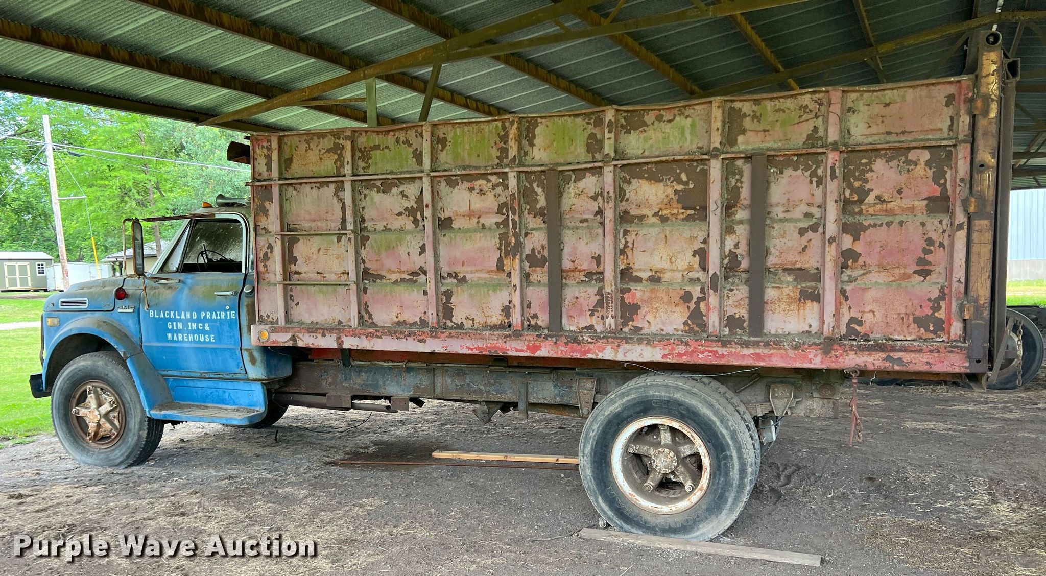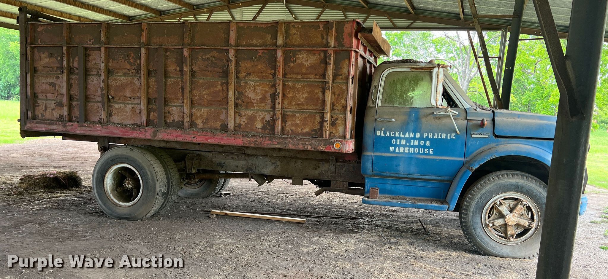 1972 GMC grain truck. Miles: 98,179 on odometer, VIN: TCE63WV545189. Engine Cylinders: 8, Fuel type: Gas. Transmission Manual, Speed: 5, plus 2. Chassis Double frame, Axles: Single, Suspension: Spring, PTO. Interior AC, Heat. Features Dump bed 16' L x 8' W, Side height: 53". Tires Size: 10.00R20. Notes Non-operational unit. Texas title. Title distribution may be delayed up to 14 days from verification of funds. PPF - Open Inspection June 19 and 26. 700 FM 1335. Cooper, TX 75432