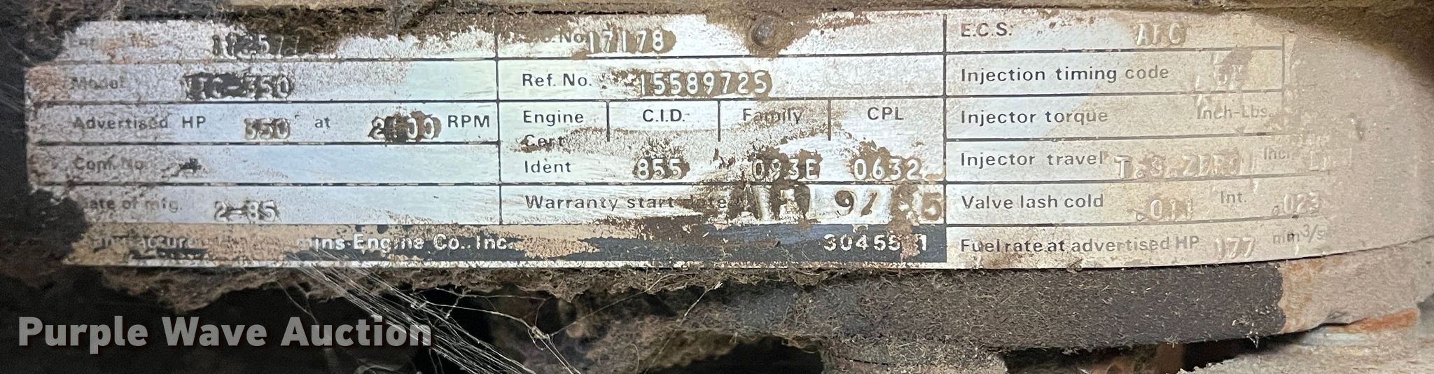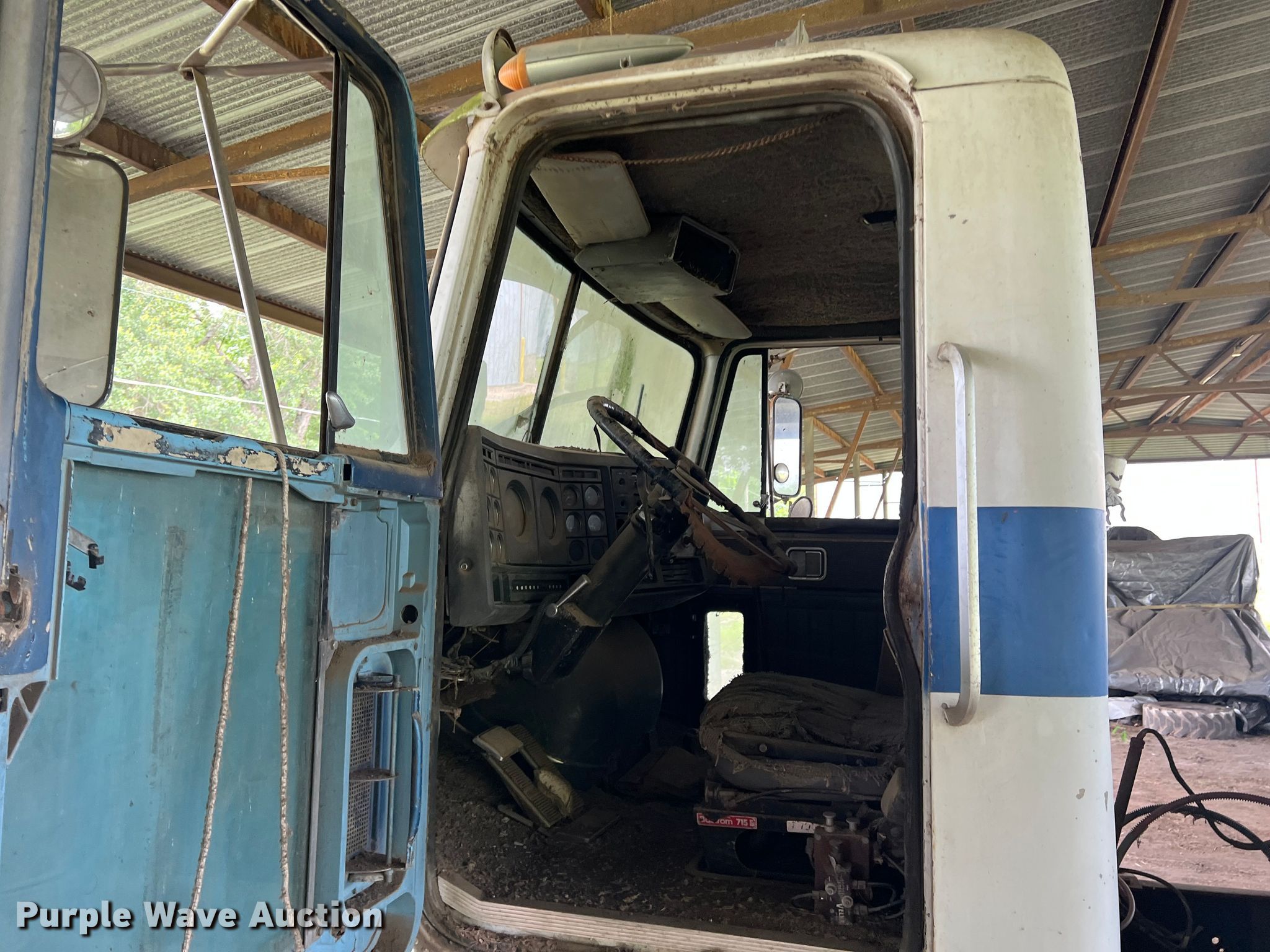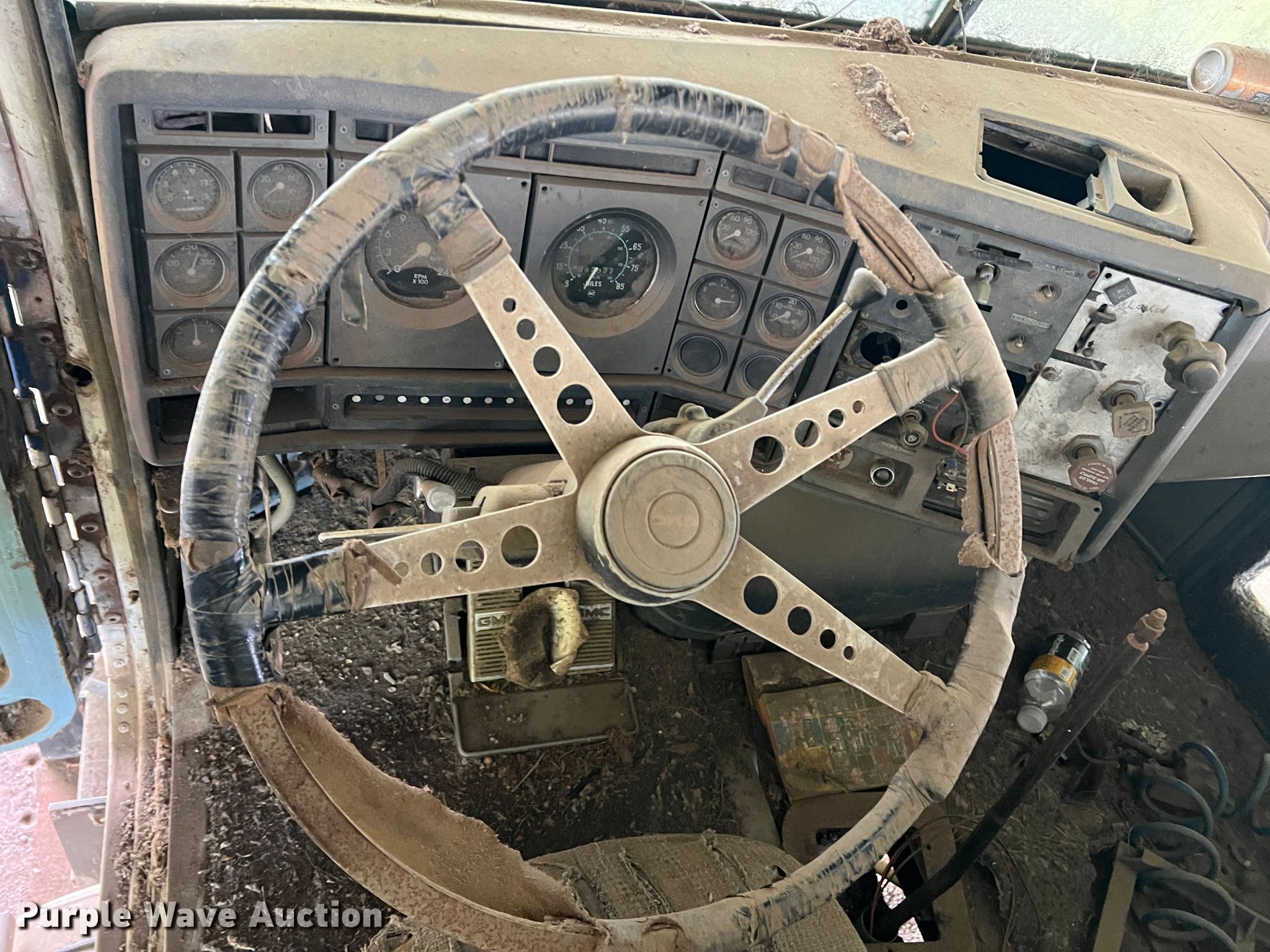 1985 GMC General semi truck. Miles: 92,322 on odometer, VIN: 1GDT9F4C7FV611127. Engine Cummins NTC, Displacement: 14.0L, Cylinders: 6, Fuel type: Diesel, HP: 350. Transmission Manual, Speed: 6. Chassis Axles: Tandem, Differential lock: Inter-axle, Suspension: Spring, Brakes: Air, PTO, Wet kit, GVWR: 50,000 lbs. Interior Heat. Features Deck plate: Aluminum, Fifth wheel type: Sliding, Fuel tank: Dual. Tires Size: 11R24.5. Notes Non-operational door handles, broken, Non-operational unit. Texas title. Title distribution may be delayed up to 14 days from verification of funds. PPF - Open Inspection June 19 and 26. 700 FM 1335. Cooper, TX 75432