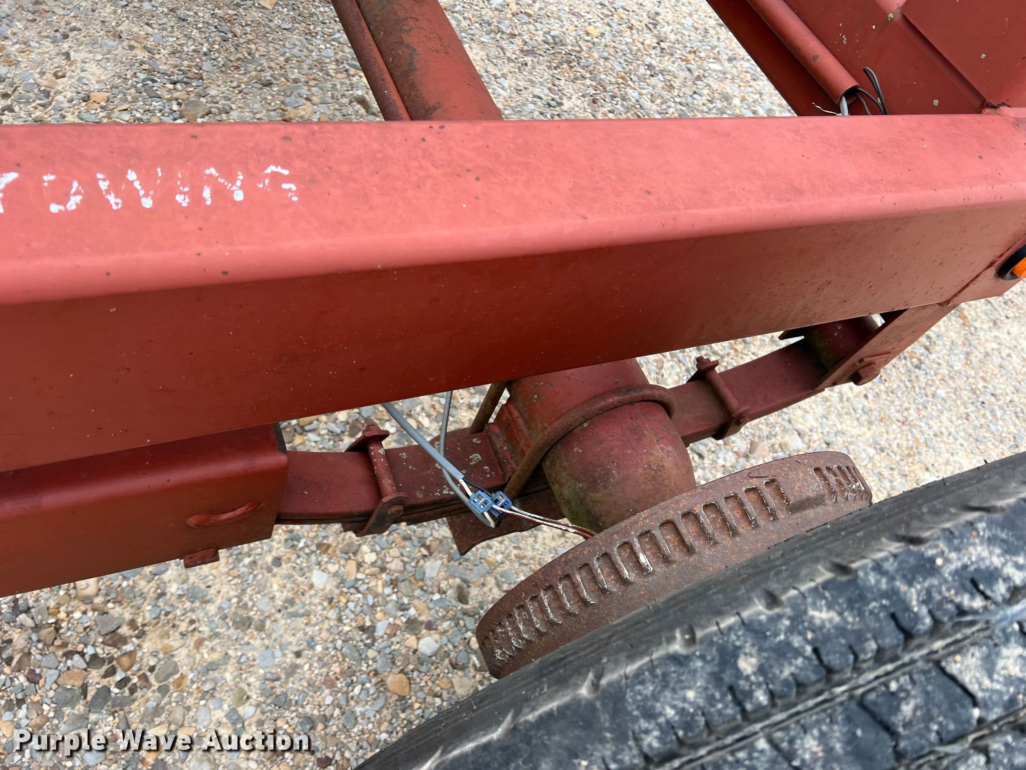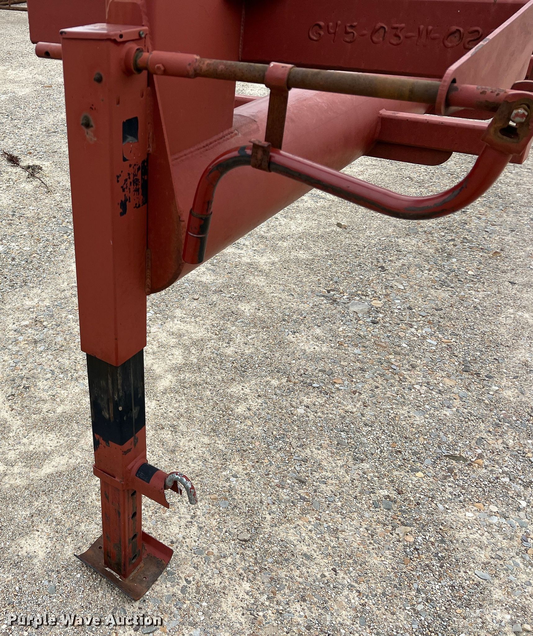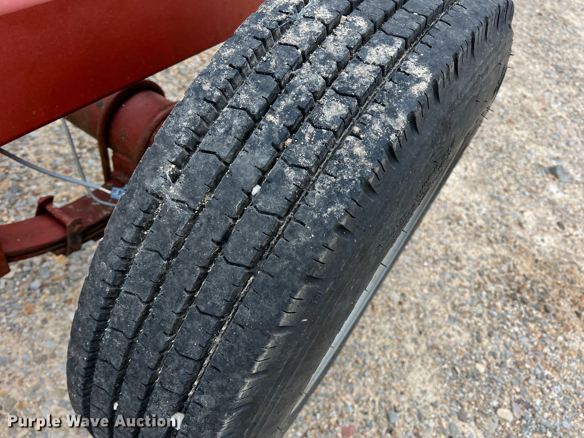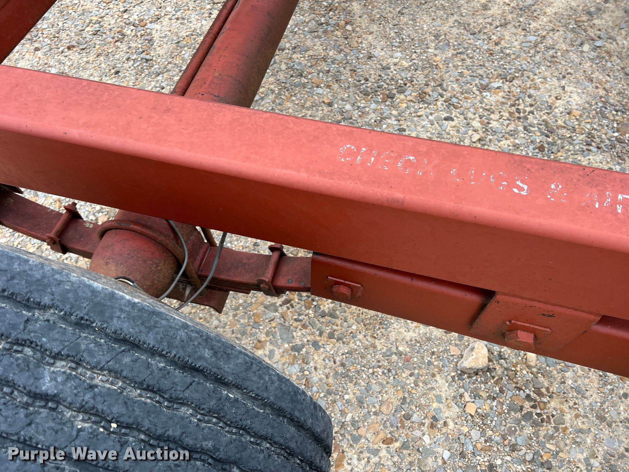 Red Ox hay bale trailer. VIN: G45-03-11-029. Dimensions Overall: 52'L x 95"W, Deck: 46'L x 43"W. Features Side dump. Chassis Hitch: Gooseneck, Landing gear: Single, Suspension: Spring, Brakes: Electric, Axles: Tandem. Tires Size: 215/75R17.5. Transfer of ownership documentation will be a bill of sale. PPF - Open Inspection June 19 and 26. 700 FM 1335. Cooper, TX 75432