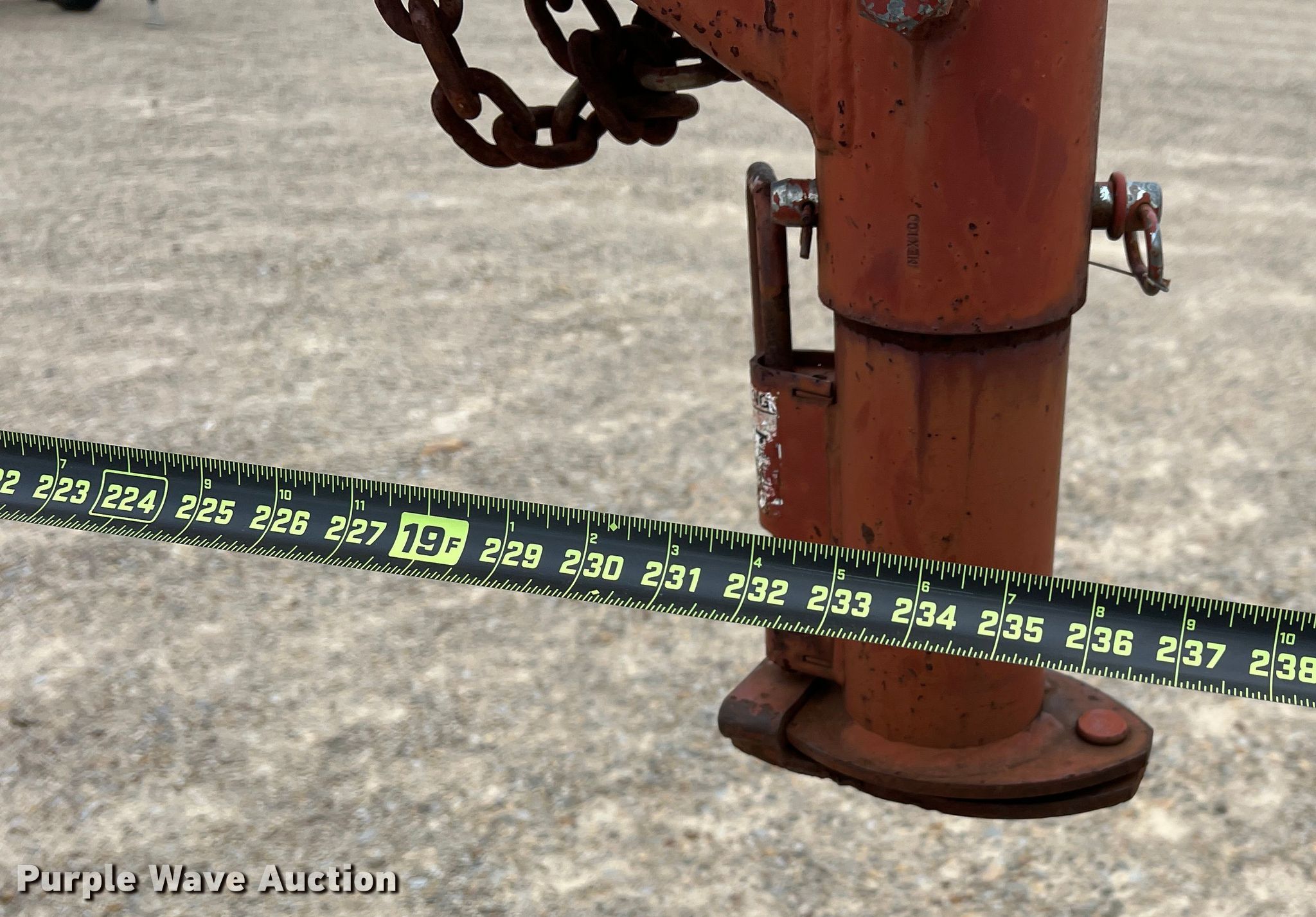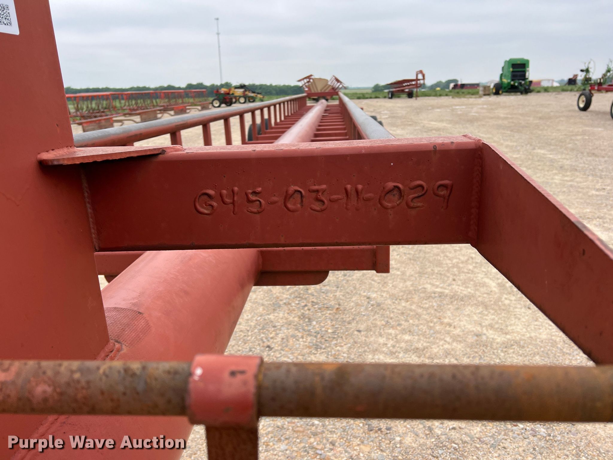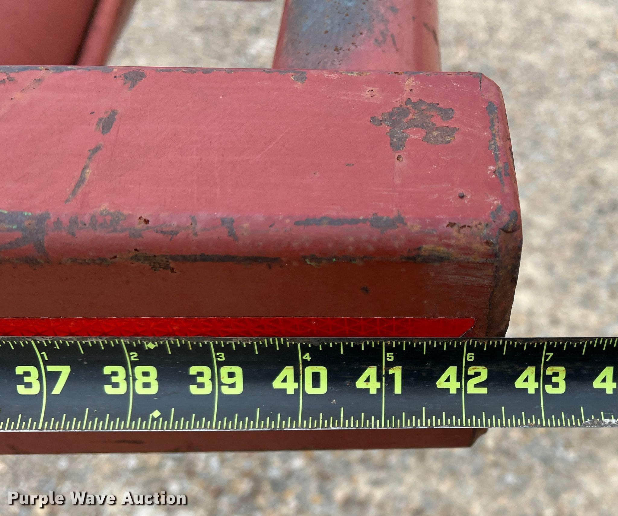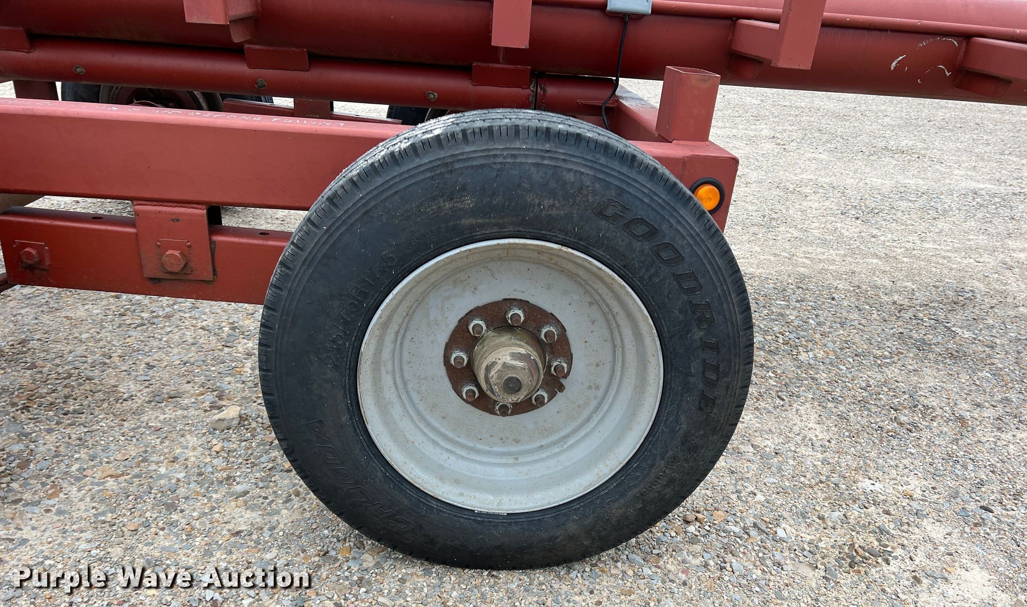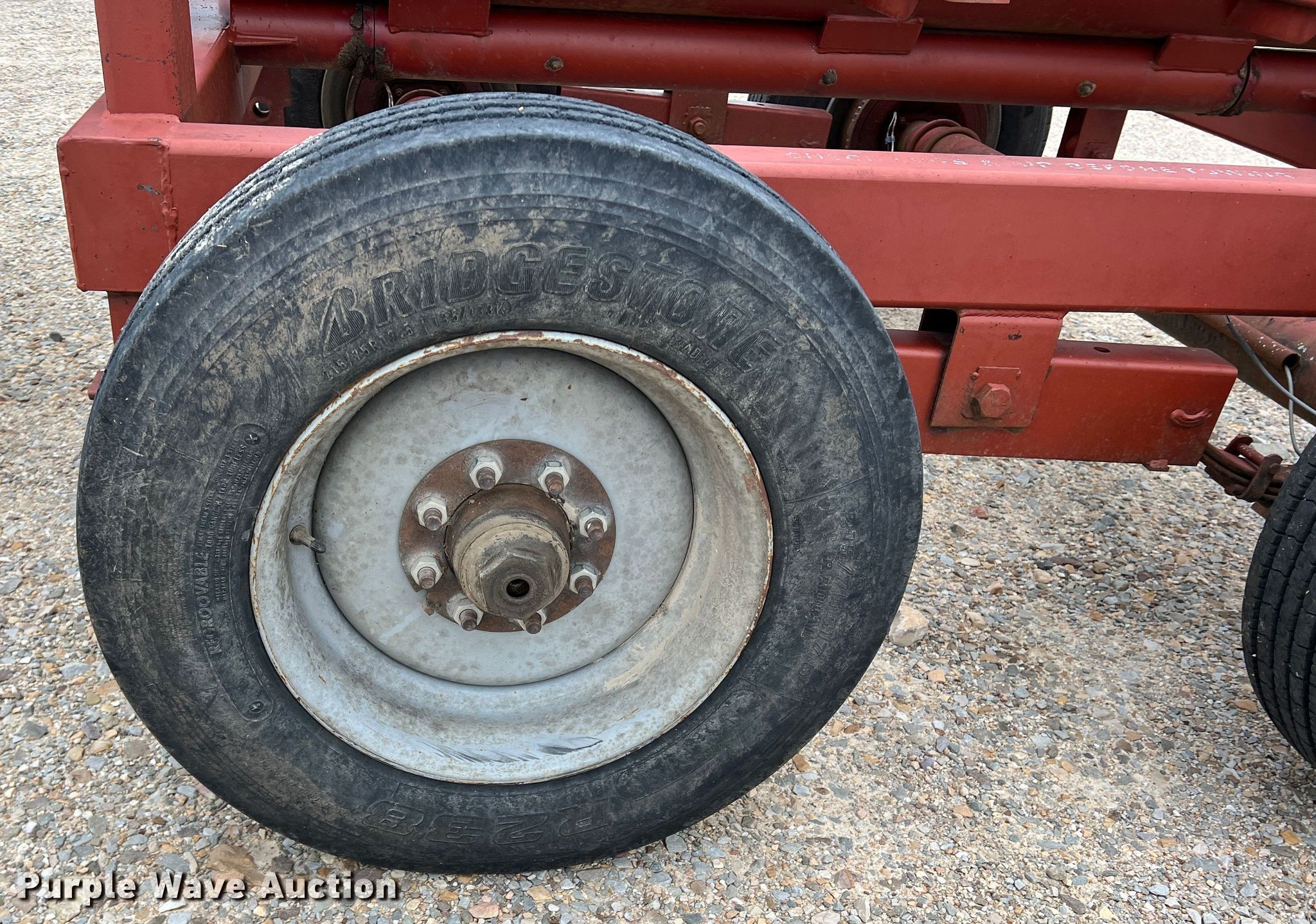 Red Ox hay bale trailer. VIN: G45-03-11-029. Dimensions Overall: 52'L x 95"W, Deck: 46'L x 43"W. Features Side dump. Chassis Hitch: Gooseneck, Landing gear: Single, Suspension: Spring, Brakes: Electric, Axles: Tandem. Tires Size: 215/75R17.5. Transfer of ownership documentation will be a bill of sale. PPF - Open Inspection June 19 and 26. 700 FM 1335. Cooper, TX 75432