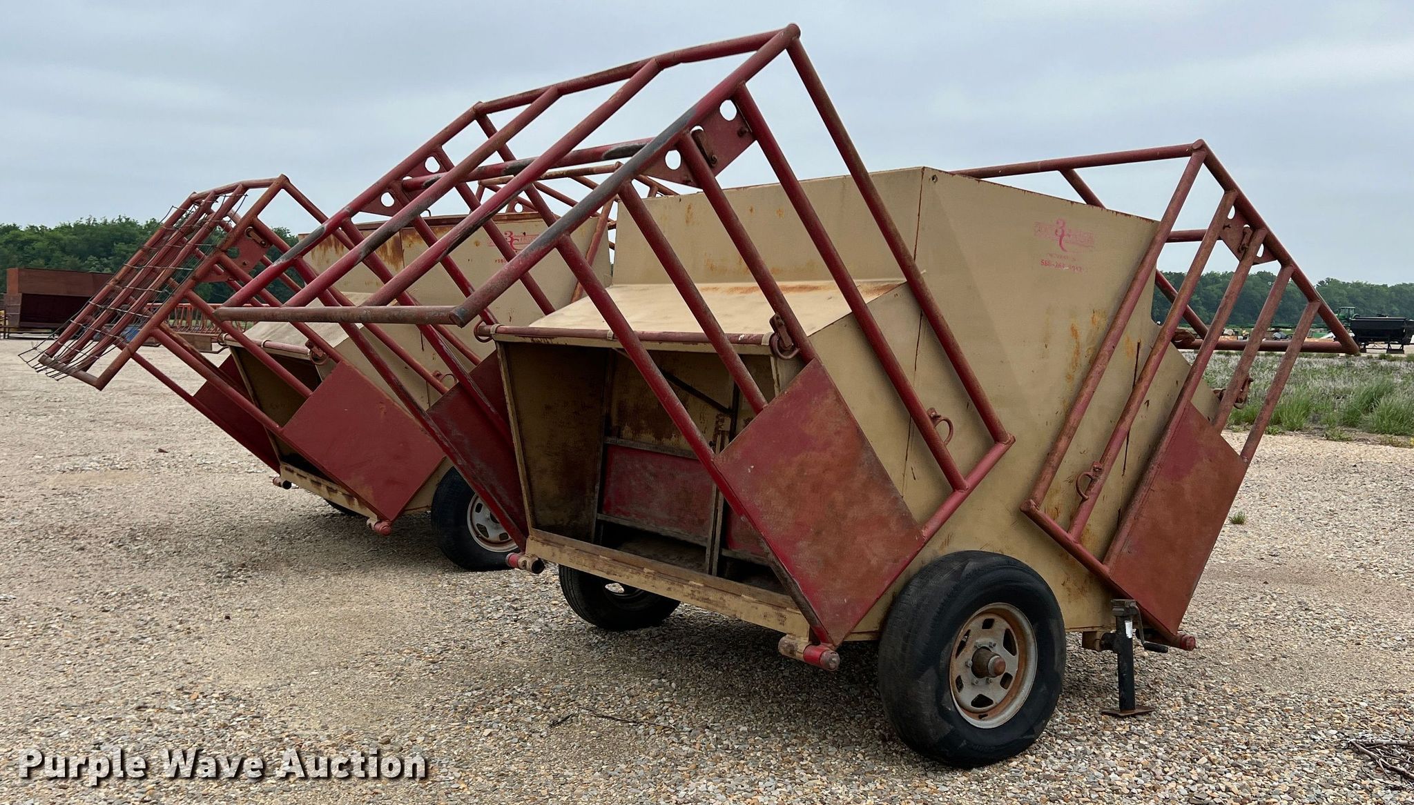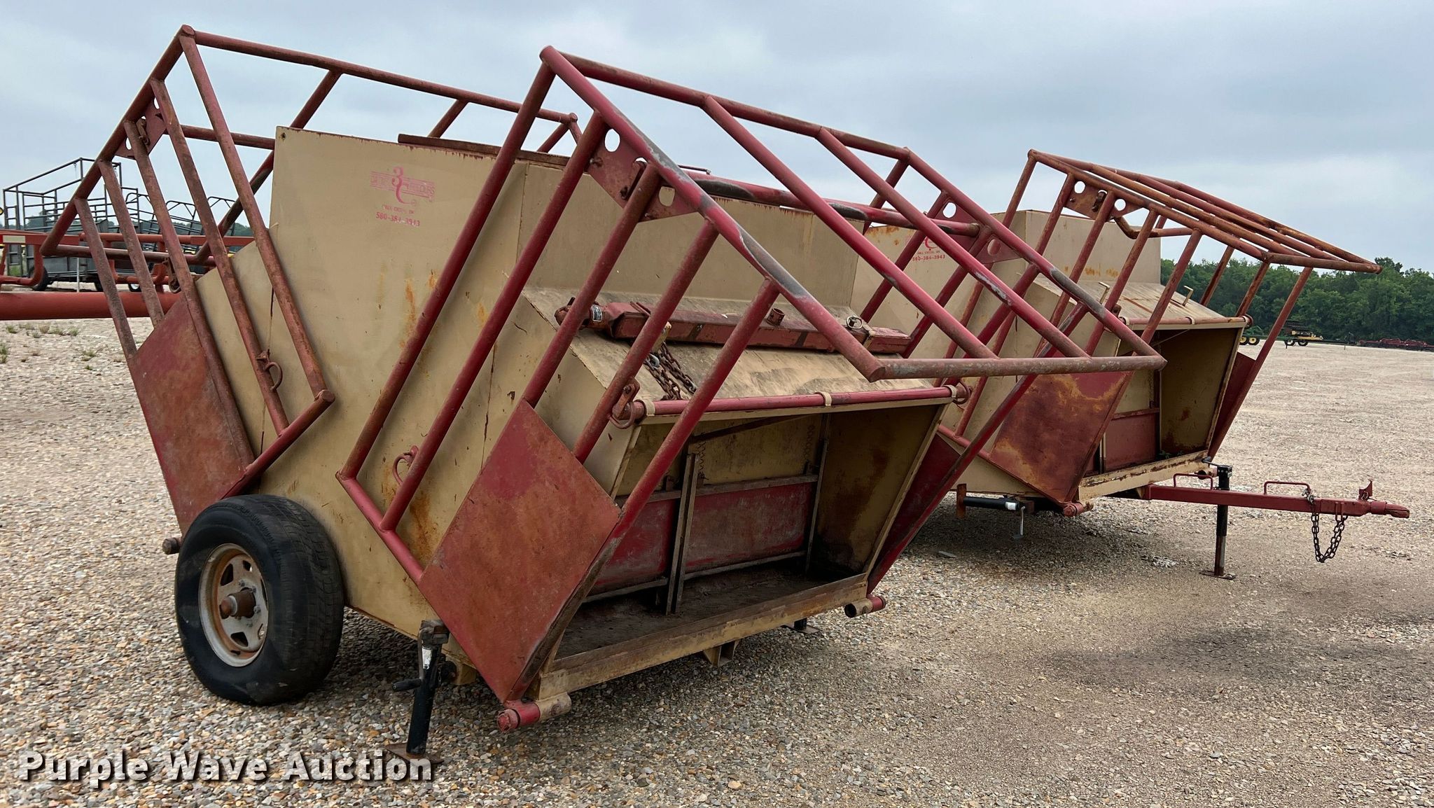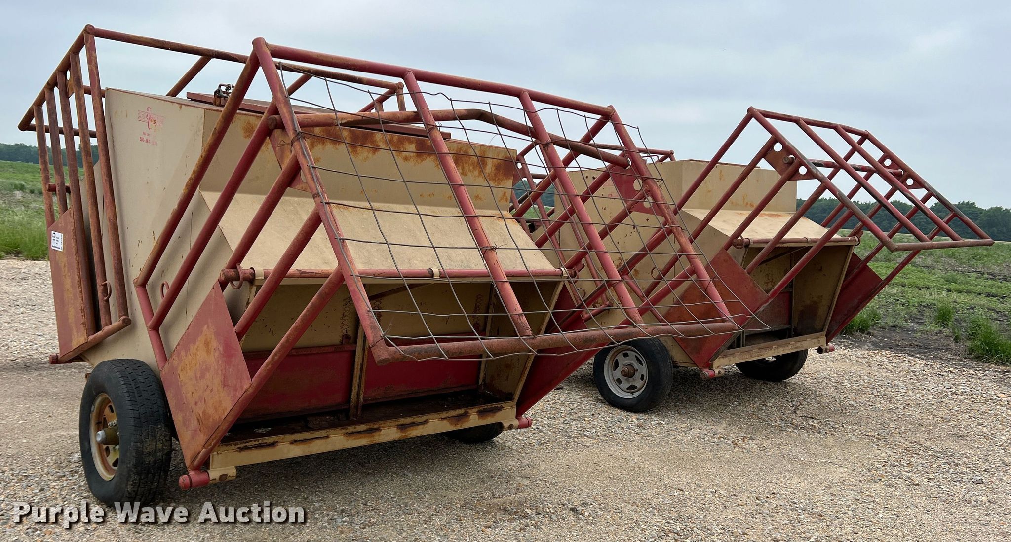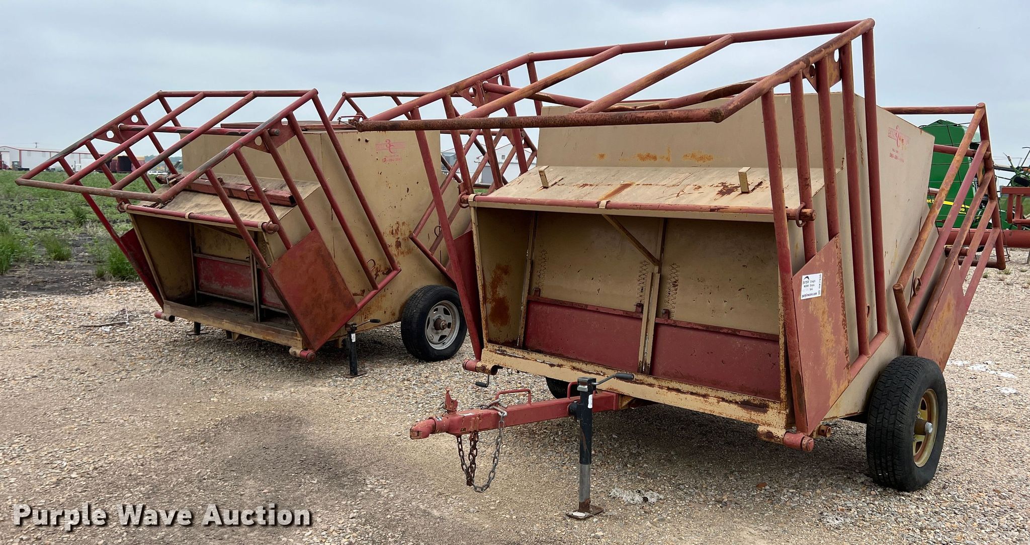 Purple Wave is selling a used Livestock Equip. in Texas. This item is a (2) 3C calf feeders with the following: 15'L x 80"W, 2" ball hitch