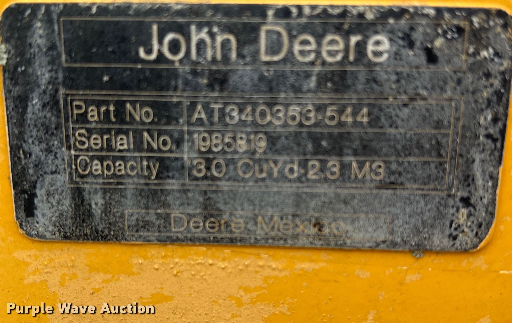 2014 John Deere 544K high lift wheel loader. Hours: 5,958 on meter, Serial: 1DW544KHAEE662625. Engine John Deere , Serial: PE6068R082871, Cylinders: 6, Fuel type: Diesel. Transmission Powershift, 4F - 3R. Operators station Enclosed cab, AC, Heat, Bucket controls: Joystick. Features Auxiliary hydraulics: Front, Bucket John Deere , Capacity: 3 cu.yd., Width: 104". Tires Size: 20.5R25. PPF - Open Inspection June 19 and 26. 700 FM 1335. Cooper, TX 75432