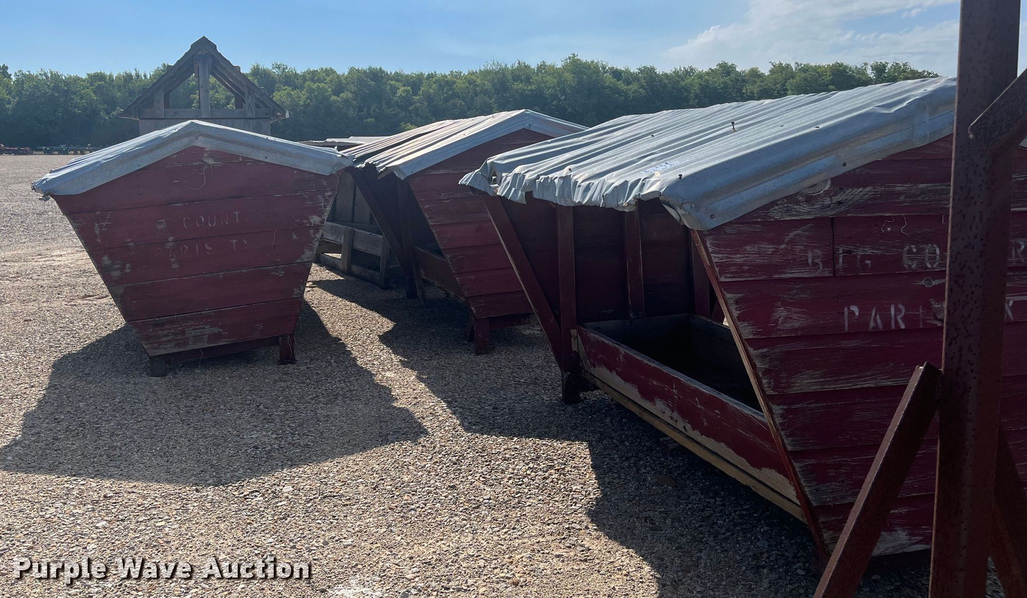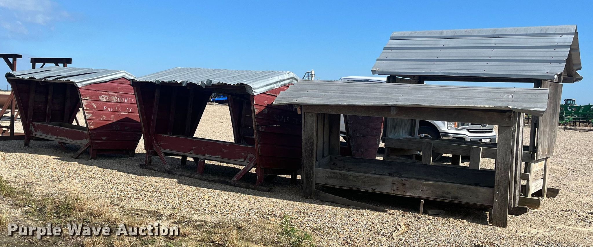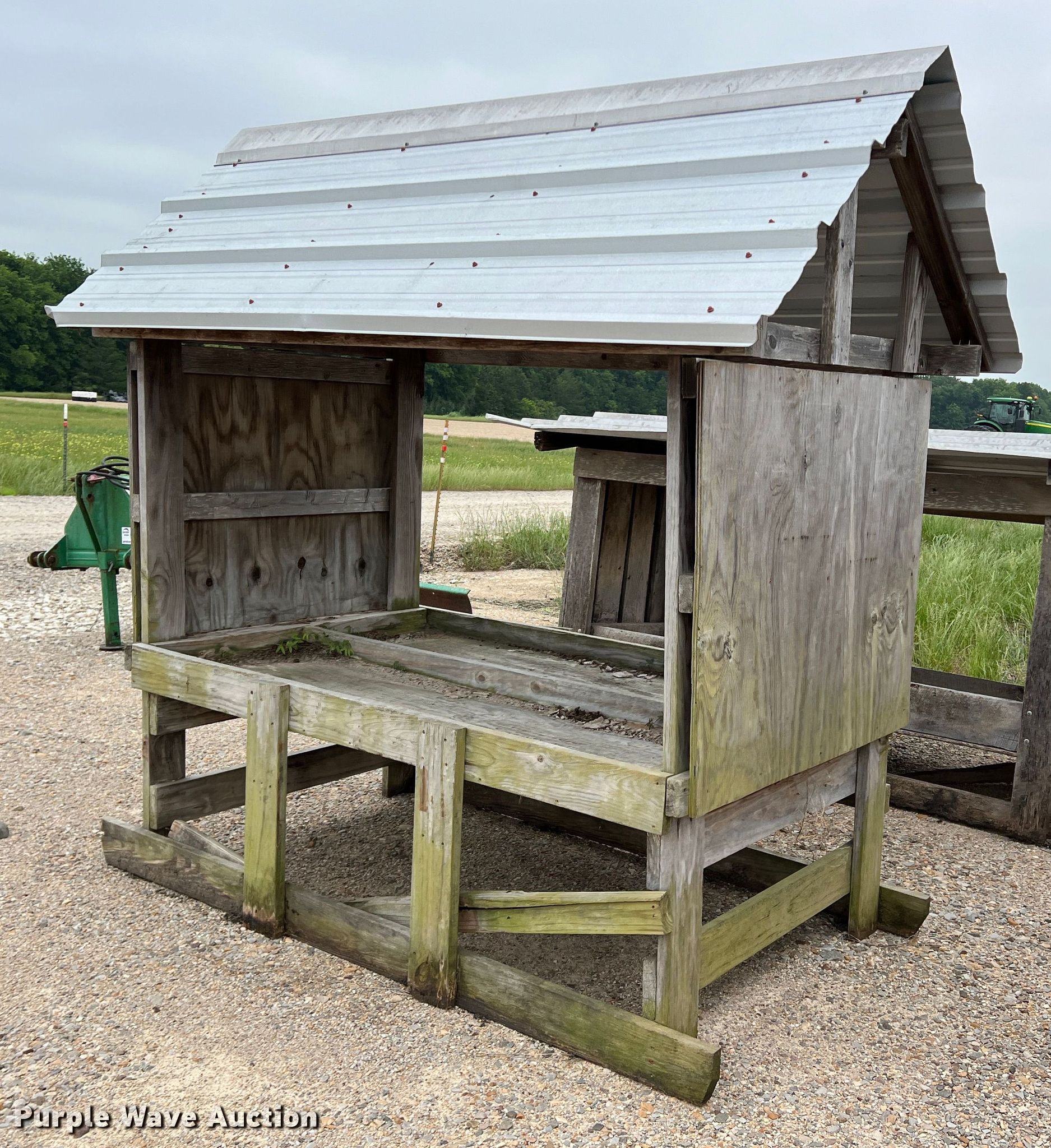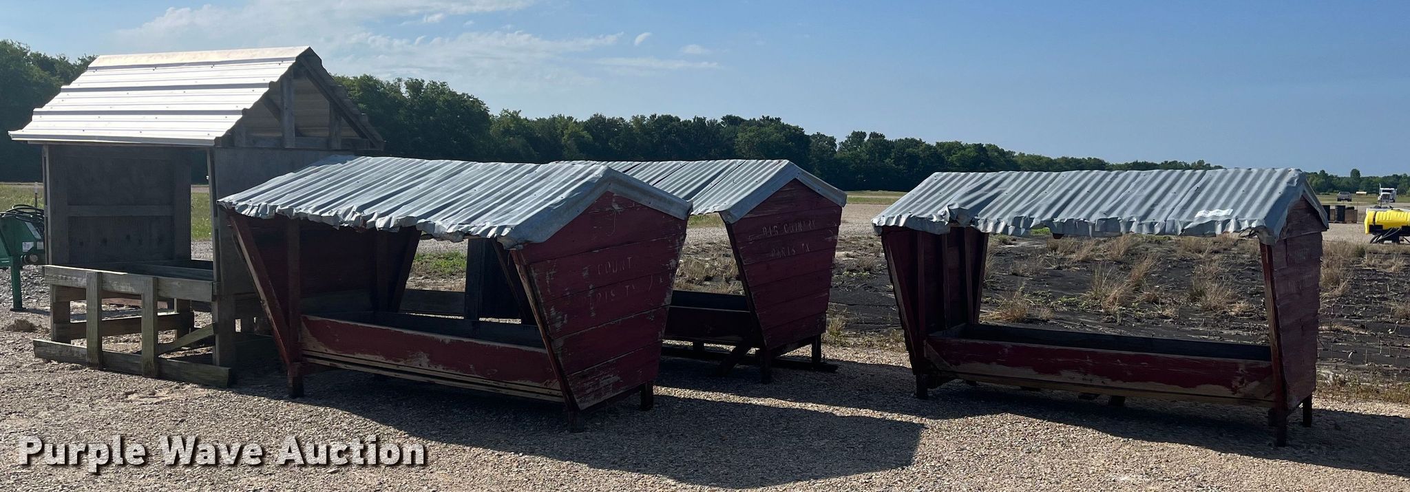 (5) livestock feeders. (3) 8'L x 6'W x 34"H, 7'L x 4'W x 10'H, 10'L x 6'W x 5'H. Notes Storm damage. PPF - Open Inspection June 19 and 26. 700 FM 1335. Cooper, TX 75432