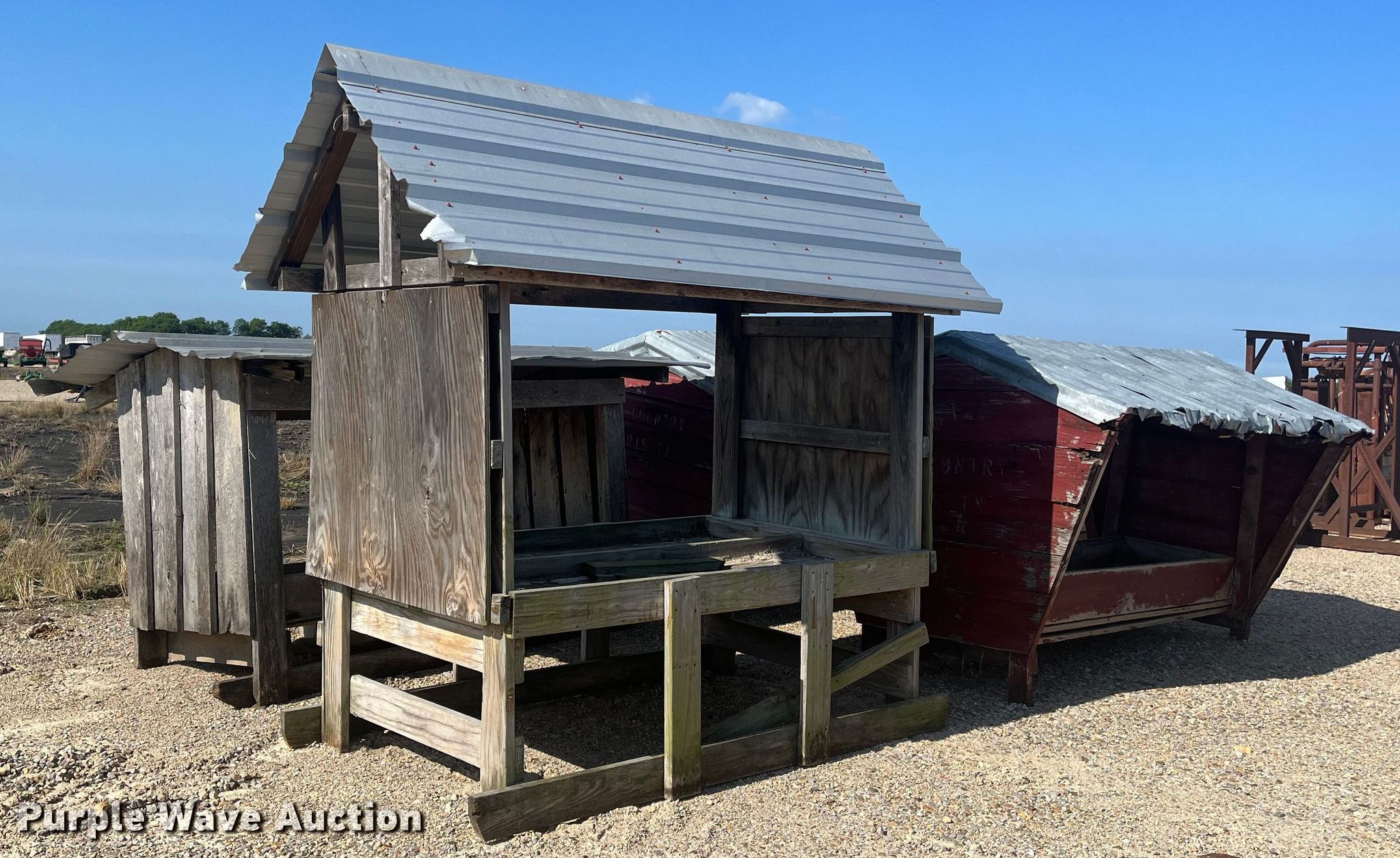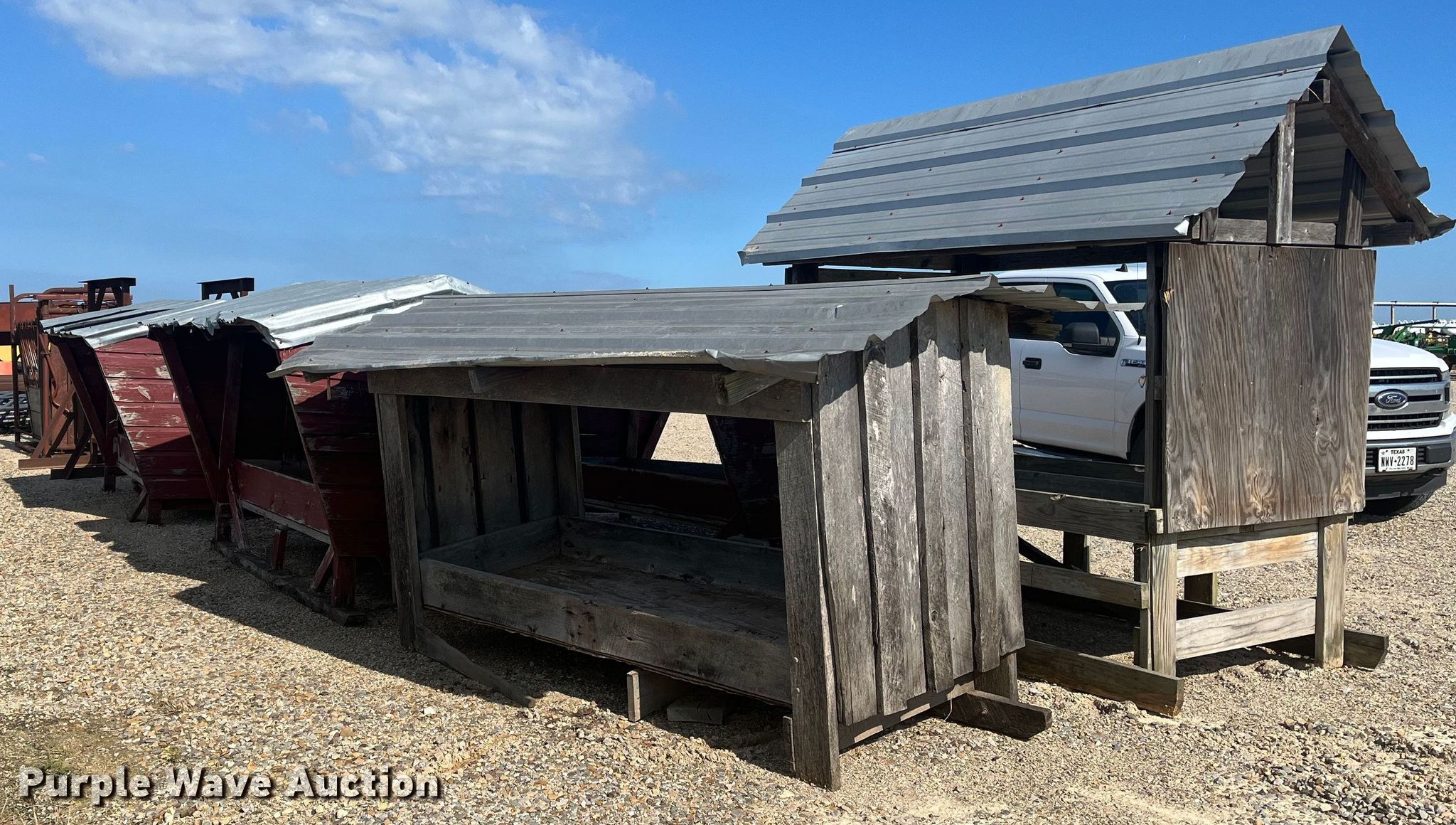 Purple Wave is selling a used Livestock Equip. in Texas. This item is a (5) livestock feeders with the following: (3) 8'L x 6'W x 34"H, 7'L x 4'W x 10'H, 10'L x 6'W x 5'H