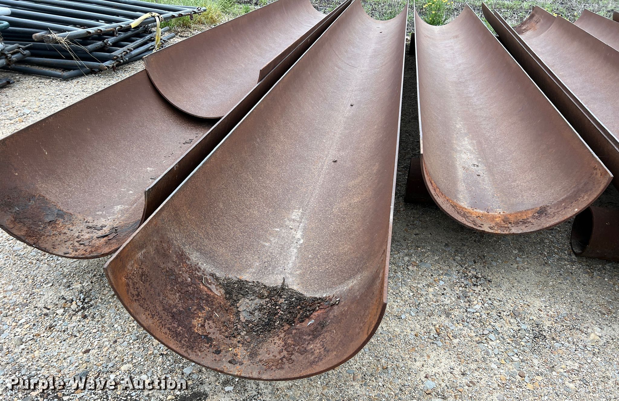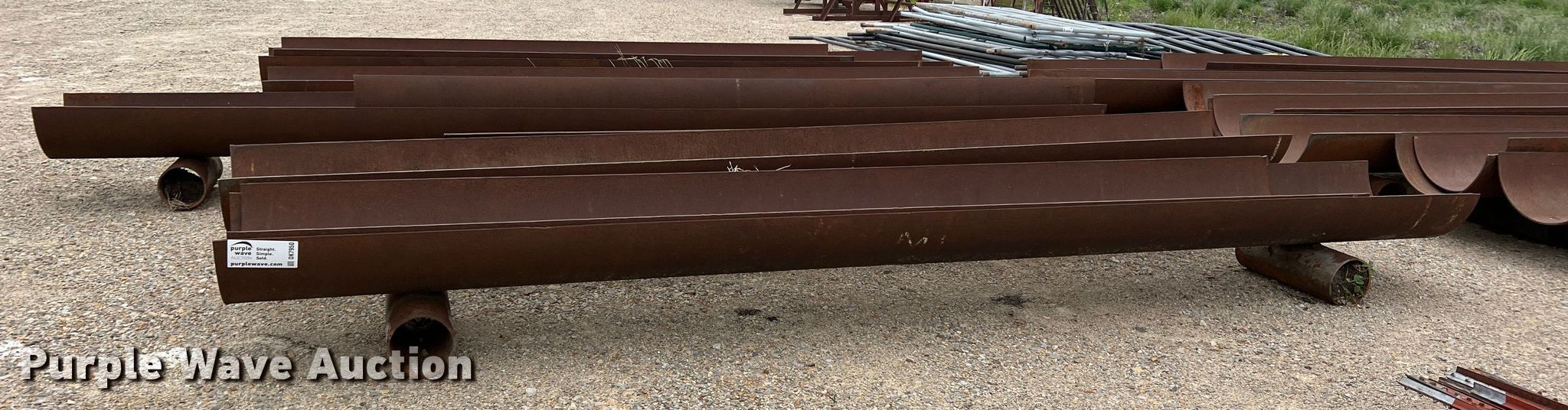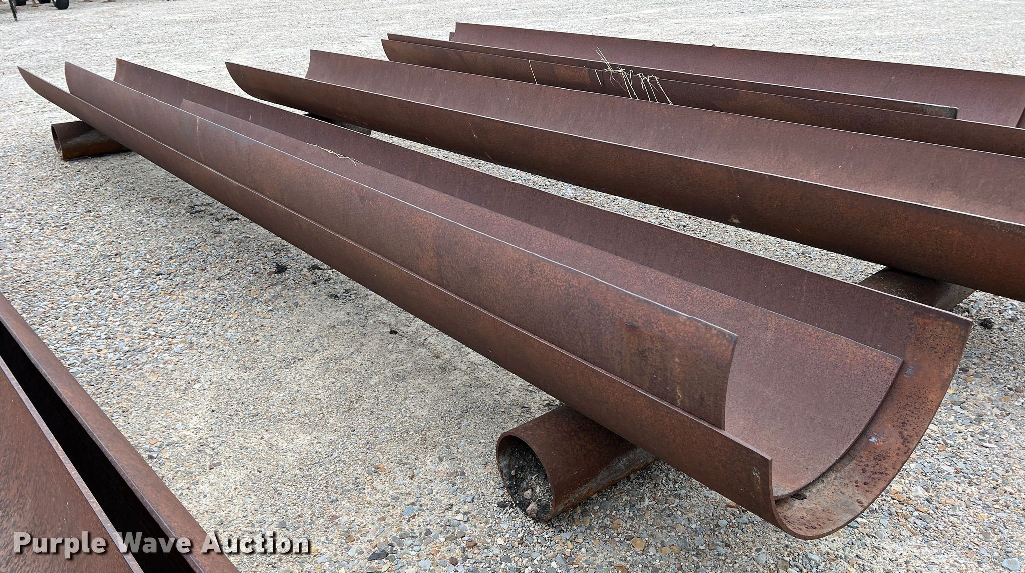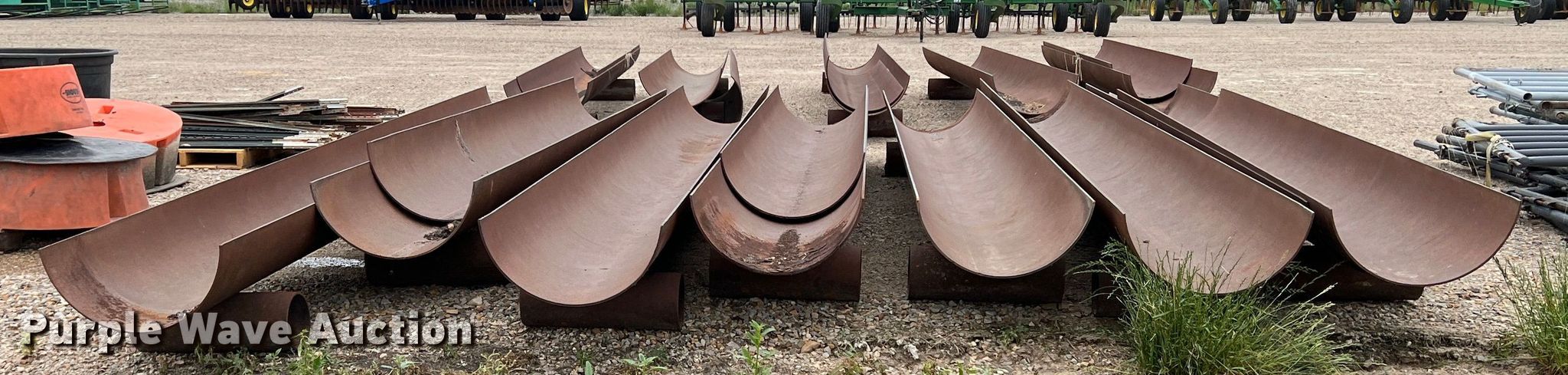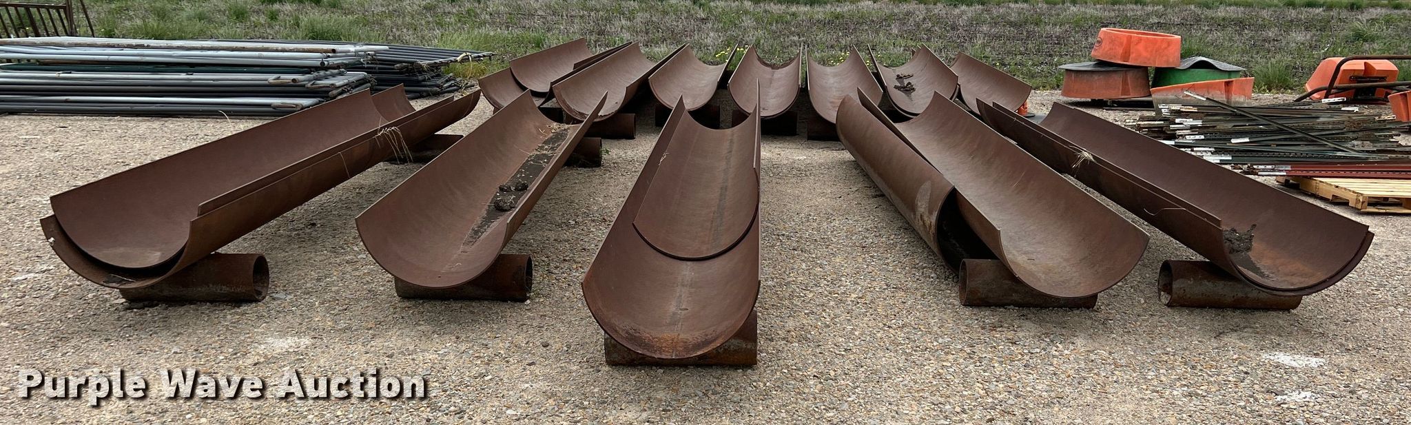 Purple Wave is selling a used Livestock Equip. in Texas. This item is a (11) feed troughs with the following: Approx. 16'L x 26" diameter, Additional pipe