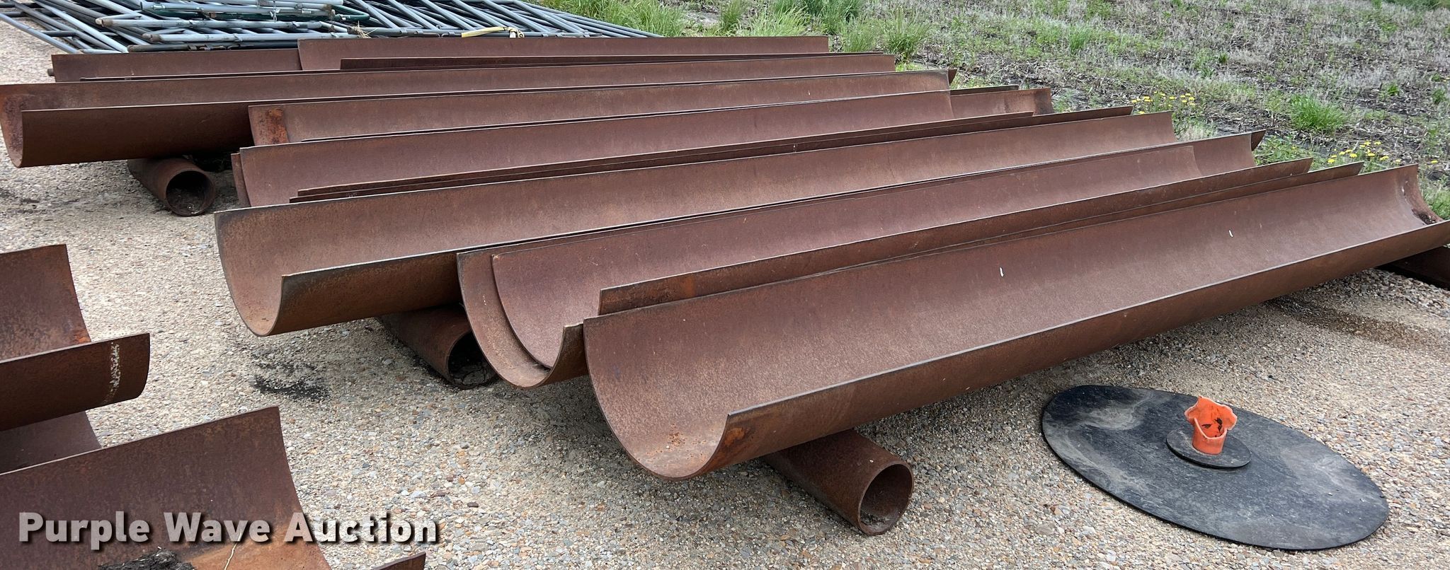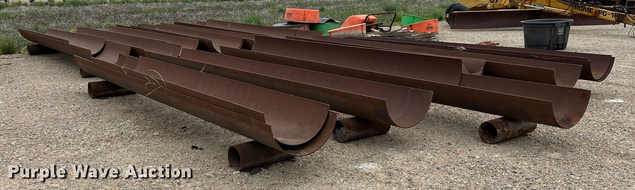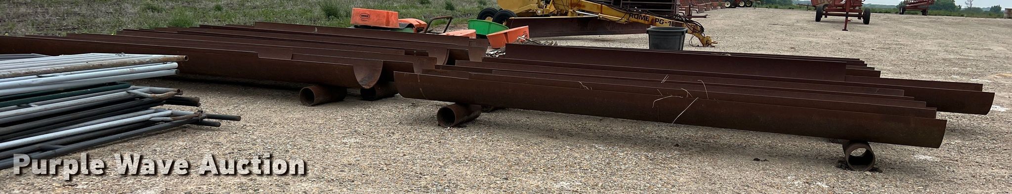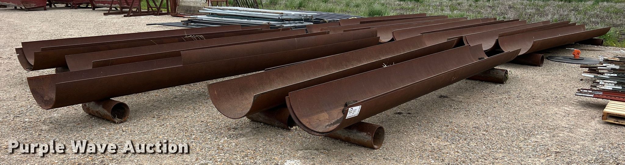 Purple Wave is selling a used Livestock Equip. in Texas. This item is a (11) feed troughs with the following: Approx. 16'L x 26" diameter, Additional pipe