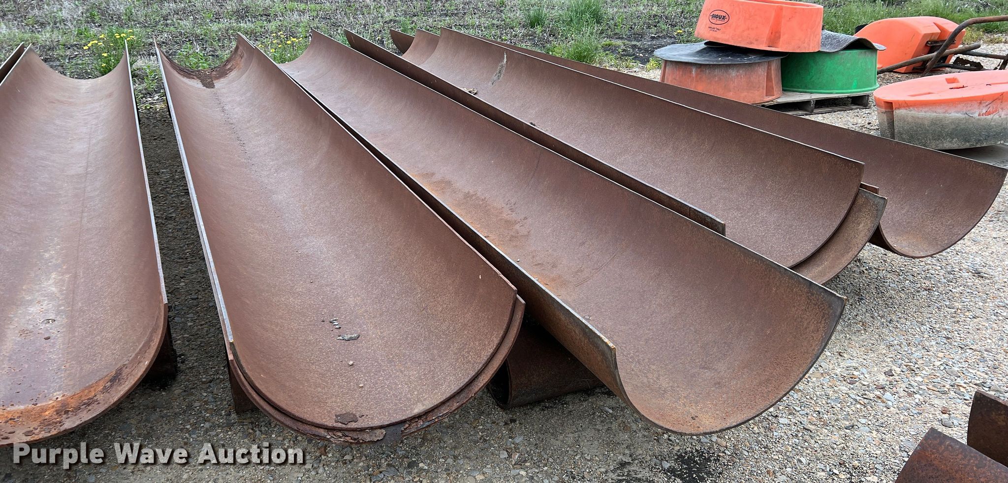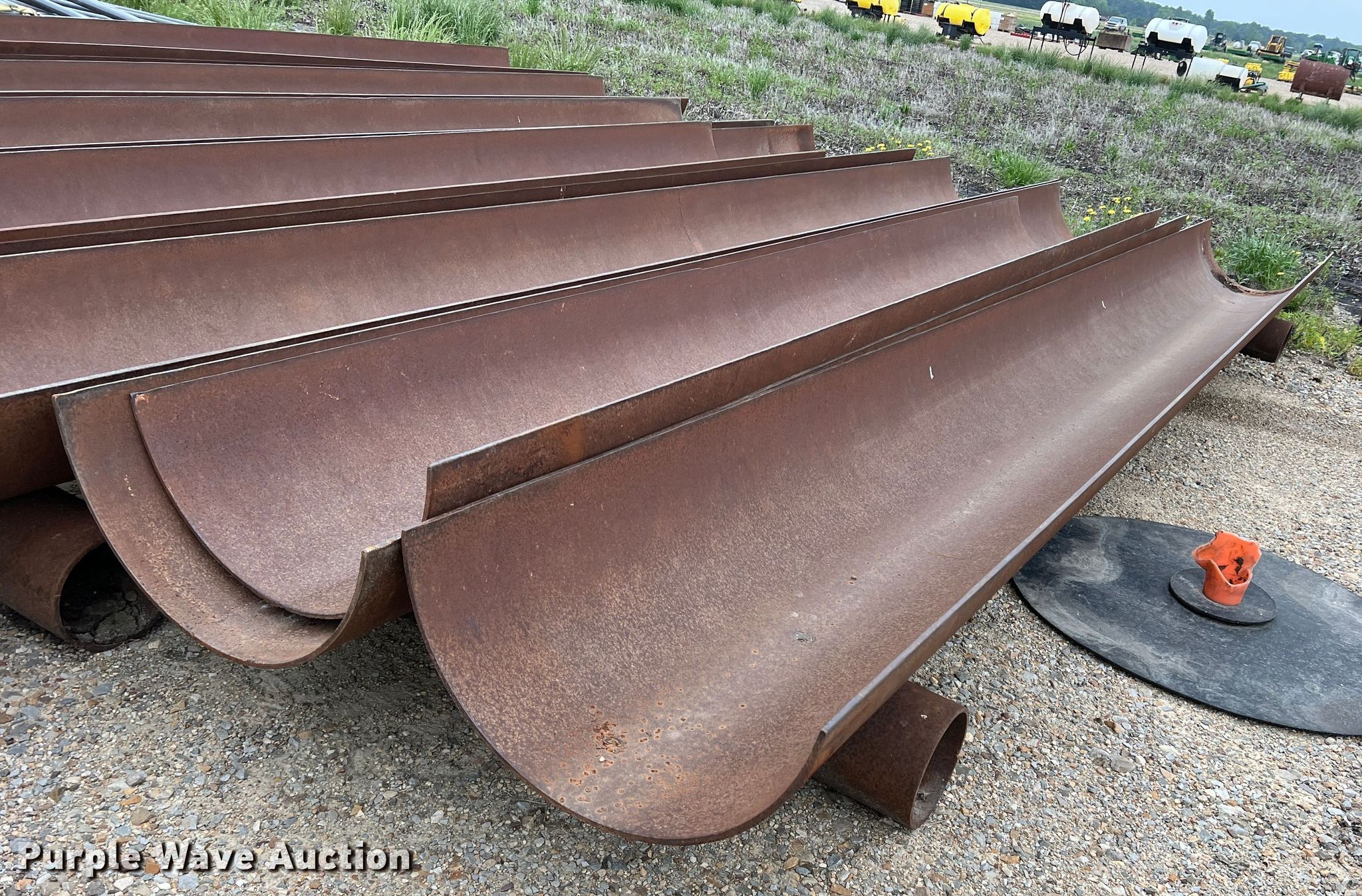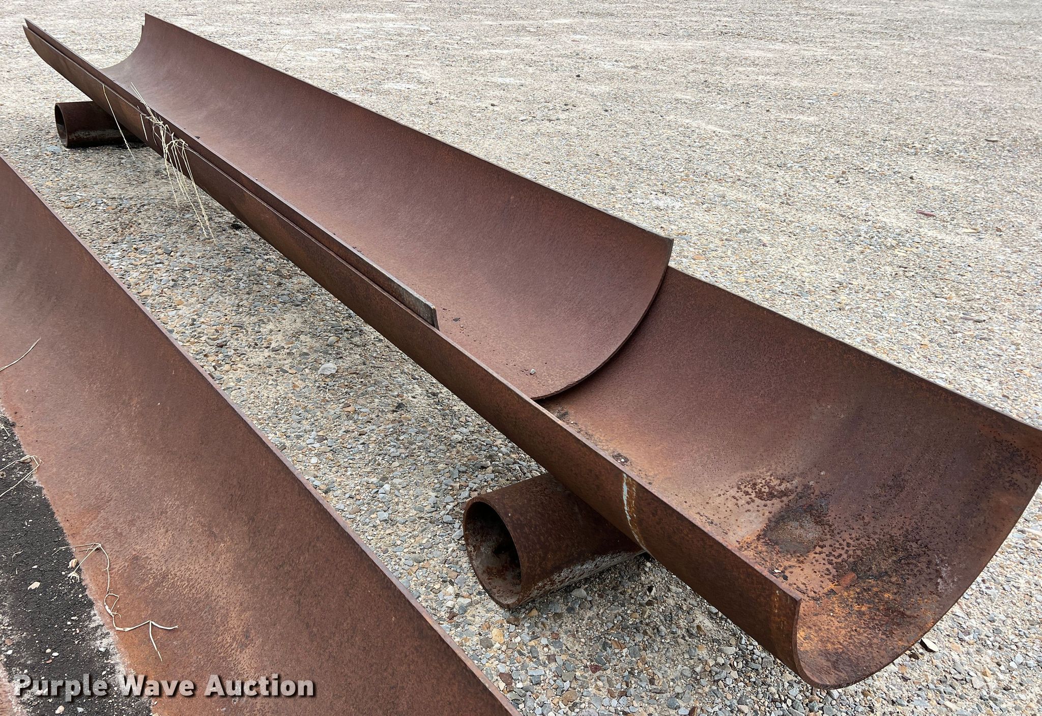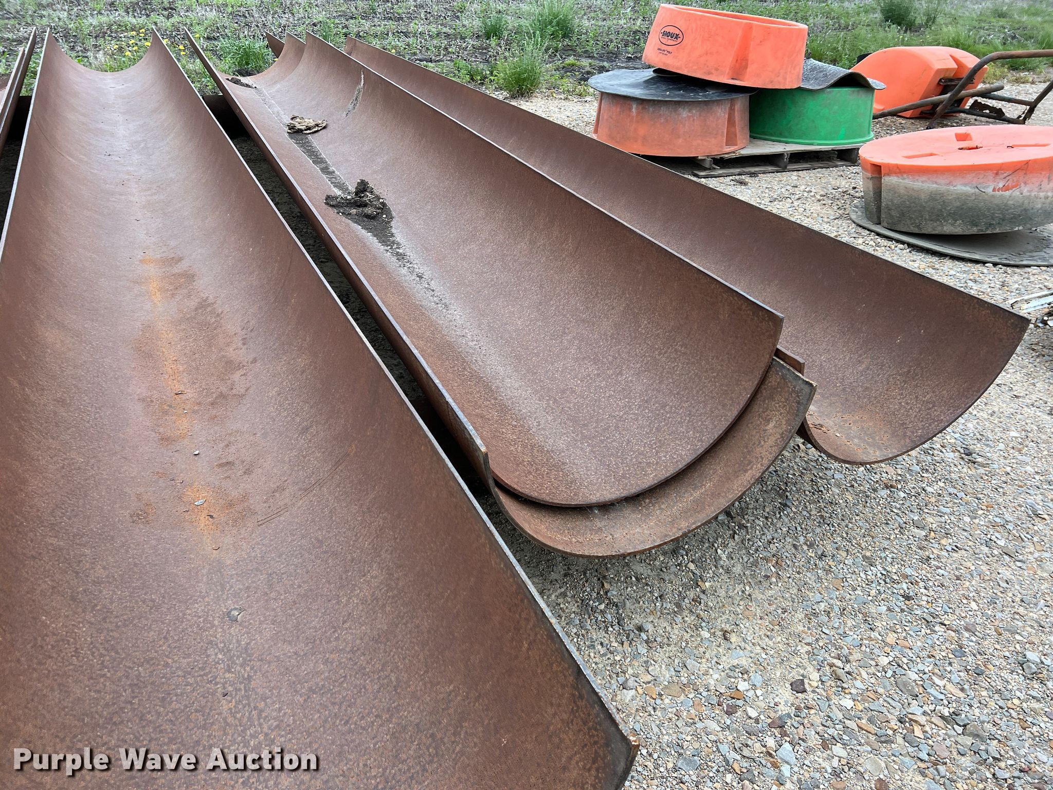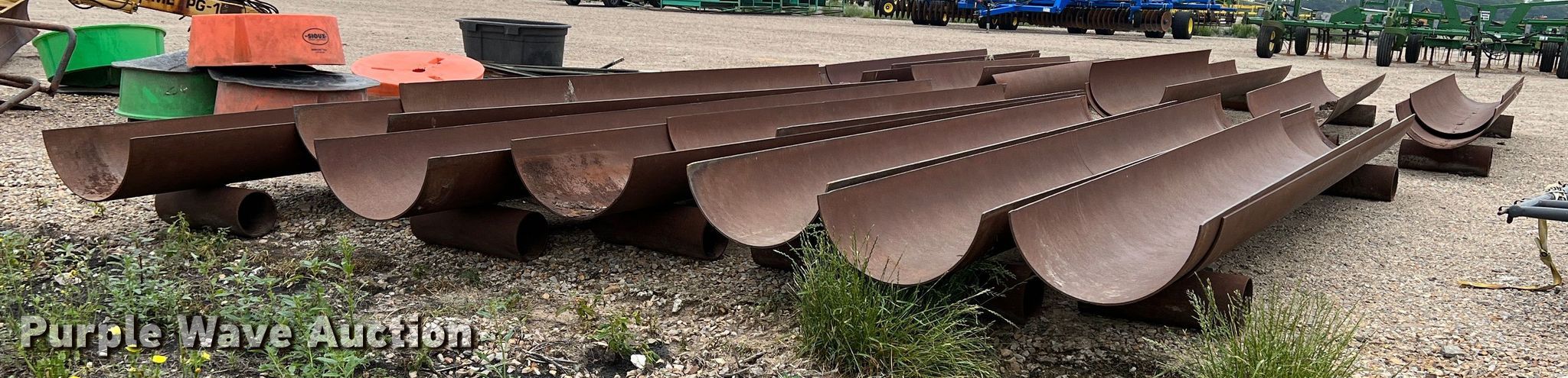Purple Wave is selling a used Livestock Equip. in Texas. This item is a (11) feed troughs with the following: Approx. 16'L x 26" diameter, Additional pipe