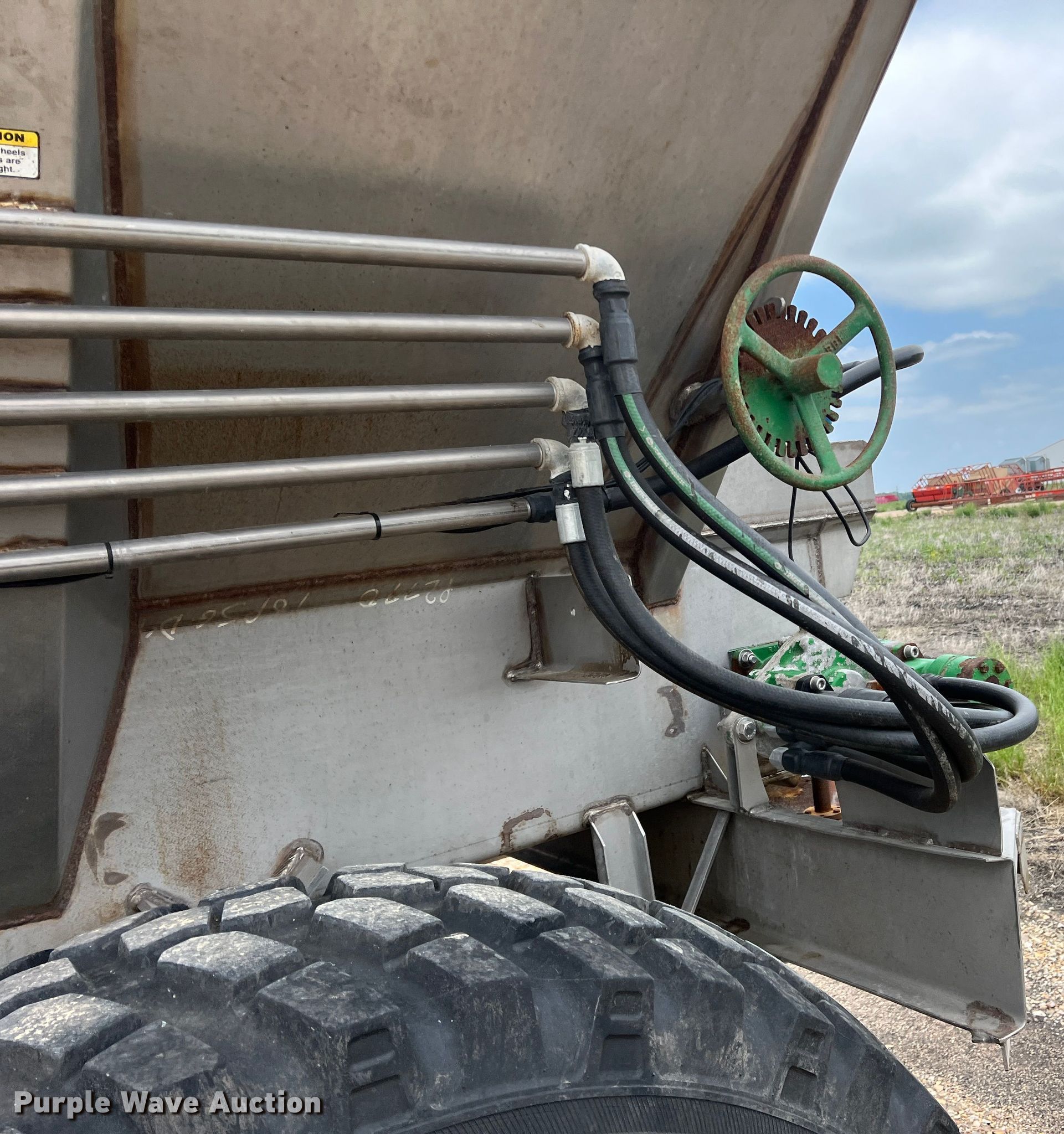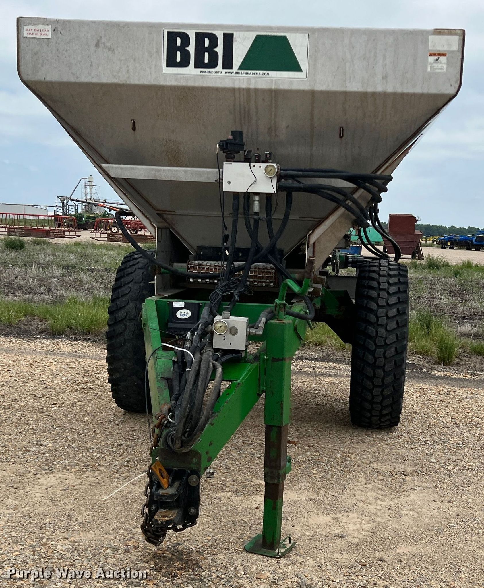 Barron & Brothers MagnaSpread spreader. Serial: P2770. Features Stainless steel, Dual spinners Diameter: 24", Chain conveyor Width: 20". Tires Size: 440/80R28, Row crop tires. PPF - Open Inspection June 19 and 26. 700 FM 1335. Cooper, TX 75432