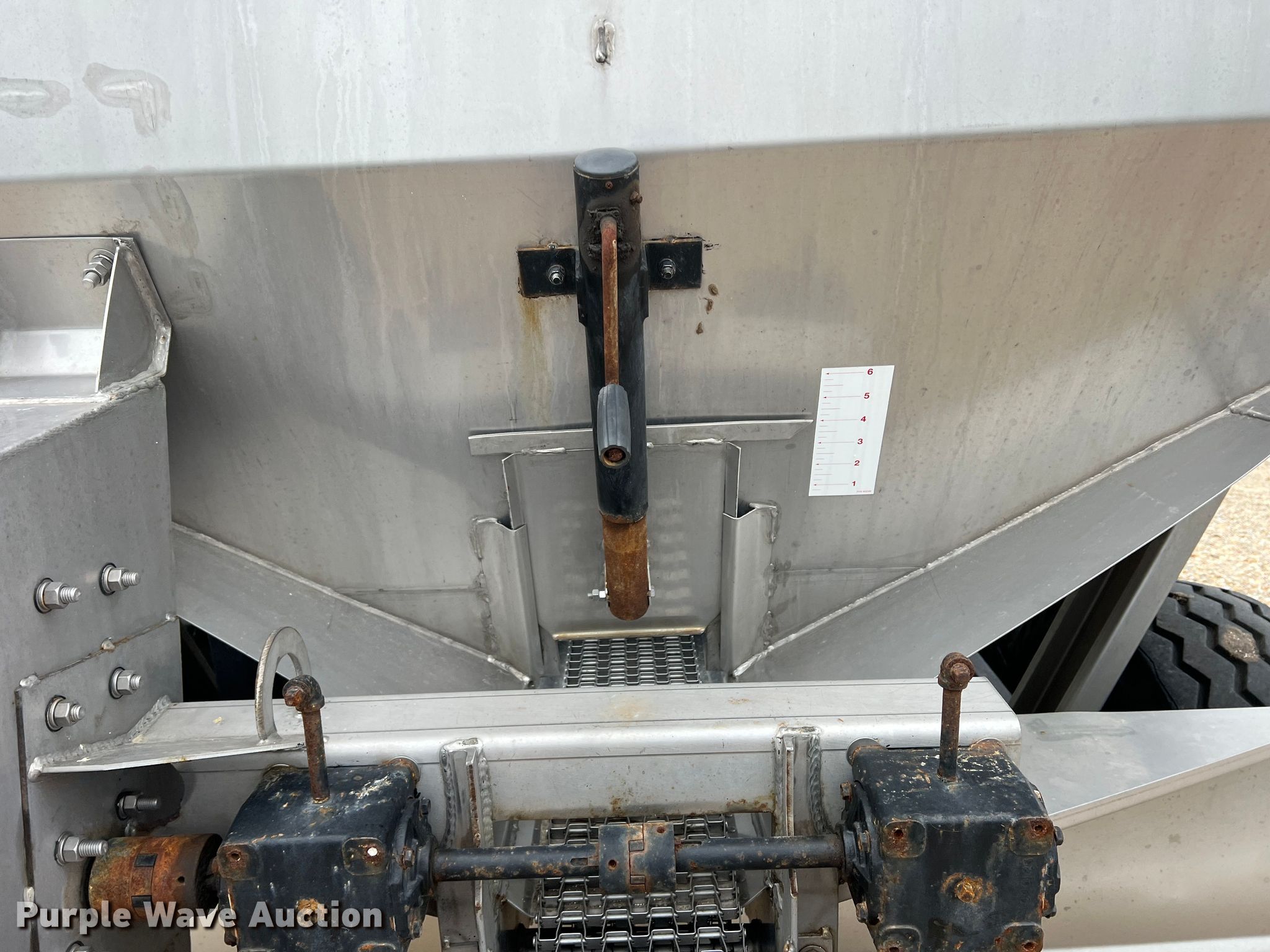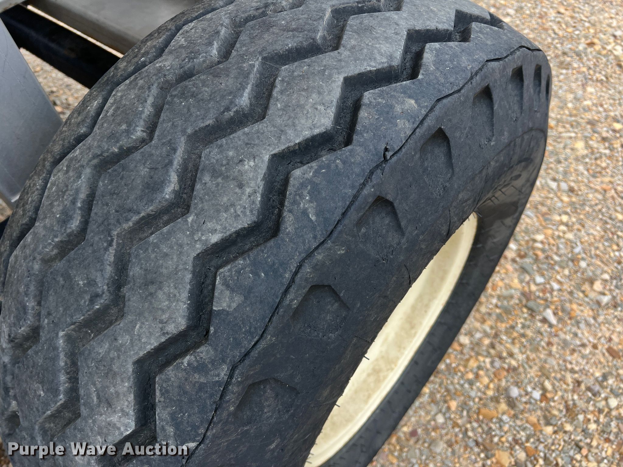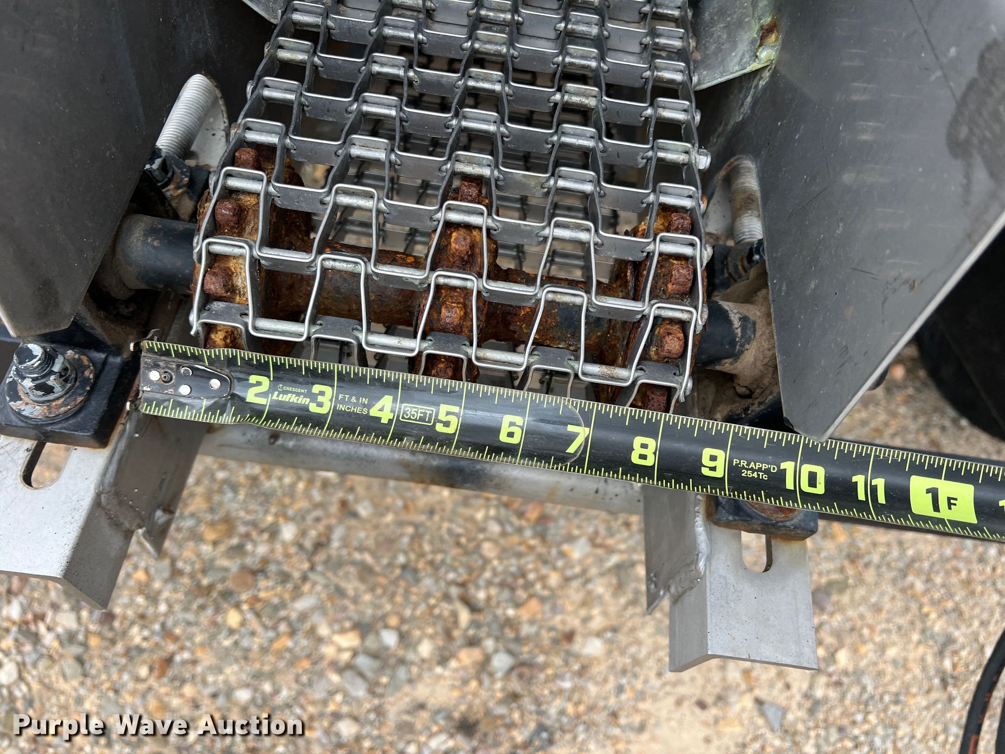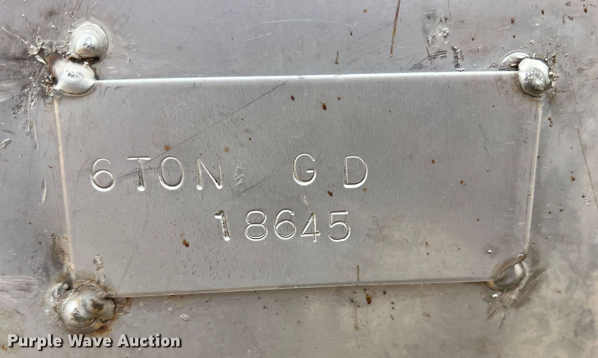Adams spreader. Serial: 18645. Features Tons capacity: 6, Stainless steel, Dual spinners Diameter: 20", Roll tarp, Chain conveyor Width: 8". Tires Size: 14.5/75-16. PPF - Open Inspection June 19 and 26. 700 FM 1335. Cooper, TX 75432