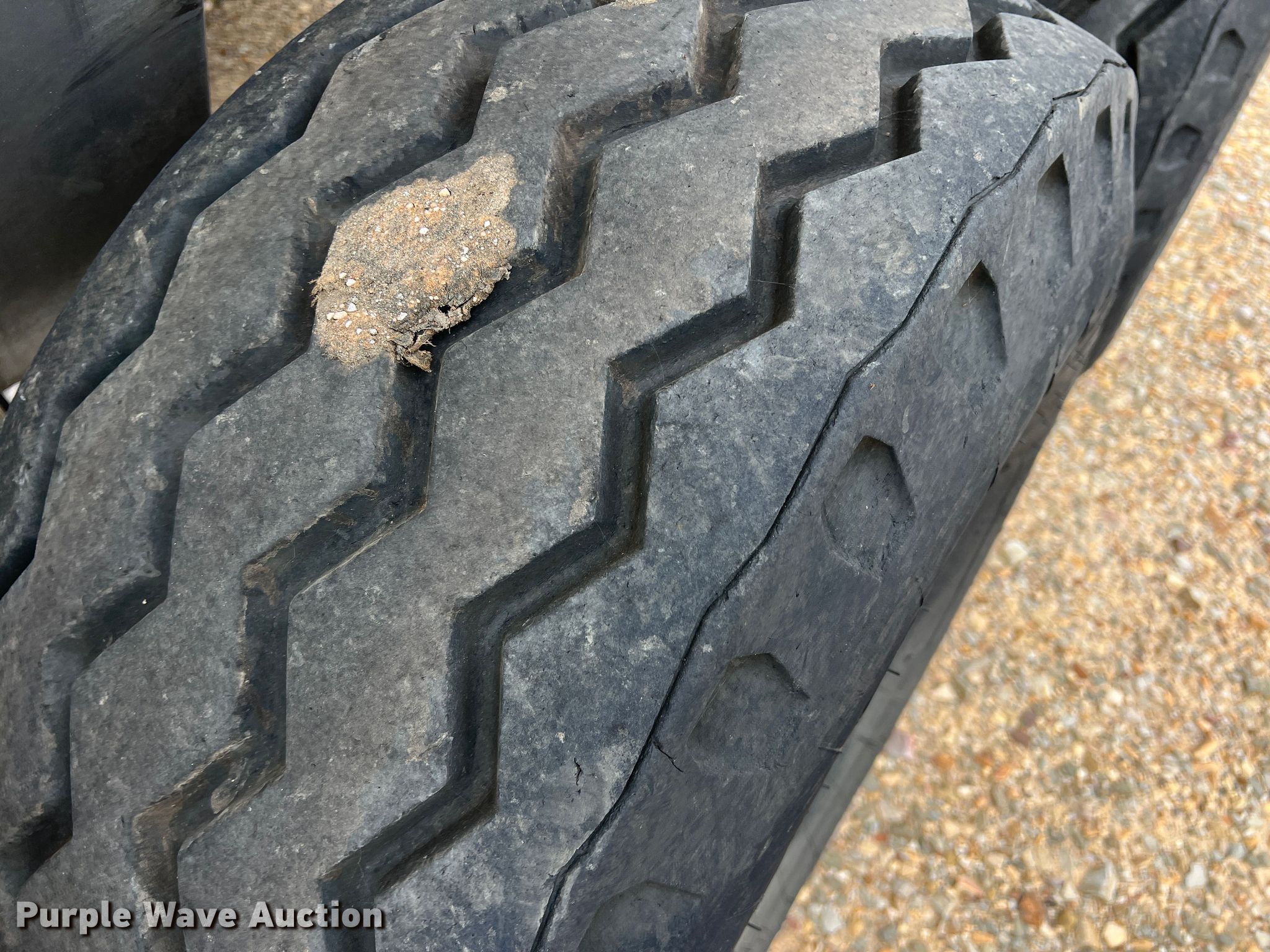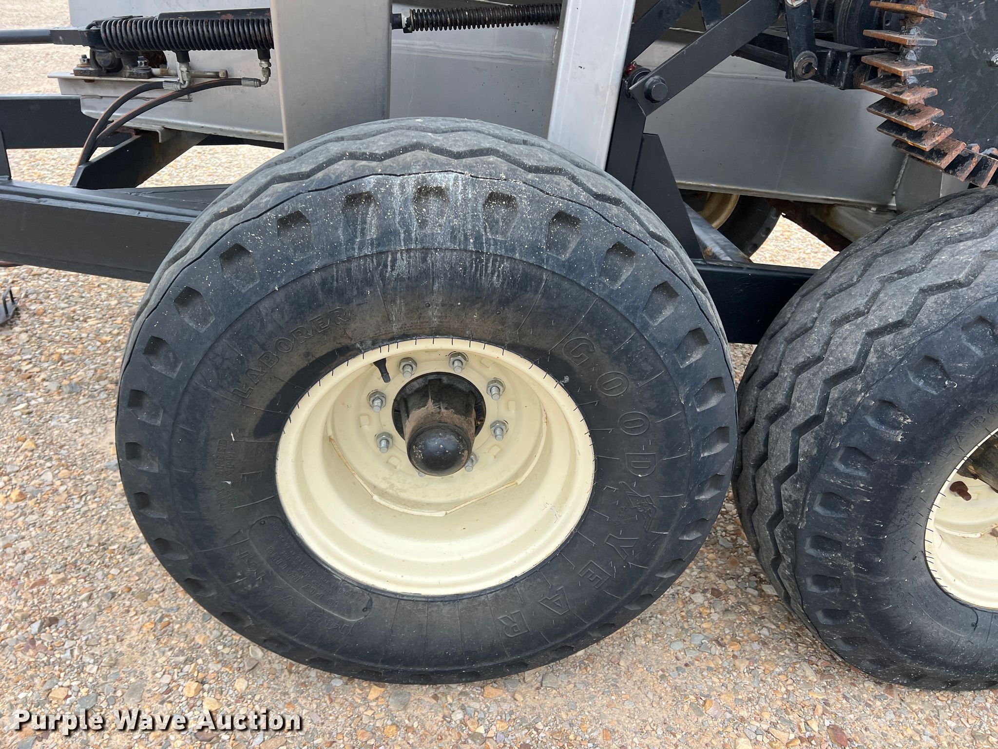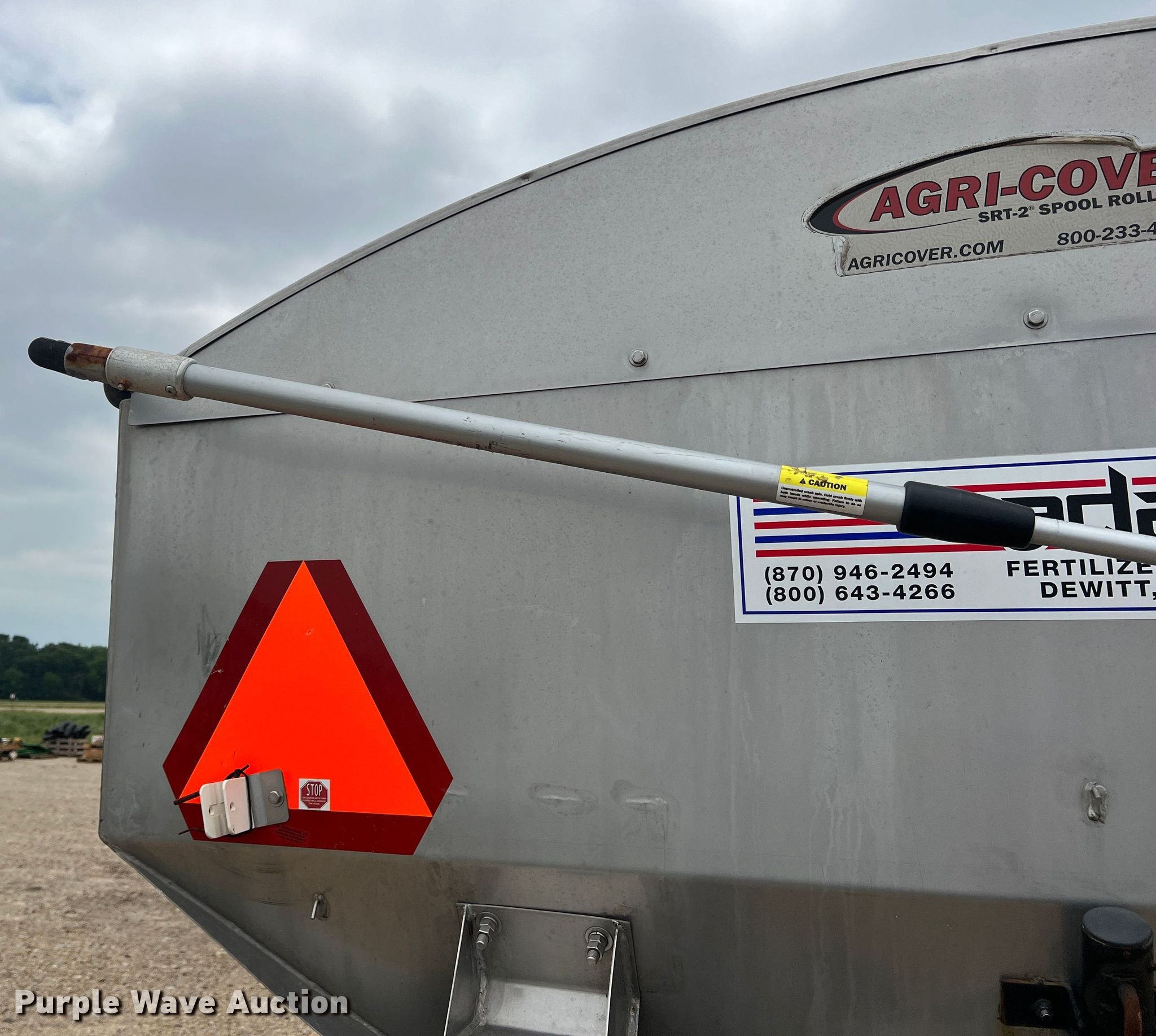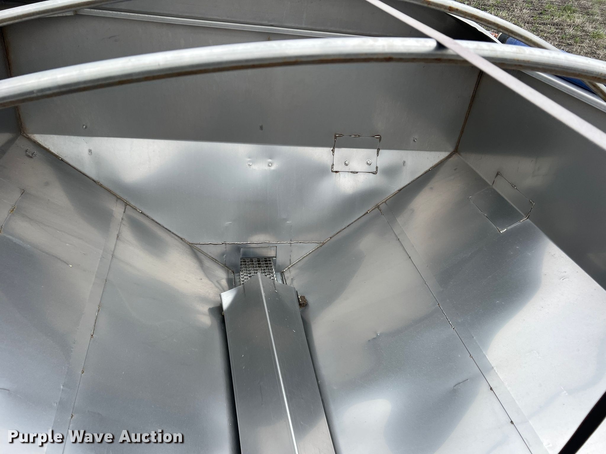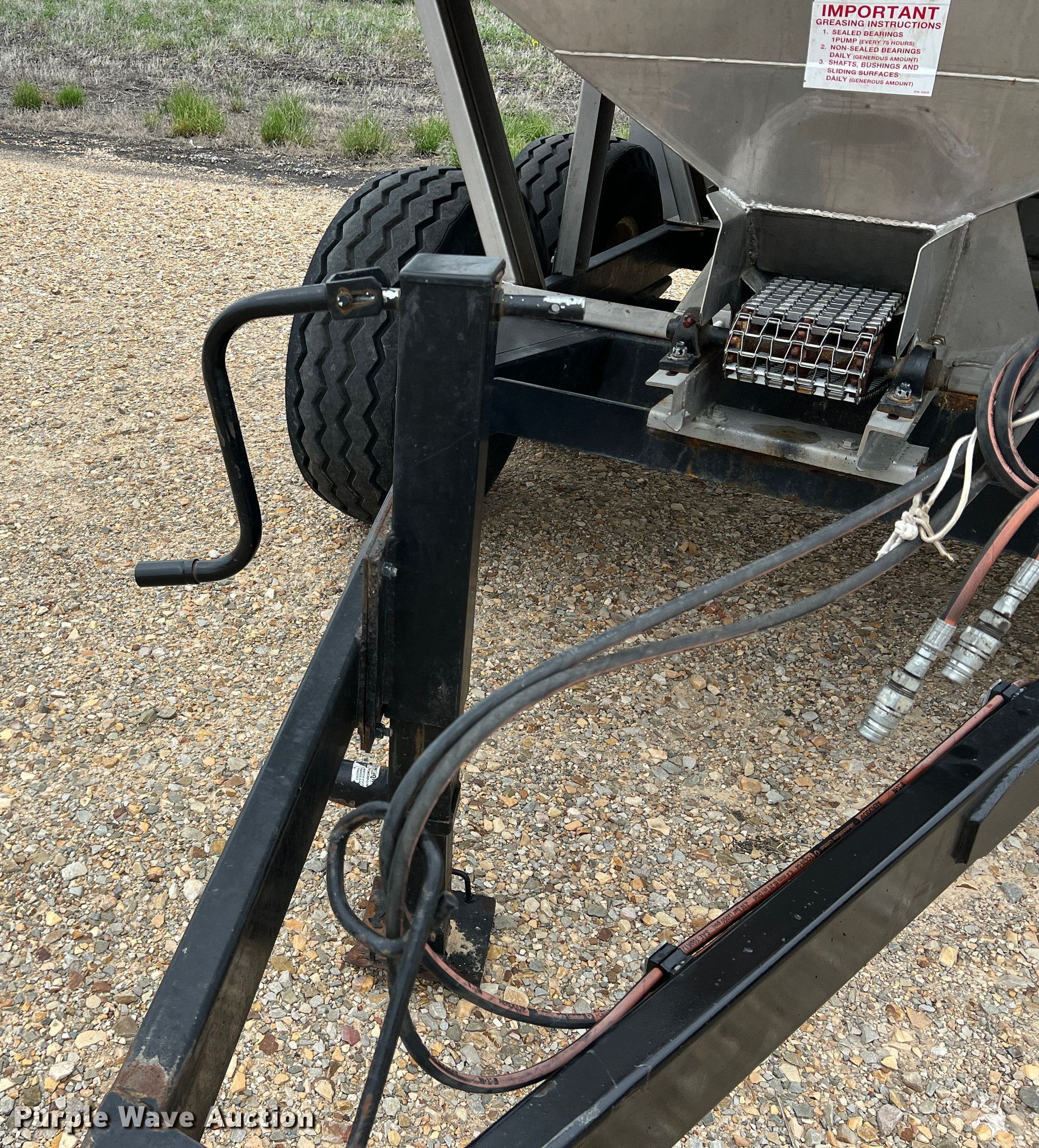 Adams spreader. Serial: 18645. Features Tons capacity: 6, Stainless steel, Dual spinners Diameter: 20", Roll tarp, Chain conveyor Width: 8". Tires Size: 14.5/75-16. PPF - Open Inspection June 19 and 26. 700 FM 1335. Cooper, TX 75432