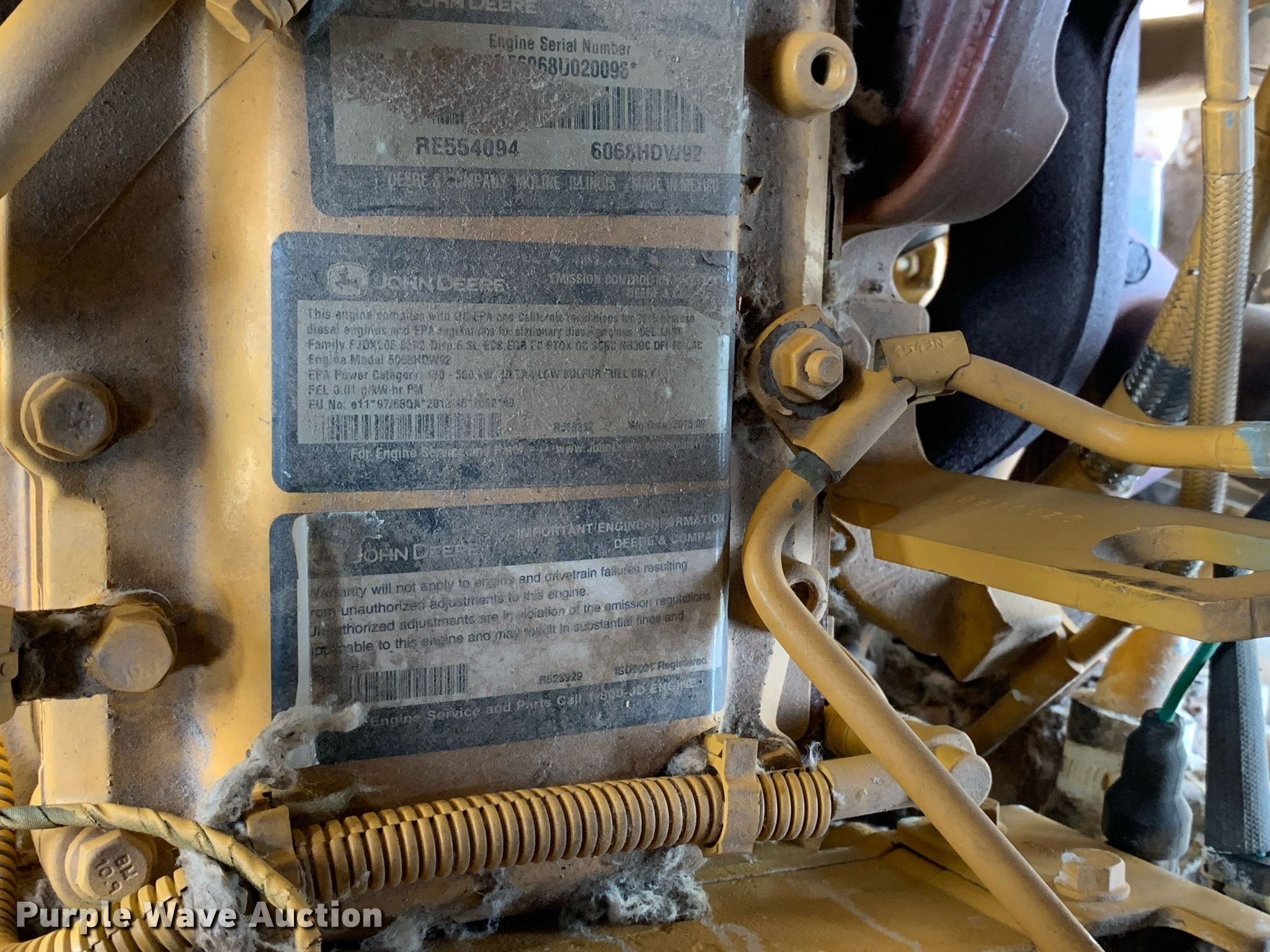 2016 John Deere 544K wheel loader. Hours: 4,872 on meter, Miles or hours may vary, unit still in use, Serial: 1DW544KZCFF673148. Engine John Deere, Cylinders: 6, Fuel type: Diesel. Transmission Powershift, 4F - 3R. Chassis Differential lock: Front, Rear. Operators station EROPS, AC, Heat, Bucket controls: Joystick. Features Auxiliary hydraulics: Front, Quick coupler: Hydraulic, Bucket John Deere AT340353-544, Capacity: 3 cu.yd., Width: 104", Cutting edge: Bolt-on. Tires Size: 20.5R25. Item will be utilized during the removal process. Item will be available for load-out beginning July 13. PPF - Open Inspection June 19 and 26. 700 FM 1335. Cooper, TX 75432