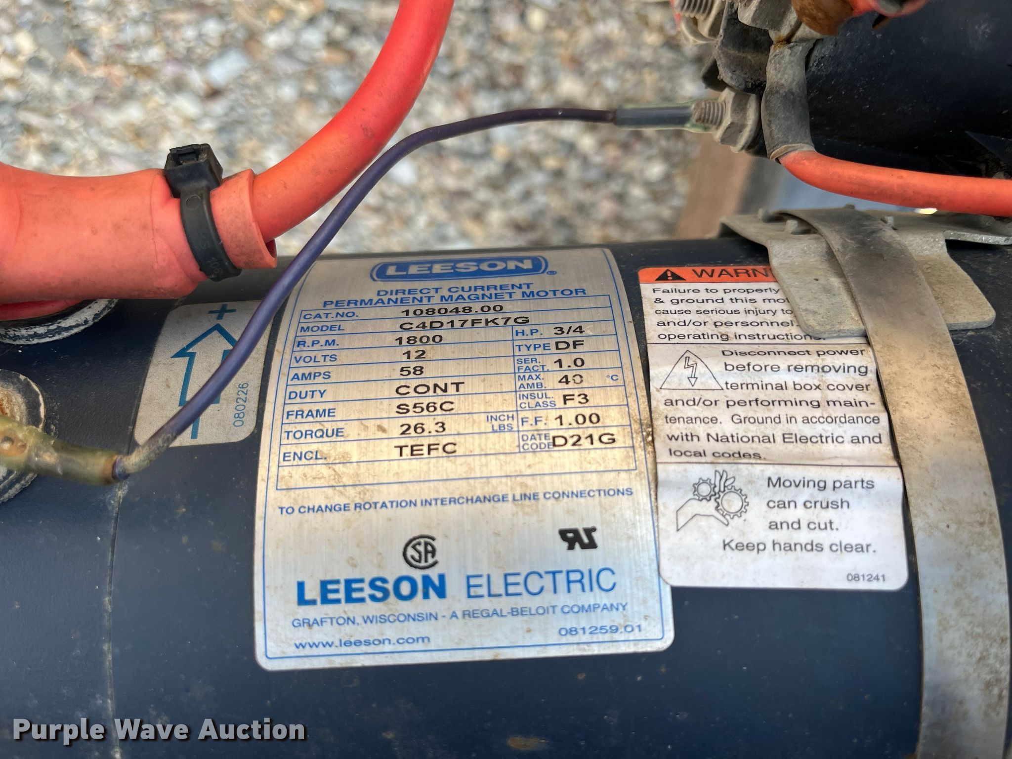 DewEze Beefcake 2000 ELE cake feeder. Dimensions: 80" L x 42" W, Serial: BC2000E 18A27. Electric Motor Leeson C4D17FK7G, Volts: 12. PPF - Open Inspection June 19 and 26. 700 FM 1335. Cooper, TX 75432