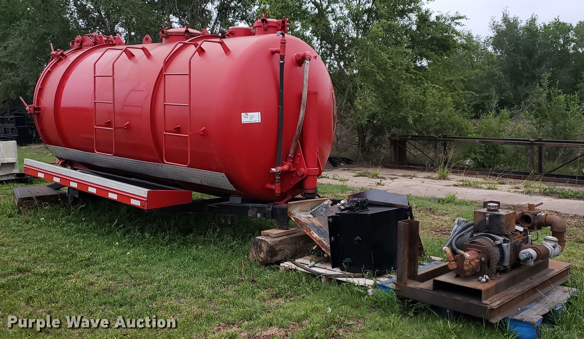 Purple Wave is selling a used Truck Part and Attach. in Kansas. This item is a Vacuum tank bed with the following: Bed dimensions: 17' L x 102" W, Tank dimensions: 14' L x 80" diameter, Outlet: 8", Muncie Power Products pump, Serial: N097-7088, Unknown operating condition