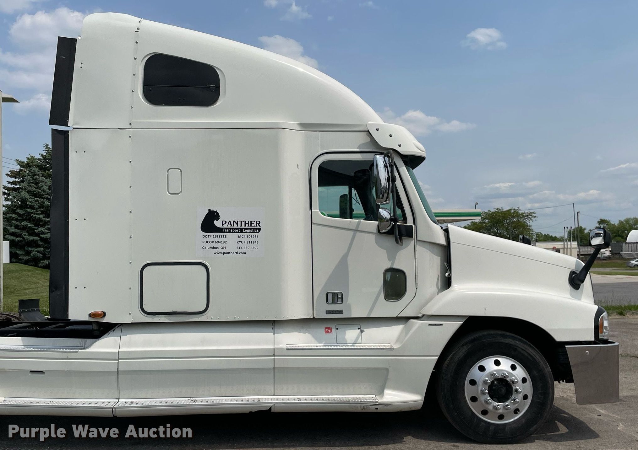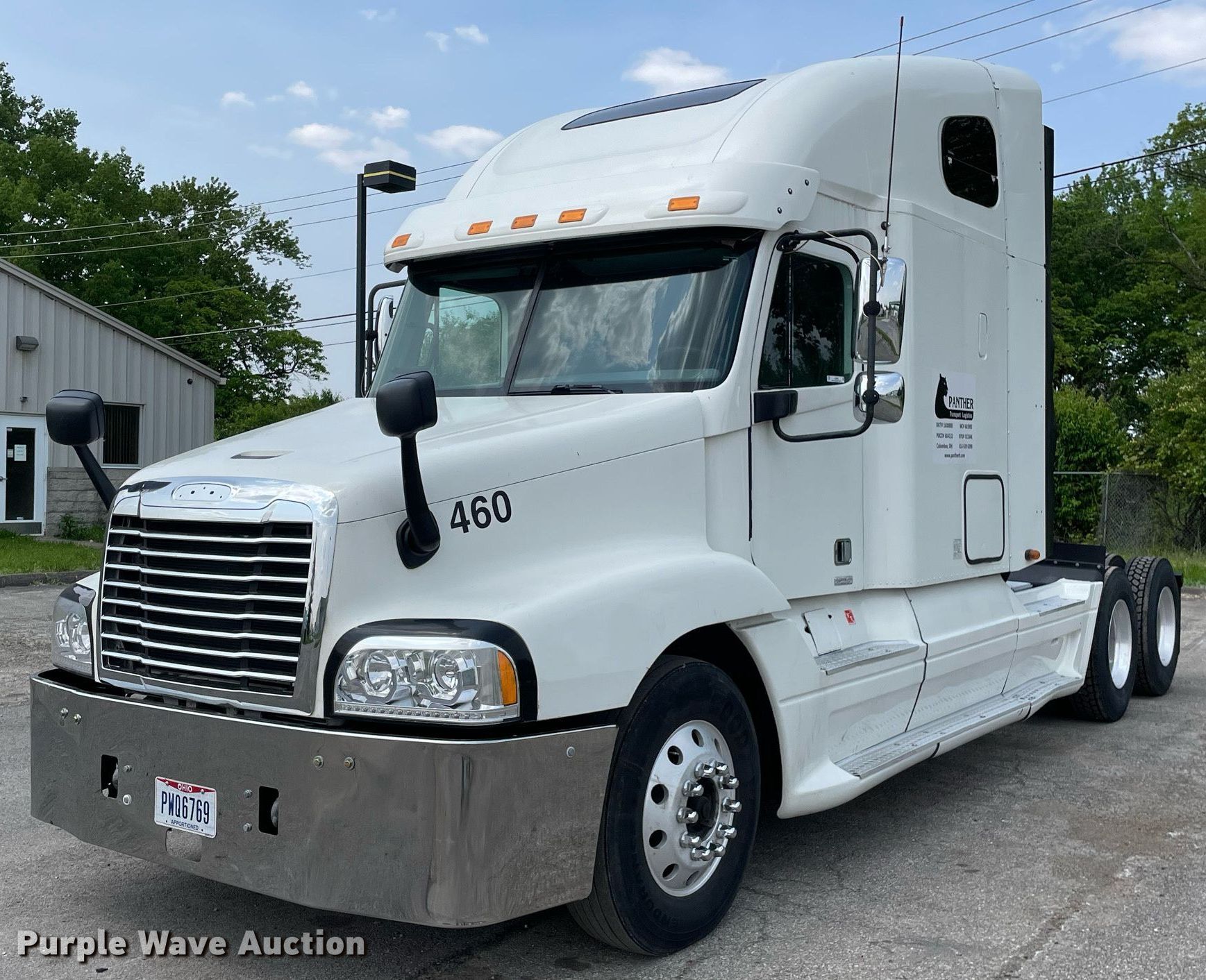2004 Freightliner Century Class semi truck. Miles: 504,693 on odometer, VIN: 1FUJBBCG84LM93247, Unit #: 460. Engine Detroit Diesel Series 60, Displacement: 12.7L, Cylinders: 6, Fuel type: Diesel, Engine brake. Transmission Eaton Fuller, Manual, Speed: 10. Chassis Axles: Tandem, Differential lock: Inter-axle, Suspension: Air Dump valves, Brakes: Air. Interior AC, Heat, Heated mirrors, Power windows, Cruise control, Air ride cab, Sleeper Sleeper length: 60", Beds: Double bunk, Refrigerator, Rear climate control. Features Fifth wheel type: Air operated, Sliding, Fuel tank: Dual. Tires Size: 295/75R22.5. Ohio title. Title distribution may be delayed up to 14 days from verification of funds. Panther Transport Logistics - Open Inspection June 27. 3600 Enterprise Avenue. Columbus, OH 43228