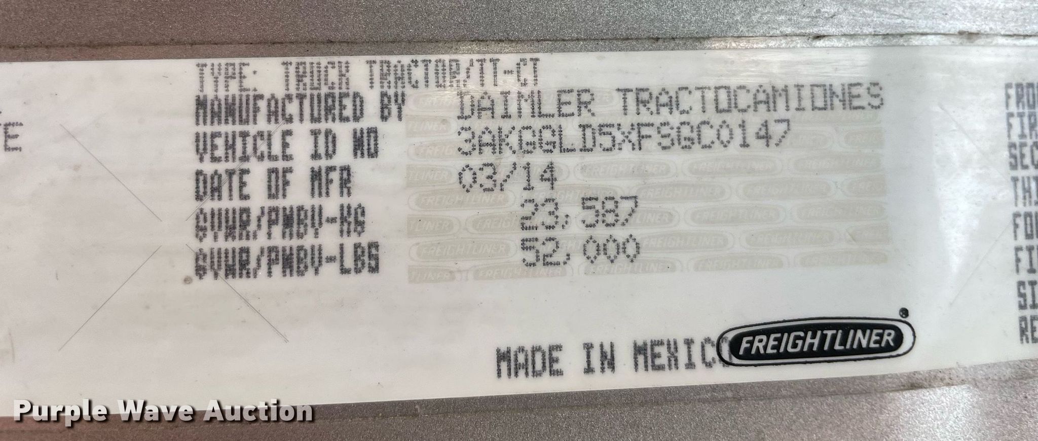 Purple Wave is selling a used Truck Tractor in Ohio. This item is a 2015 Freightliner Cascadia 125 semi truck with the following: Miles: 640,105 on odometer, VIN: 3AKGGLD5XFSGC0147, Unit #: 421