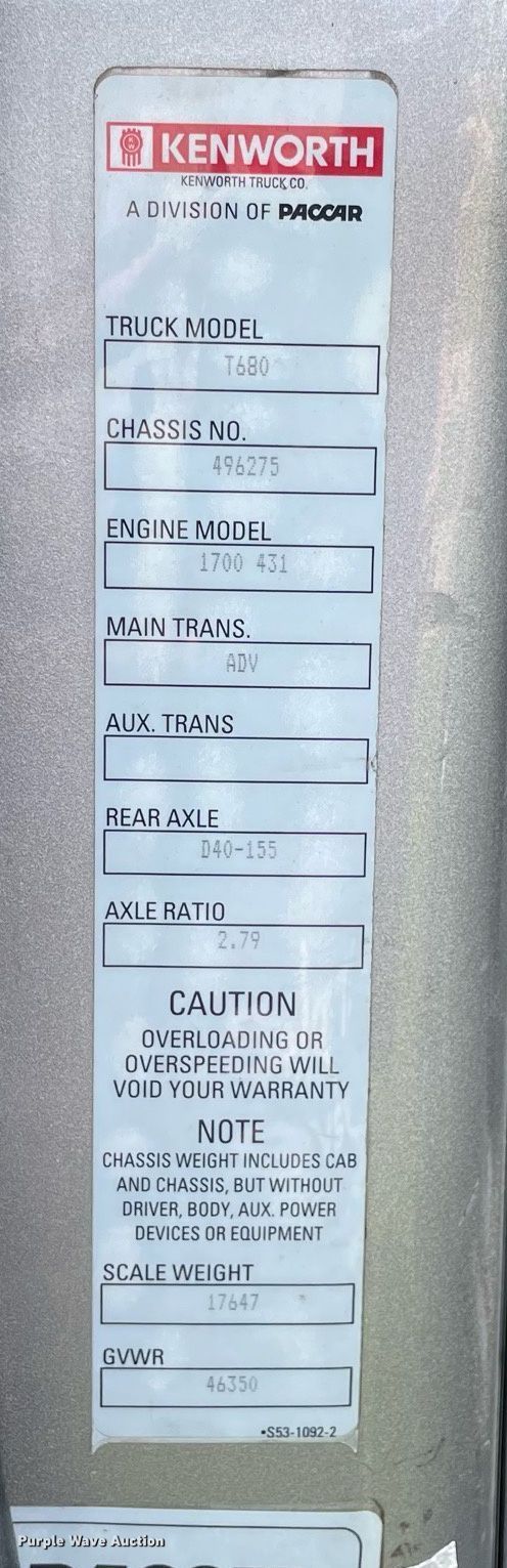 Purple Wave is selling a used Truck Tractor in Ohio. This item is a 2016 Kenworth T680 semi truck with the following: Miles: 547,235 on odometer, Hours: 16,595 on meter, VIN: 1XKYDP8X3GJ496275, Unit #: 467