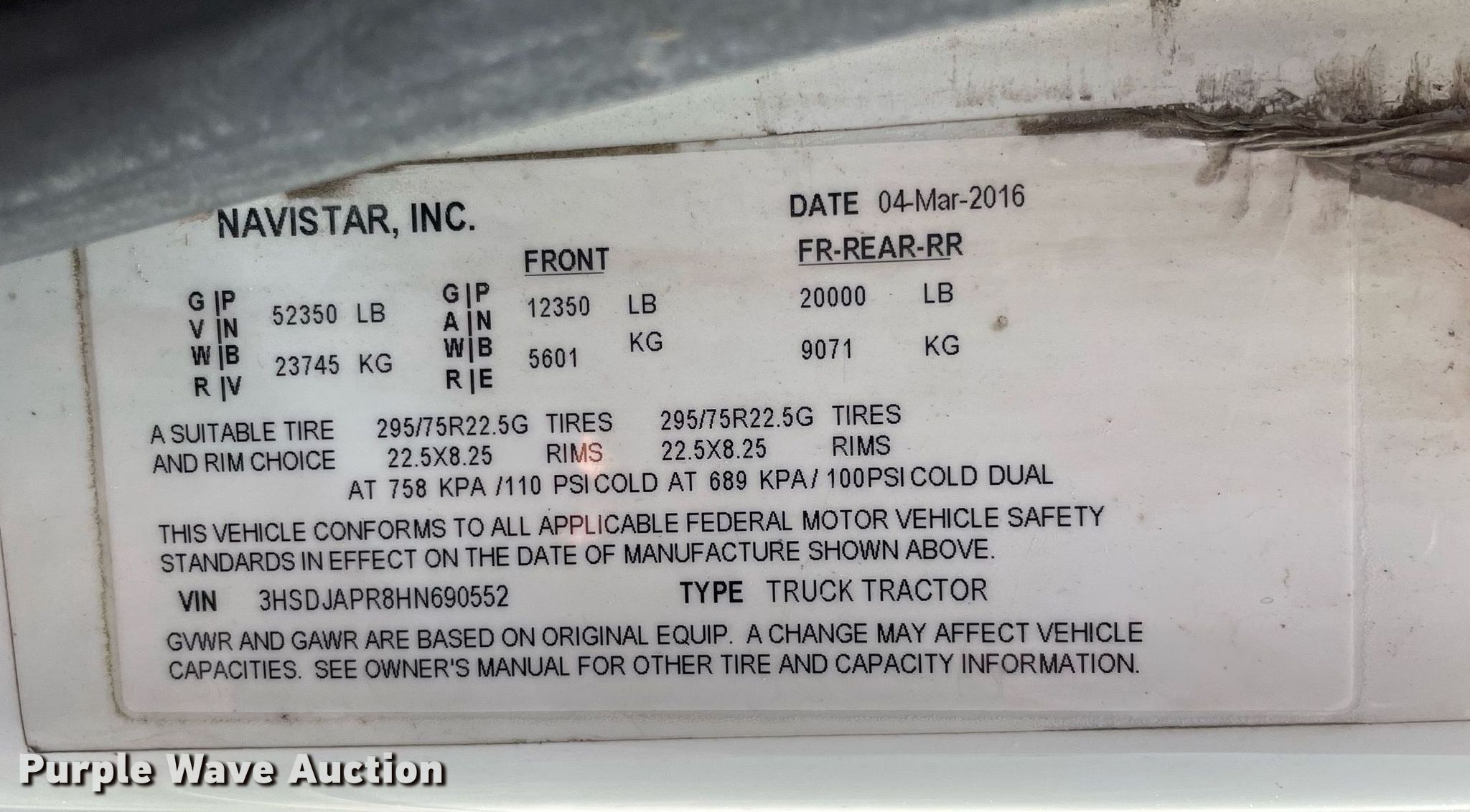 Purple Wave is selling a used Truck Tractor in Ohio. This item is a 2016 International ProStar Plus 122 semi truck with the following: Miles: 598,363 on odometer, Hours: 15,694 on meter, VIN: 3HSDJAPR8HN690552
