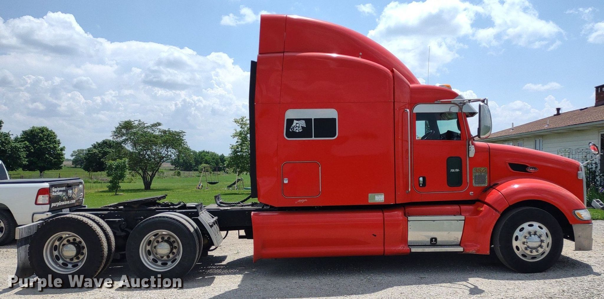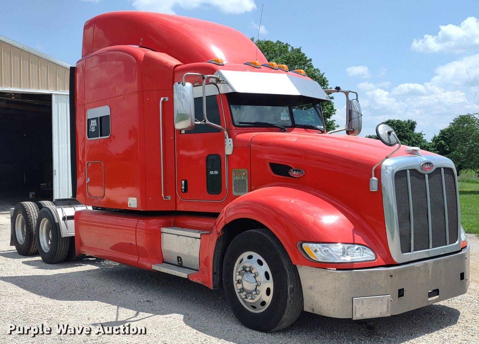 Purple Wave is selling a used Truck Tractor in Kansas. This item is a 2013 Peterbilt 386 semi truck with the following: Miles: 953,178 on odometer, Hours: 26,296 on meter, VIN: 1XPHD49X1DD207377