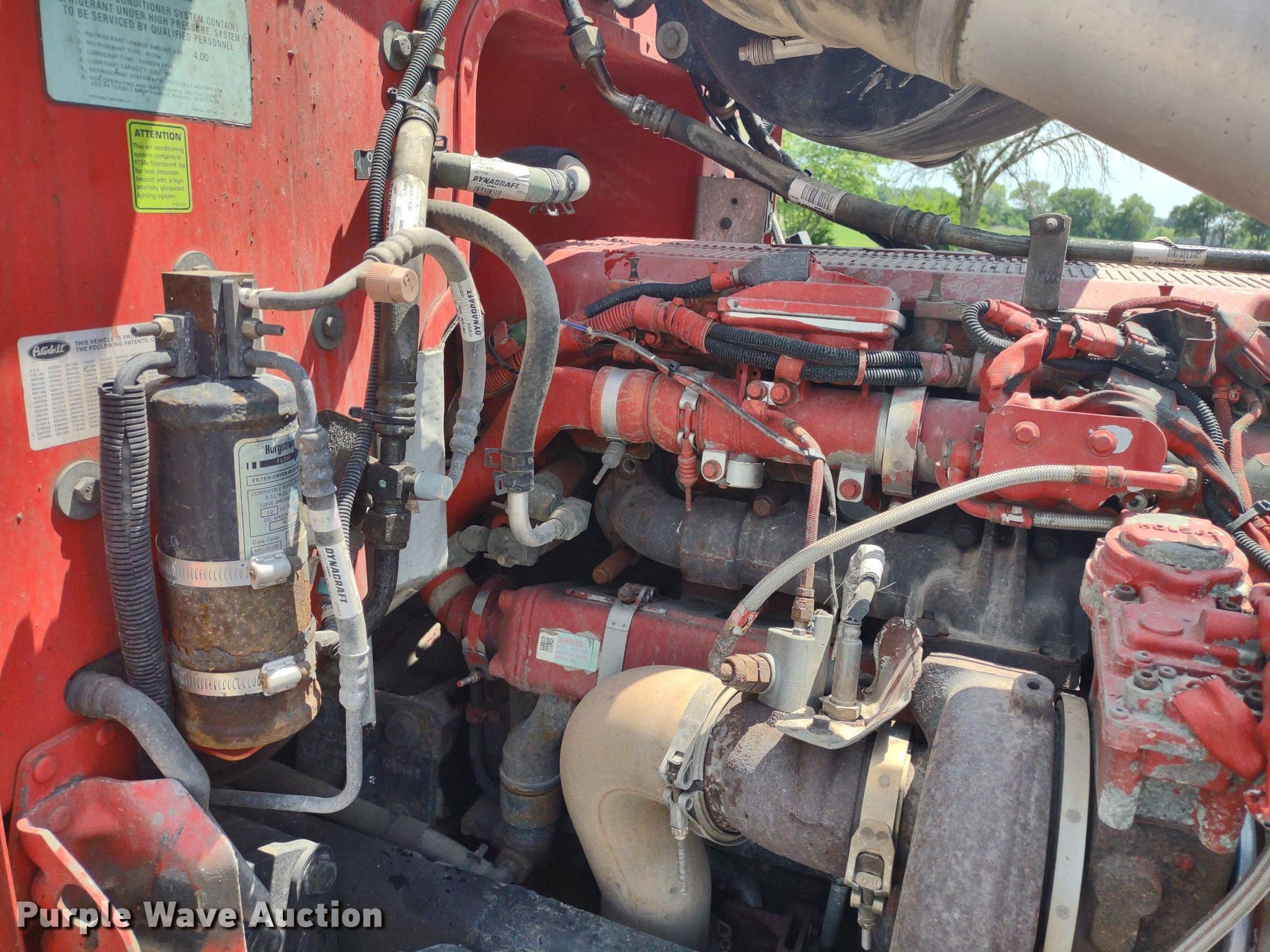 2013 Peterbilt 386 semi truck. Miles: 953,178 on odometer, Hours: 26,296 on meter, VIN: 1XPHD49X1DD207377. Engine Cummins ISX15, Displacement: 14.9L, Cylinders: 6, Fuel type: Diesel. Transmission Eaton Fuller , Manual, Speed: 13. Chassis Axles: Tandem, Differential lock: Inter-axle, Suspension: Air, Brakes: Air, Truck chassis: 12', GVWR: 50,000 lbs FAWR: 12,000 lbs, IAWR: 19,000 lbs, RAWR: 19,000 lbs. Interior AC, Heat, Heated mirrors, Power windows, Power locks, Cruise control, Air ride cab, Sleeper Unibilt, Sleeper length: 6', Beds: Single, Refrigerator, Microwave, Rear climate control. Features Deck plate: Aluminum, Fifth wheel type: Air operated, Sliding, Fuel tank: Dual. Tires Size: 295/75R22.5. Notes Oil leak, EGR deleted , DEF deleted , DPF deleted. Kansas electronic title. Title has a lien that will be released following the close of the auction. A paper title will be printed once the lien is released. Title distribution may be delayed up to 30 days from verification of funds. Tbara Farms. 630 East 1100 Road. Baldwin City, KS 66006