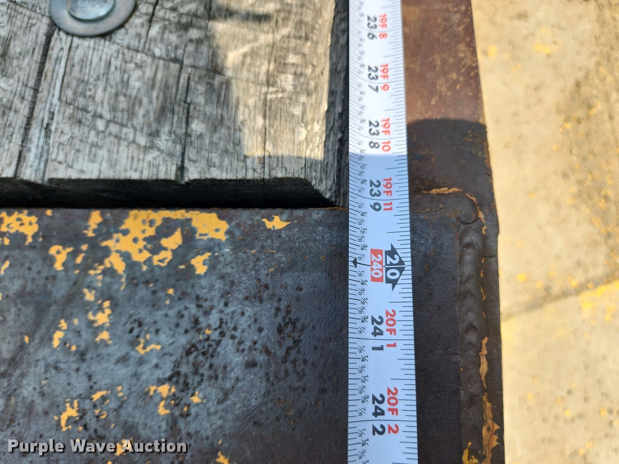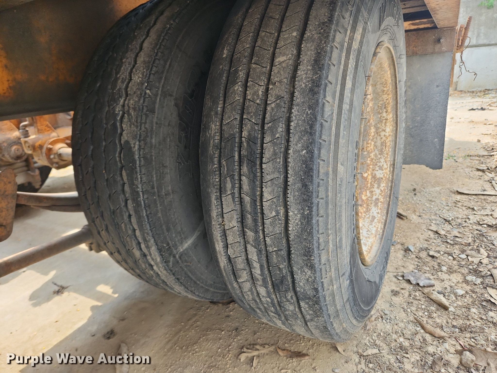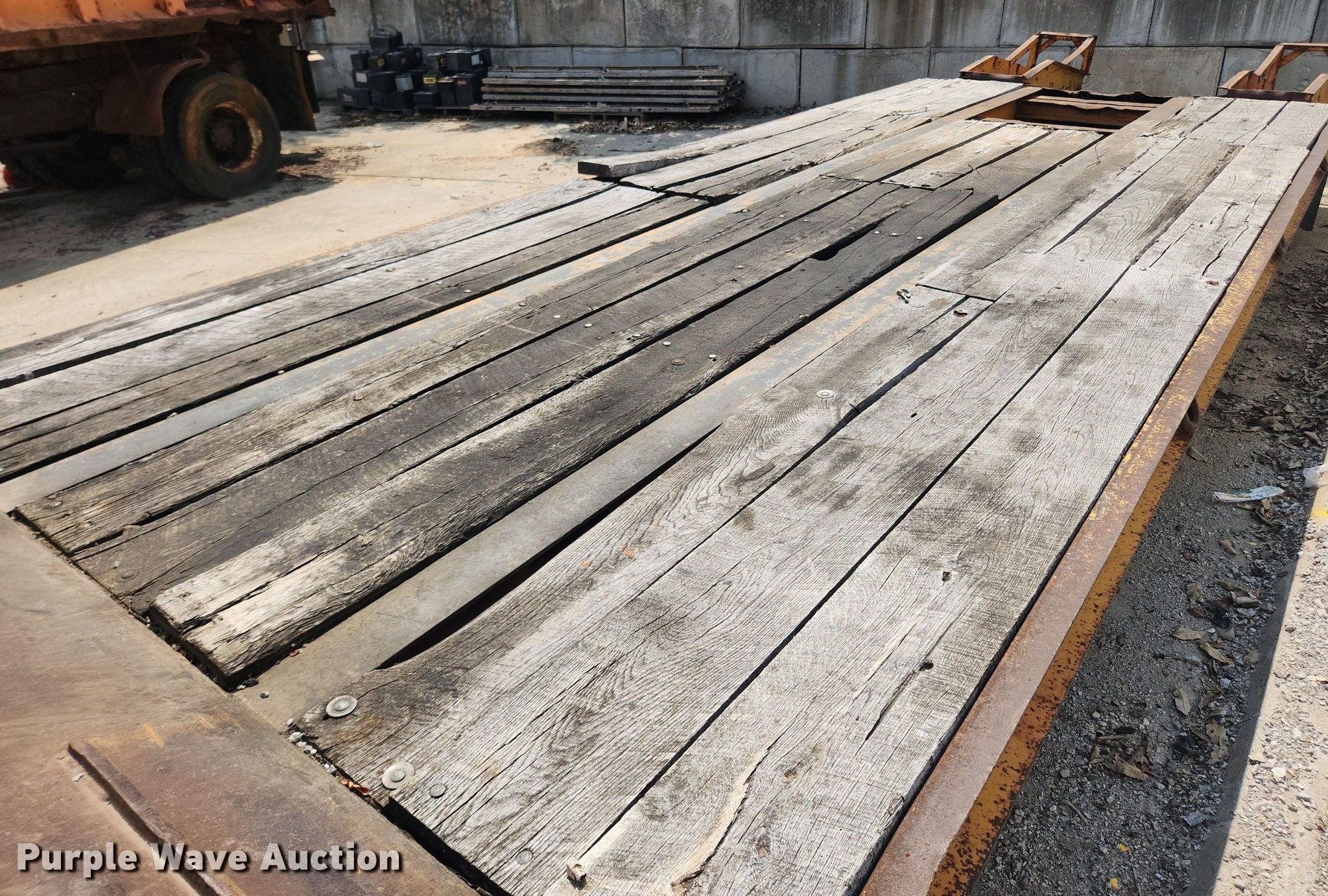 2004 Kaufman drop deck equipment trailer. VIN: 15XFR382X4L001015, Unit #: TL18. Dimensions Overall: 38' L x 102" W, Deck: 20' x 102" W, Top deck length: 9', Tail length: 5', Ramps: Manual Length: 5'. Features Deck type: Wood. Chassis Landing gear: Dual, Suspension: Spring, Brakes: Air, Axles: Tandem, GVWR: 70,000 lbs, GAWR: 22,500 lbs. Tires Steel wheels, Size: 235/75R17. Notes Toolbox not included. Missouri title. Title distribution may be delayed up to 14 days from verification of funds. M&H Concrete Contractors Inc.. St. Peters, MO 63376