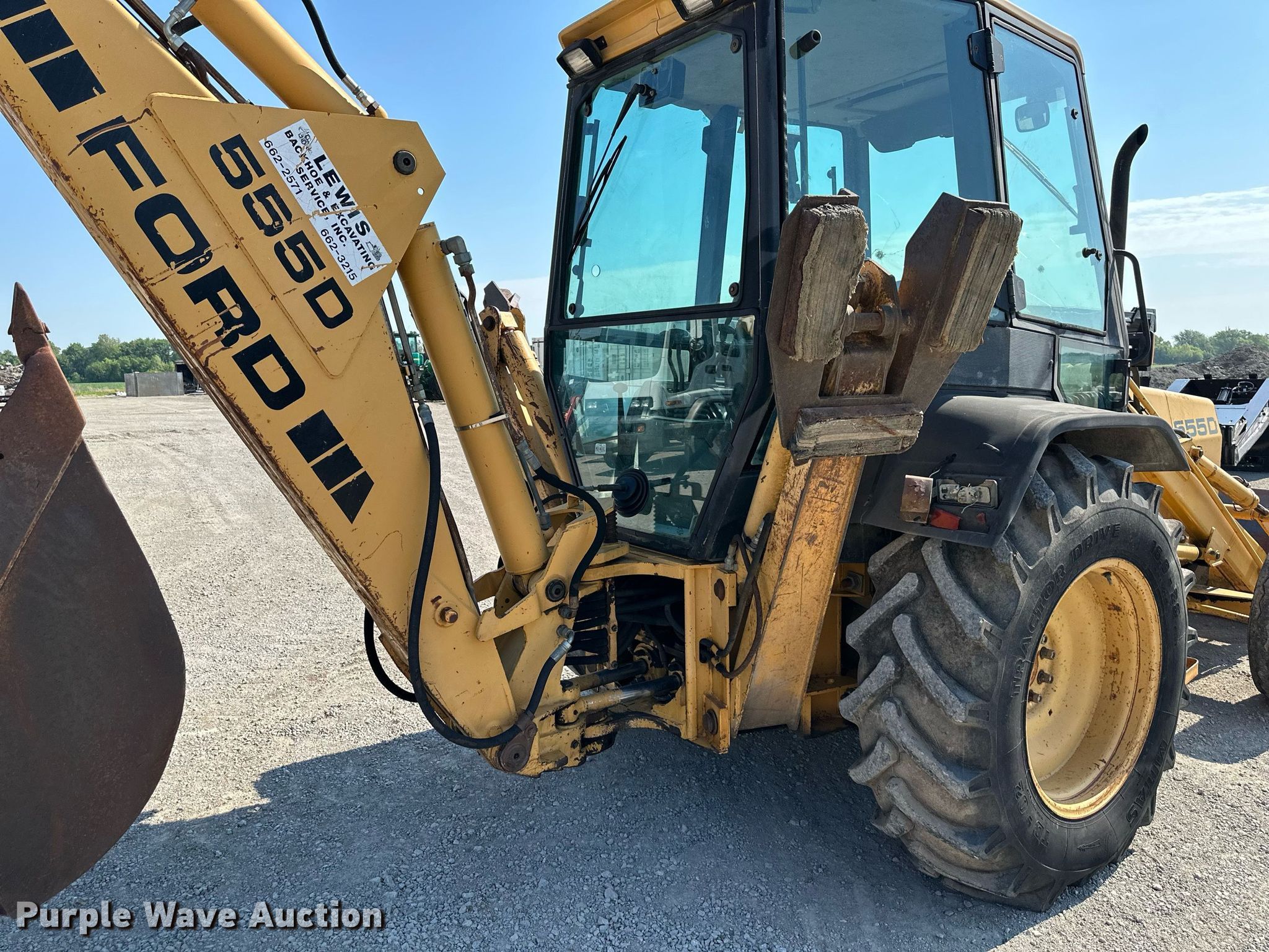 Ford 555D backhoe. Hours: 12,420 on meter, Serial: AB18946. Engine Ford, Cylinders: 4, Fuel type: Diesel. Transmission Shuttle shift, 4F - 4R. Operators station Enclosed cab, Heat, Backhoe controls: Four stick. Features Loader Bucket Width: 88", Cutting edge: Weld-on, Backhoe Extendable stick, Bucket Width: 23", Cutting edge: Weld-on, Teeth: 4.. Tires Front: 11L-16, Rear: 18.9-26. Lewis Backhoe & Excavating, Inc. - Open inspection June 16 and 28. 6645 Mitchell Road Southeast. Saint Joseph, MO 64507
