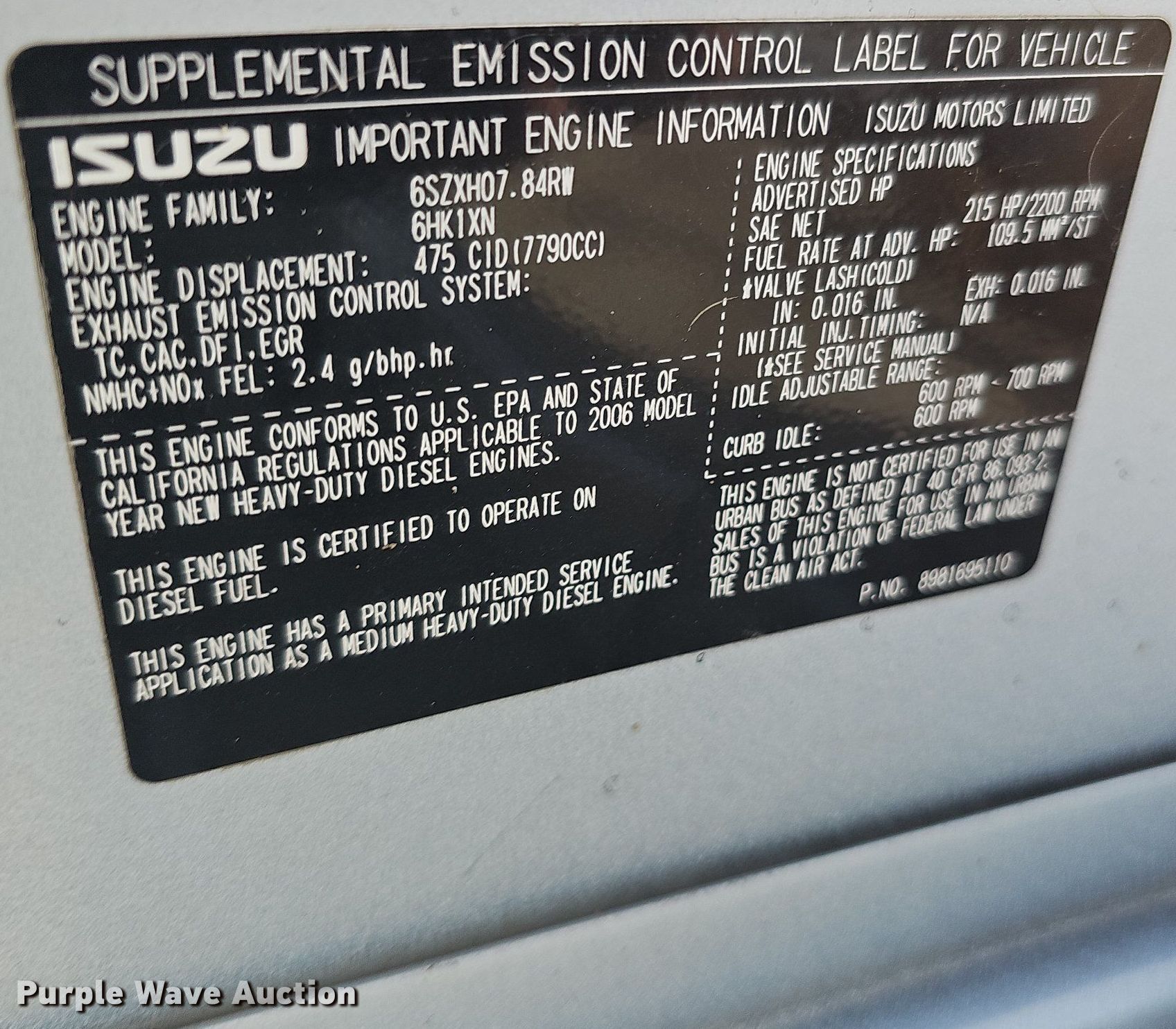 - Isuzu 6HK1XN