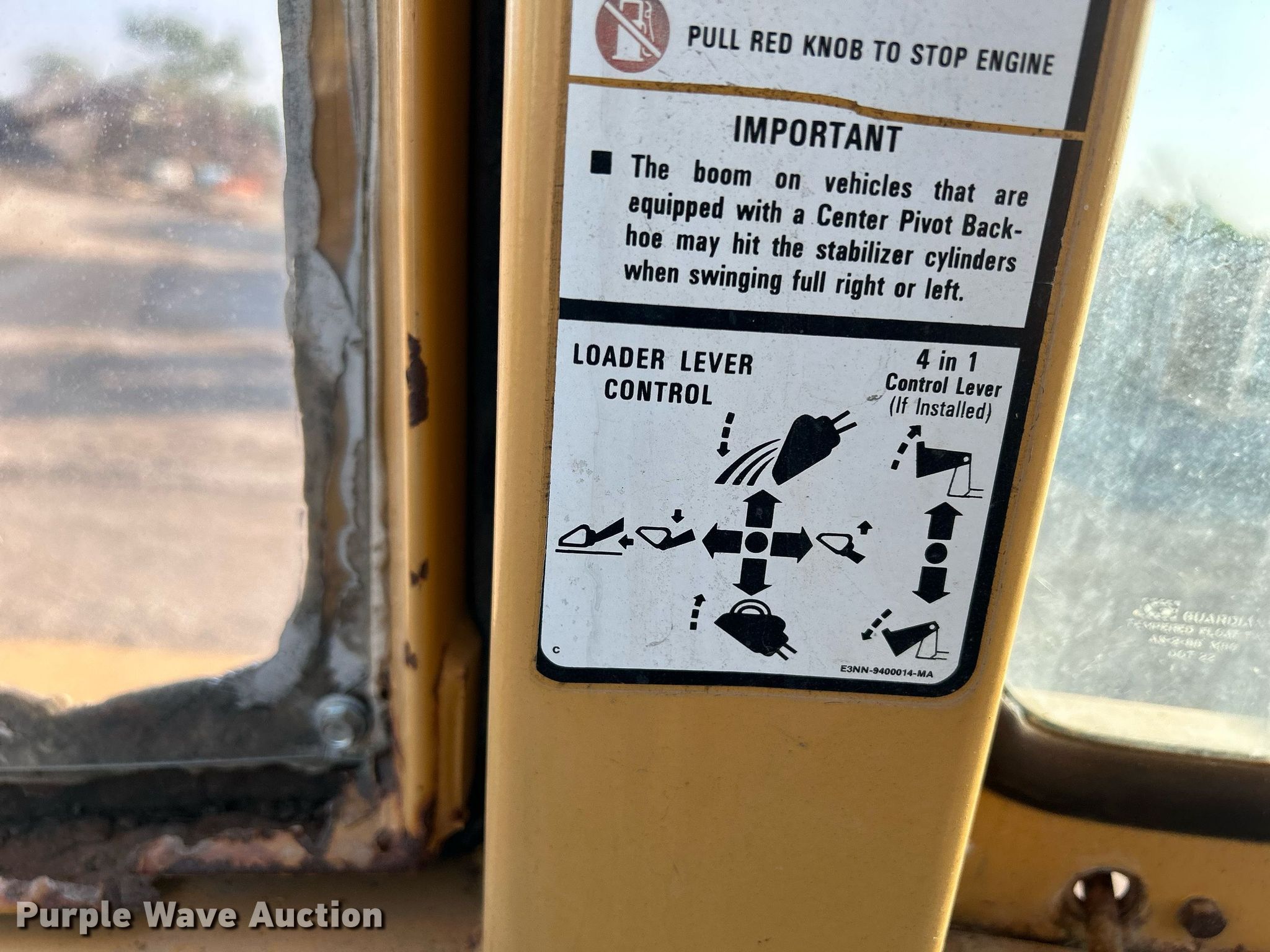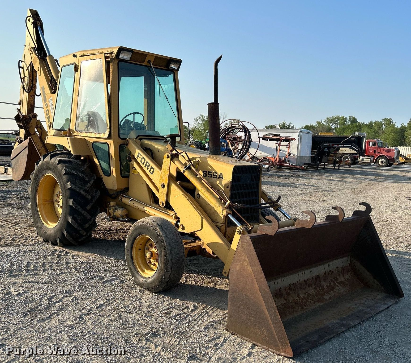 Ford 655A backhoe. Serial: C779868. Engine Ford, Cylinders: 4, Fuel type: Diesel. Transmission Shuttle shift, 4F - 4R. Chassis Differential lock. Operators station Enclosed cab, Backhoe controls: Four stick. Features Loader Bucket Width: 84", Backhoe Extendable stick, Bucket Width: 24", Cutting edge: Weld-on, Teeth: 4, Bucket Width: 35", Teeth: 6, Bucket Width: 17", Teeth: 3.. Tires Front: 11L-16, Rear: 16.9-28. Notes Glass cracked, Non-operational steering, Hydraulic issues, weak, Non-operational extendable stick, Front tire damaged, may need replaced. Lewis Backhoe & Excavating, Inc. - Open inspection June 16 and 28. 6645 Mitchell Road Southeast. Saint Joseph, MO 64507
