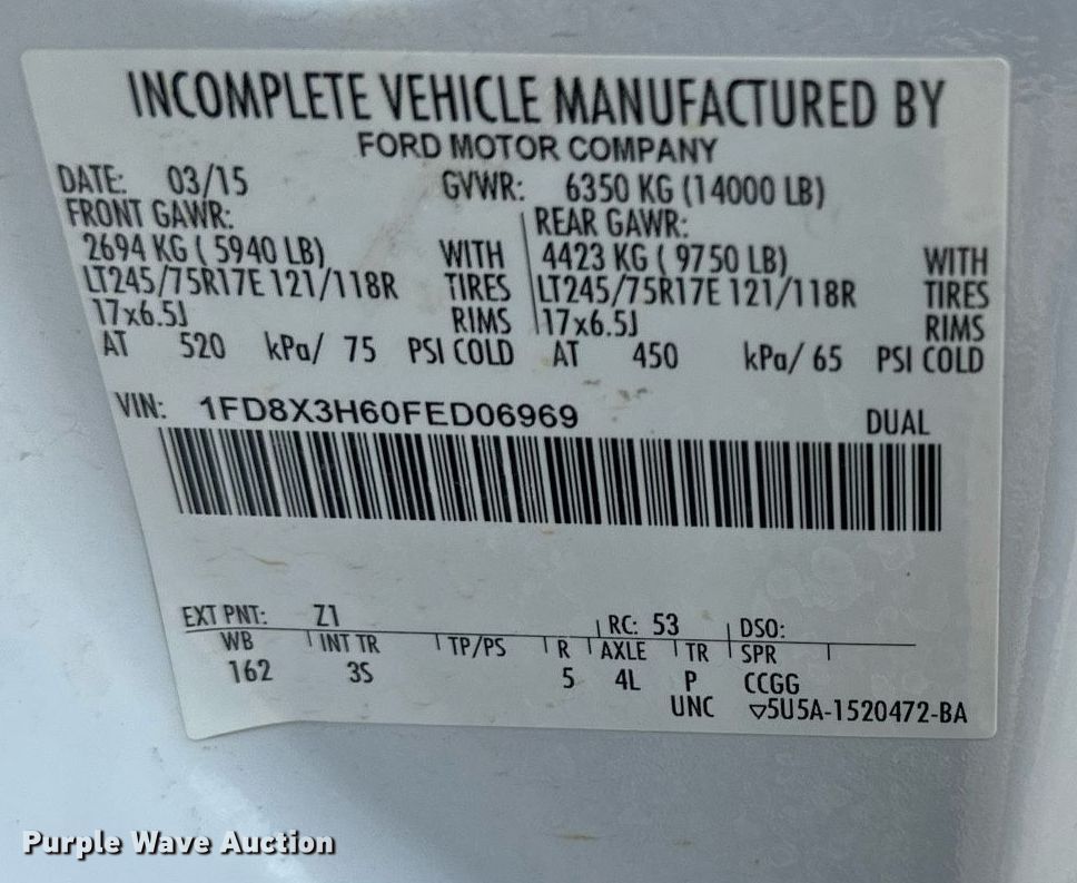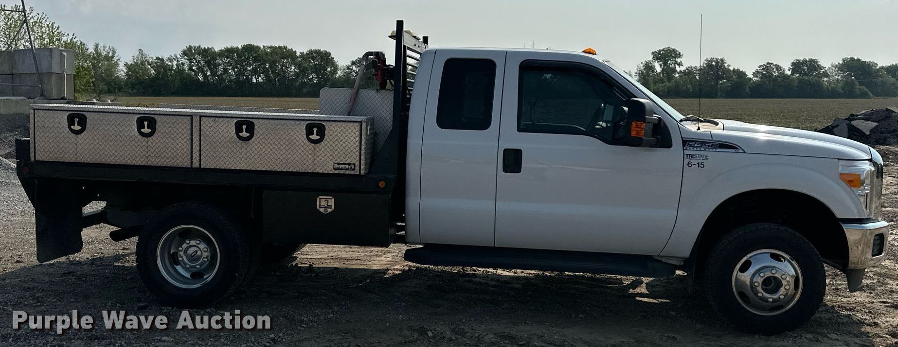 2015 Ford F350 Super Duty SuperCab flatbed pickup truck. Miles: 76,447 on odometer, VIN: 1FD8X3H60FED06969, Unit #: 6-15. Engine Displacement: 6.2L V8 OHV, Cylinders: 8, Fuel type: Gas. Transmission Automatic, Four wheel drive. Interior AC, Heat, Power windows, Power locks, Cruise control. Features Flatbed 9' L x 96" W, Hitch: Gooseneck. Tires Size: 245/75R17. Missouri title. Title distribution may be delayed up to 14 days from verification of funds. Lewis Backhoe & Excavating, Inc. - Open inspection June 16 and 28. 6645 Mitchell Road Southeast. Saint Joseph, MO 64507