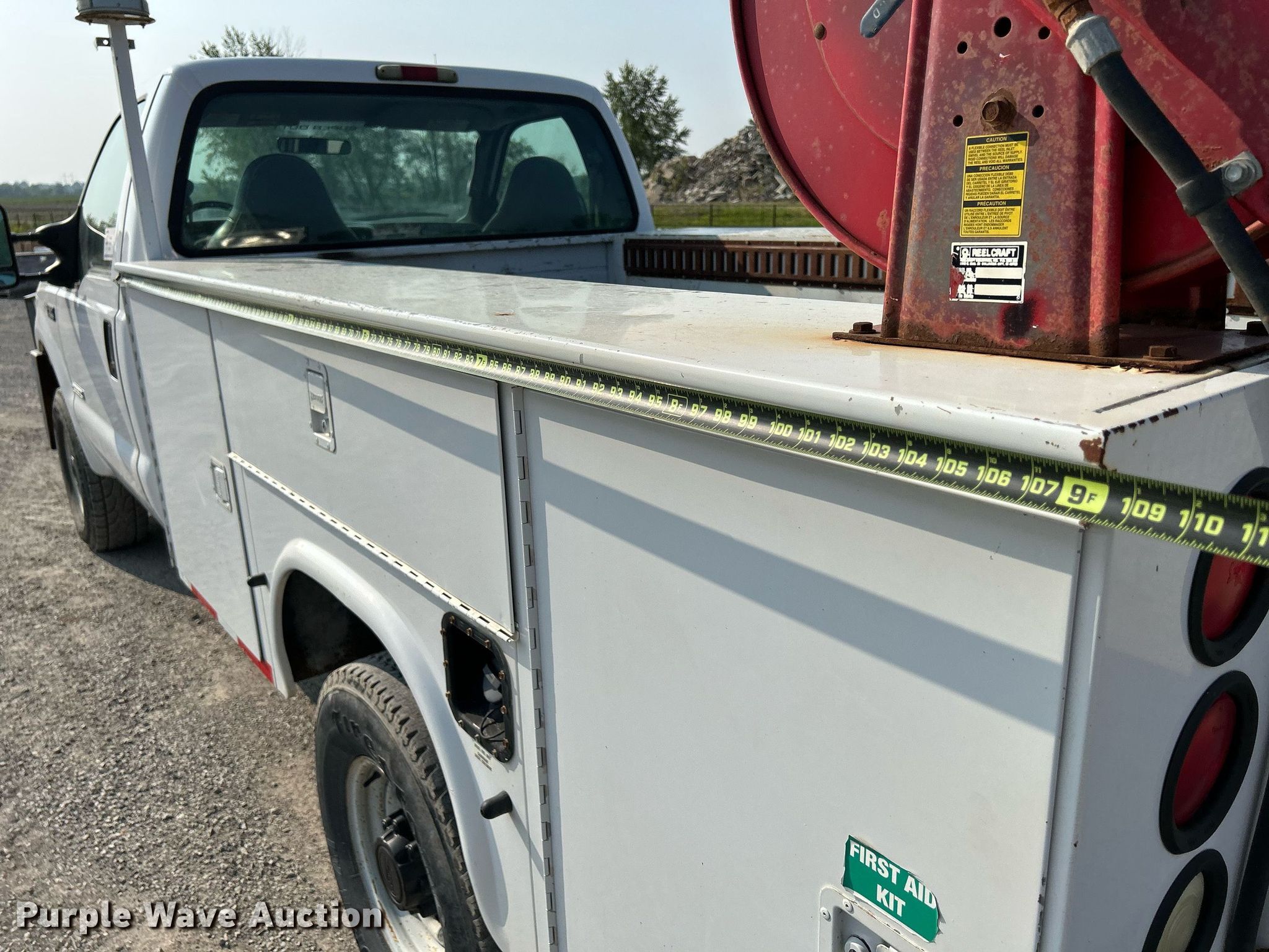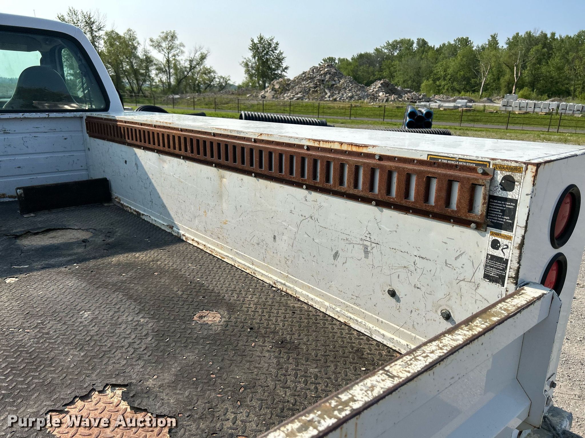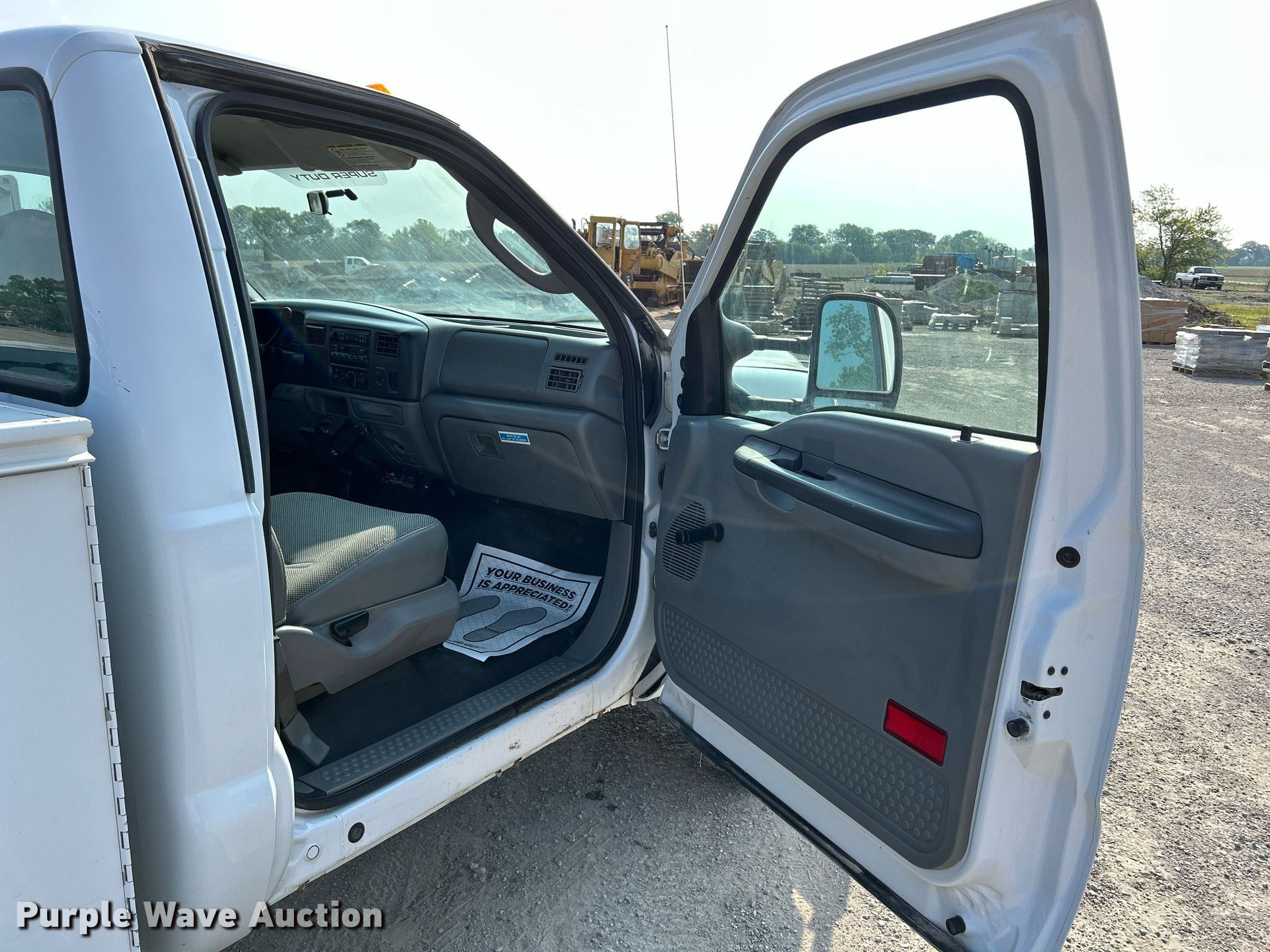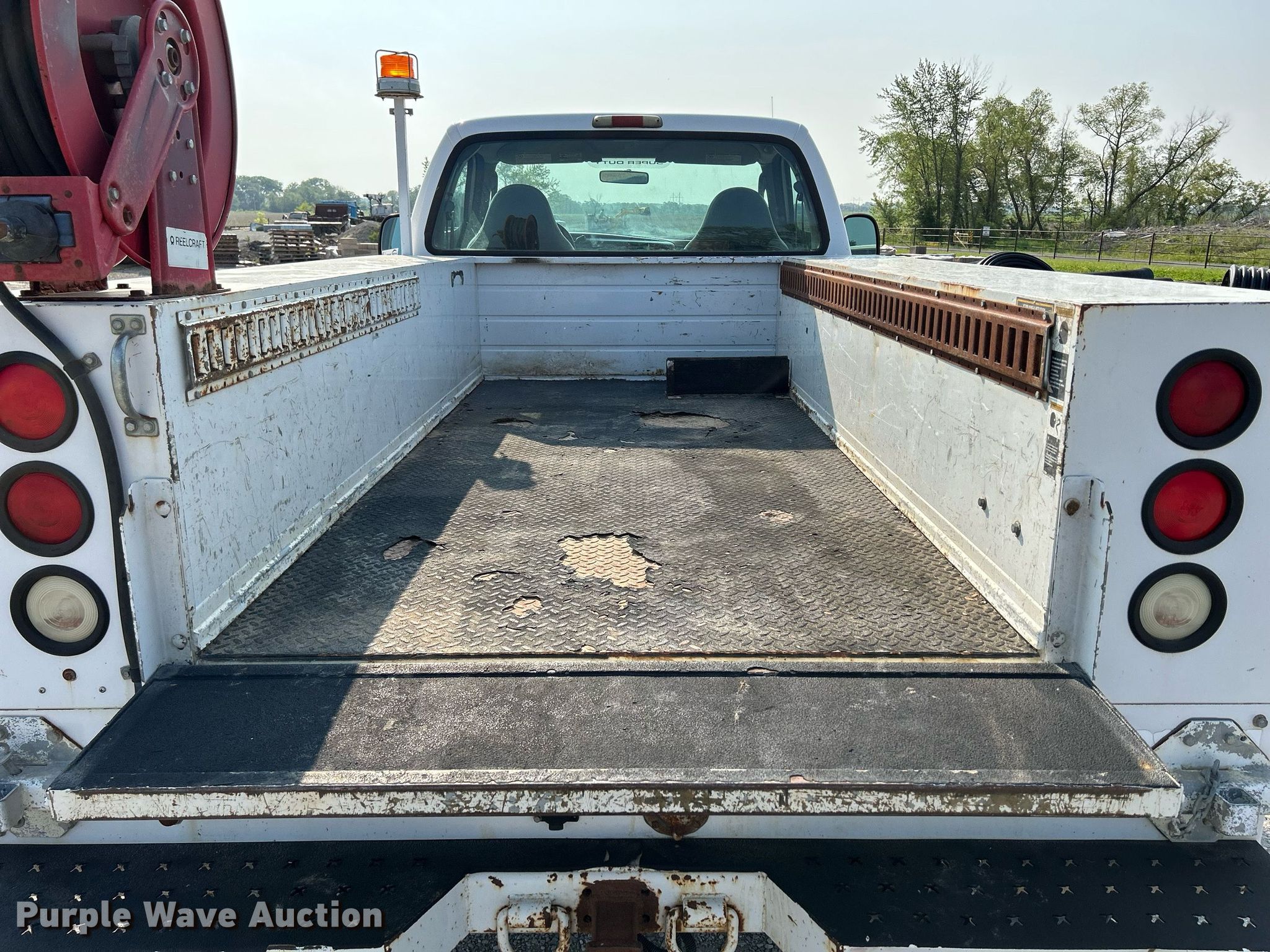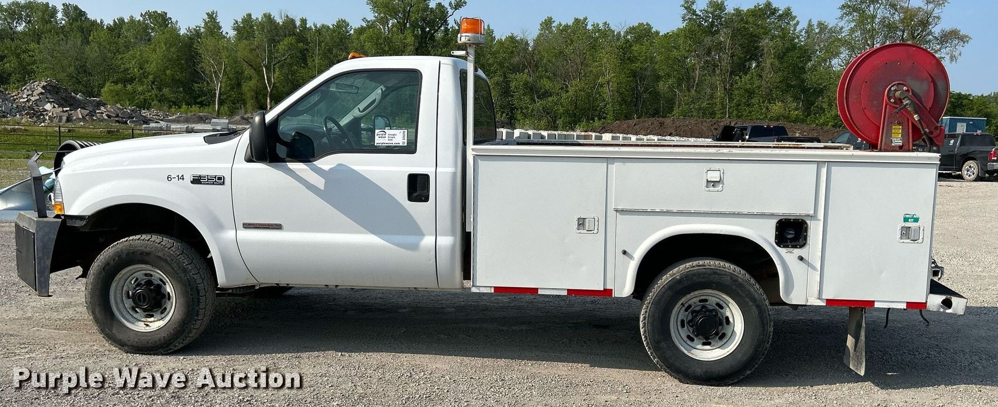 This 2004 Ford F350 Super Duty XL utility bed pickup truck will sell to the highest bidder regardless of price.
