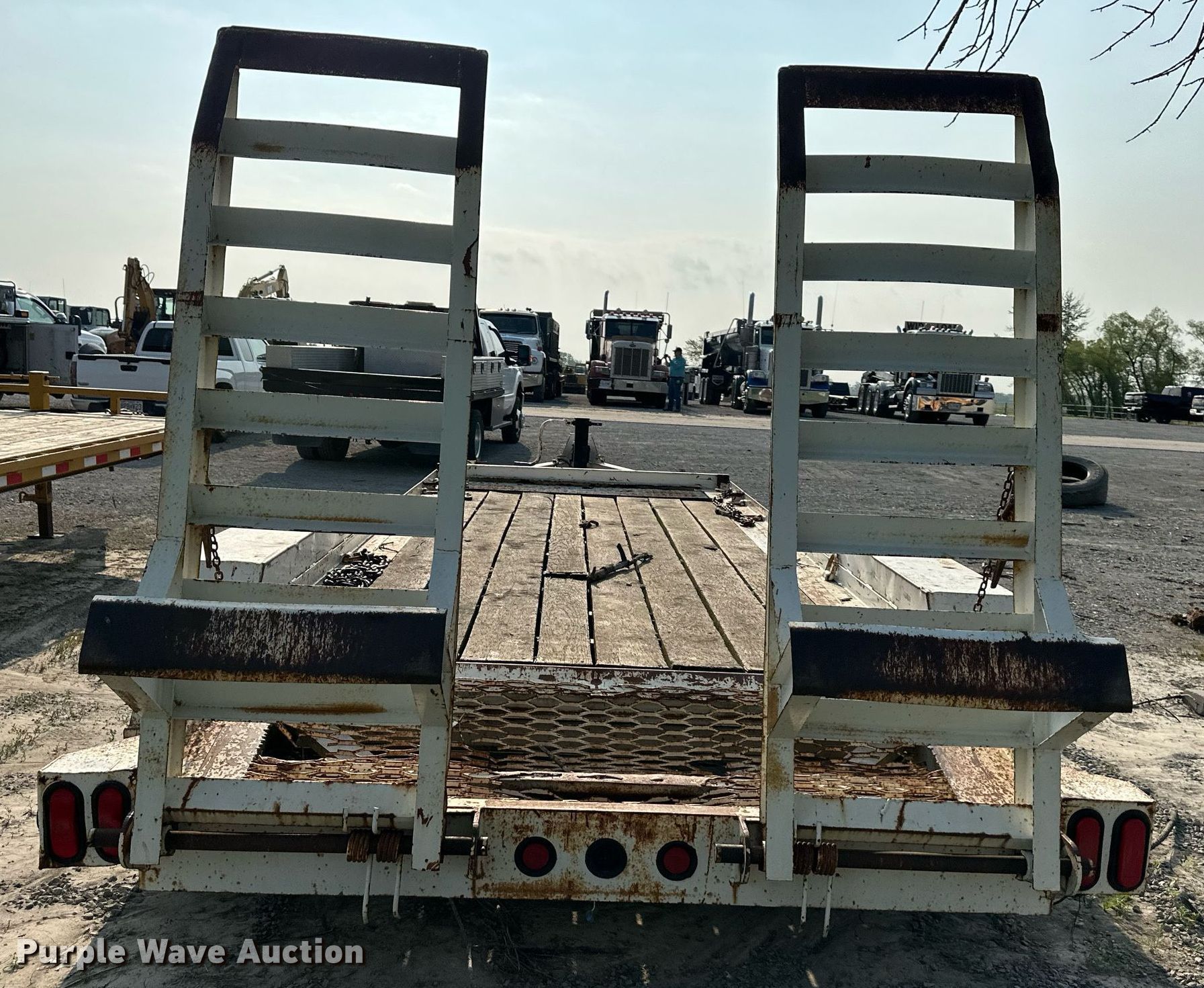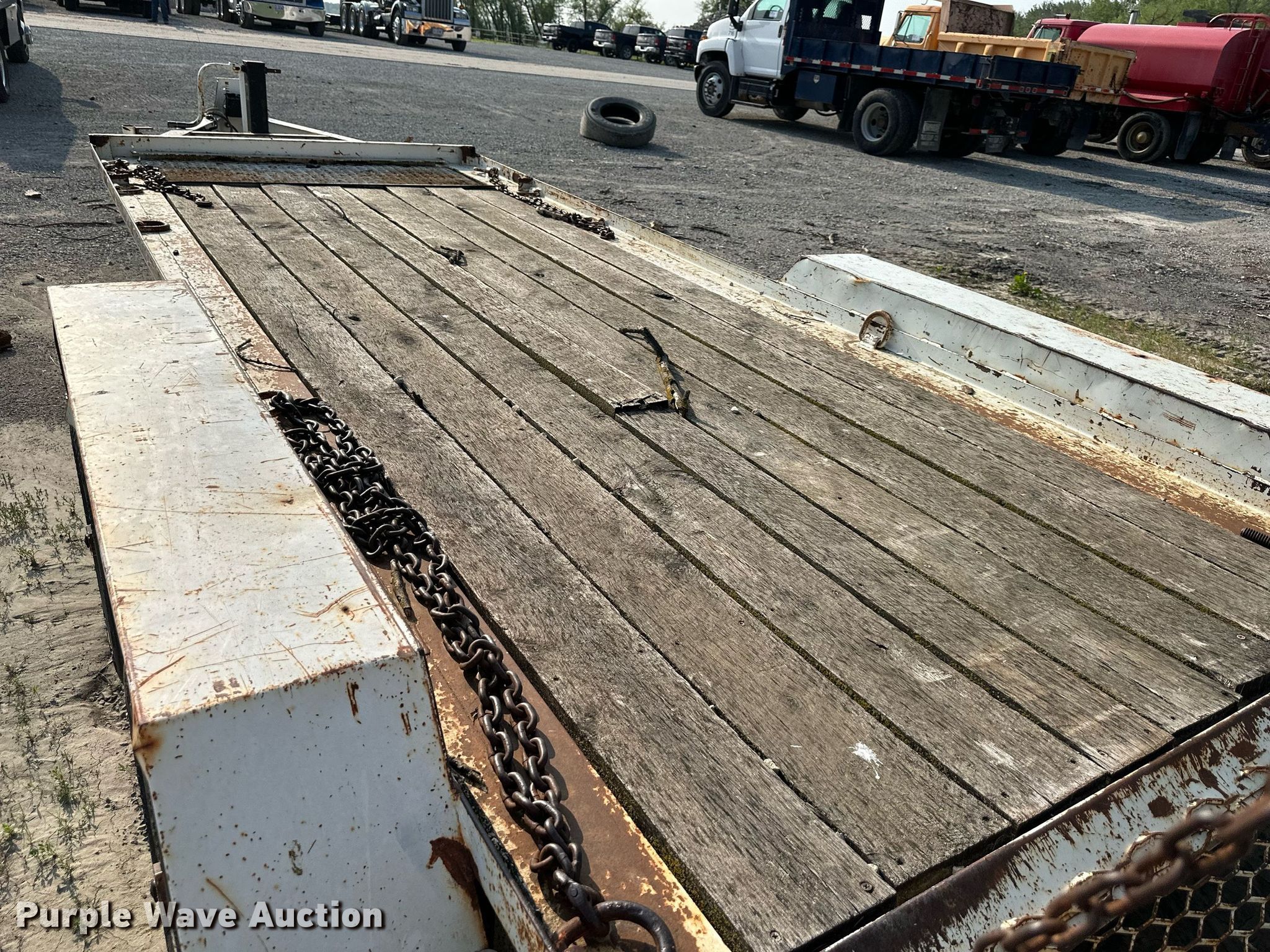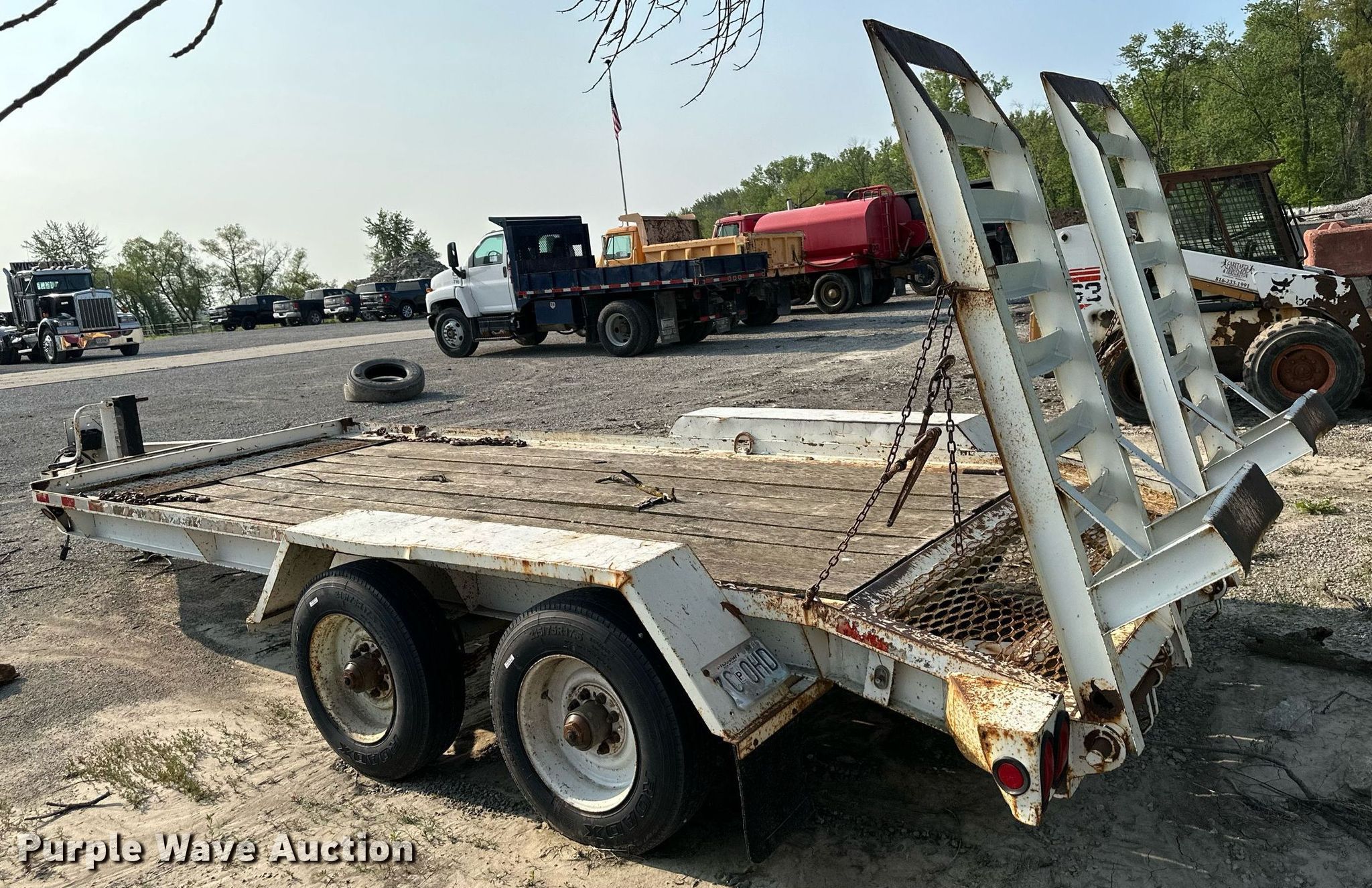 1997 Towmaster T-18 equipment trailer. Dimensions. Overall: 24' 6" L x 101" W, Deck: 16' L x 79" W, Tail length: 28", Ramps: Manual Length: 70". Features Deck type: Wood. Chassis Hitch: Pintle, Landing gear: Single, Suspension: Spring, Brakes: Electric, Axles: Tandem. Tires Steel wheels, Size: 215/75R17.5. Missouri title. Title distribution may be delayed up to 14 days from verification of funds. Lewis Backhoe & Excavating, Inc. - Open inspection June 16 and 28. 6645 Mitchell Road Southeast. Saint Joseph, MO 64507