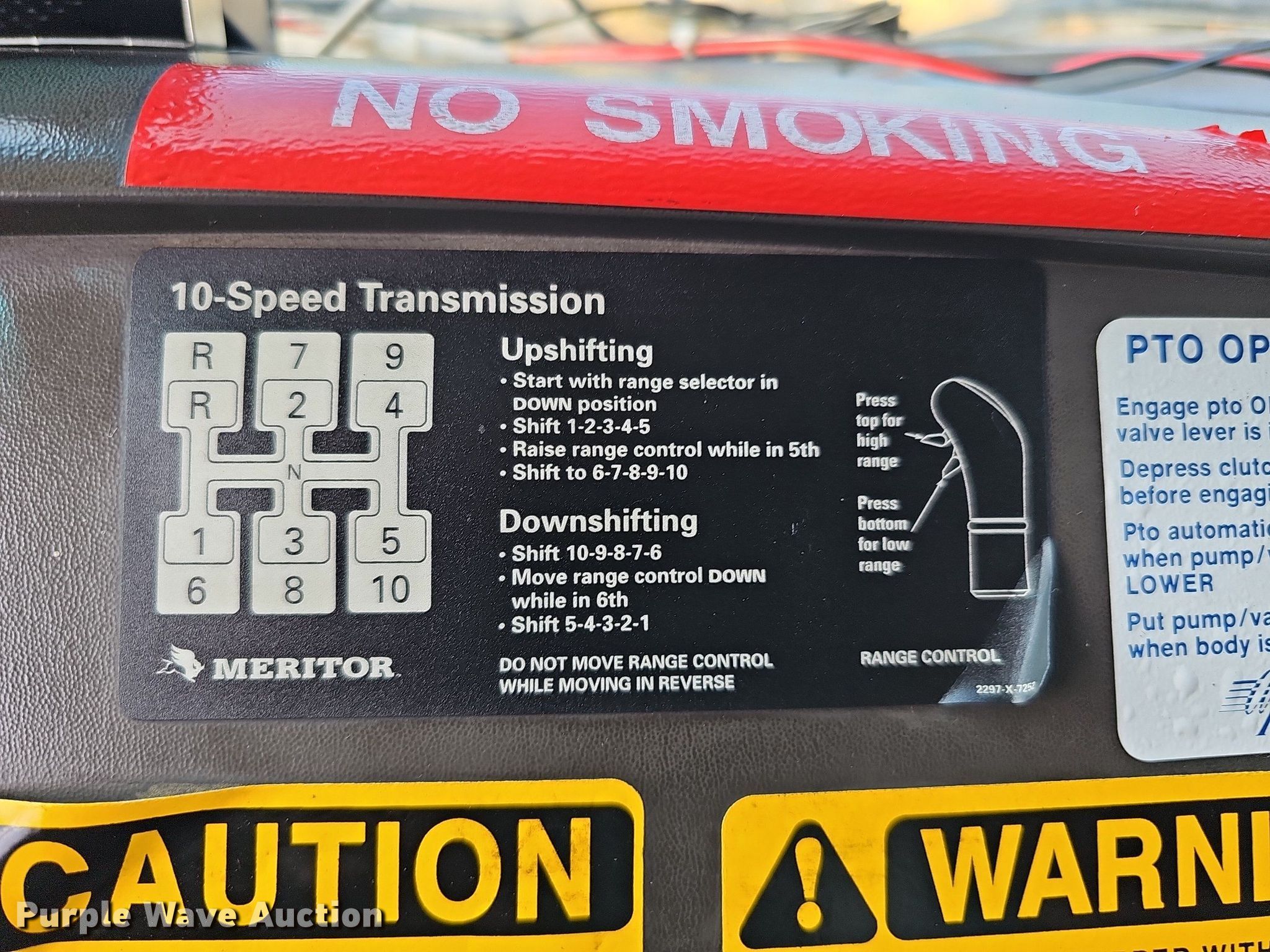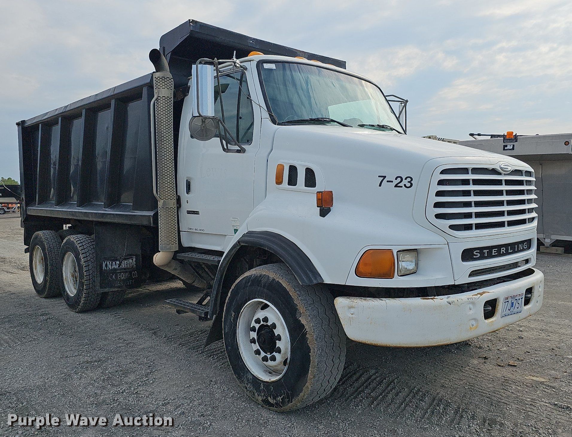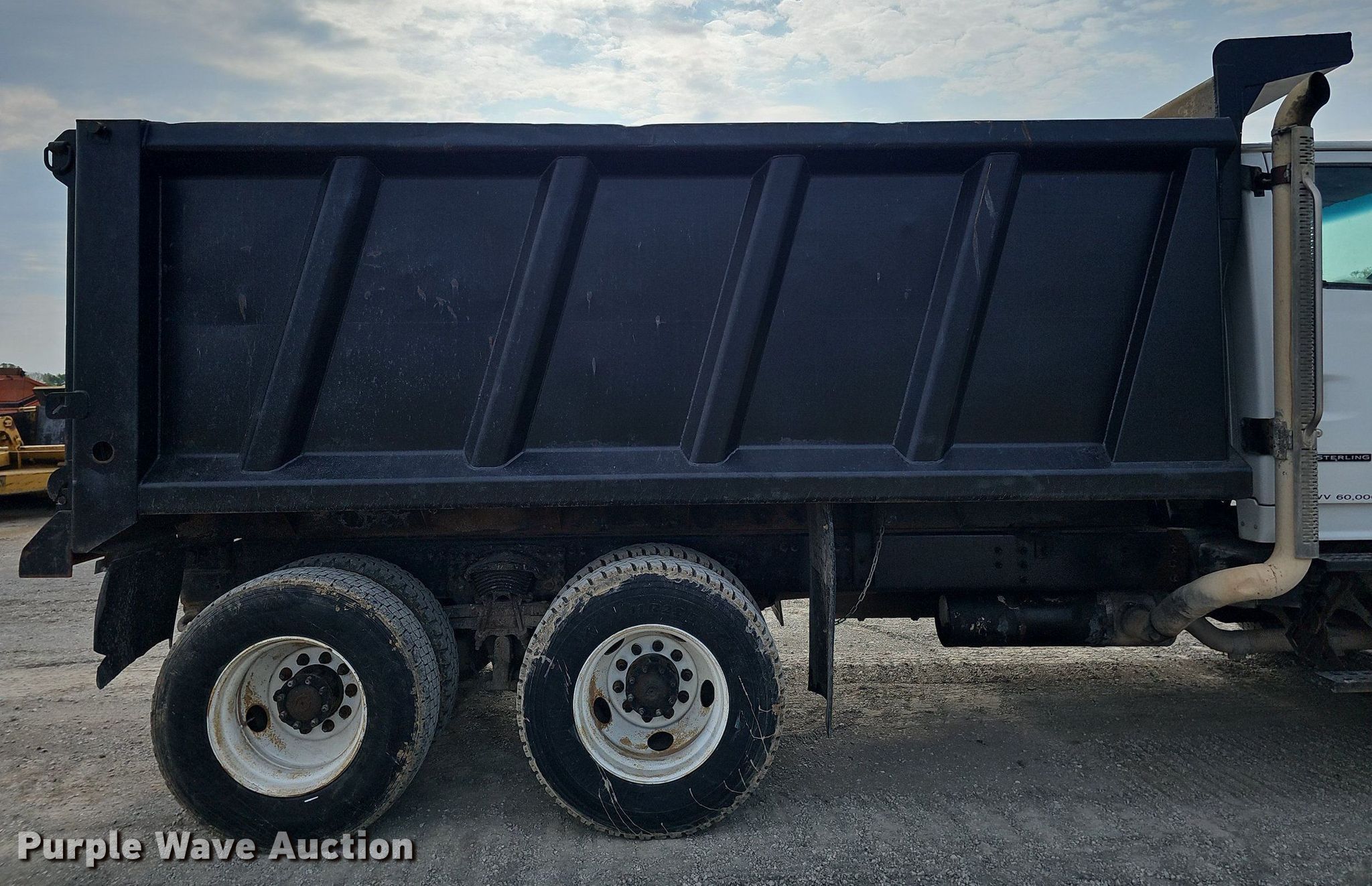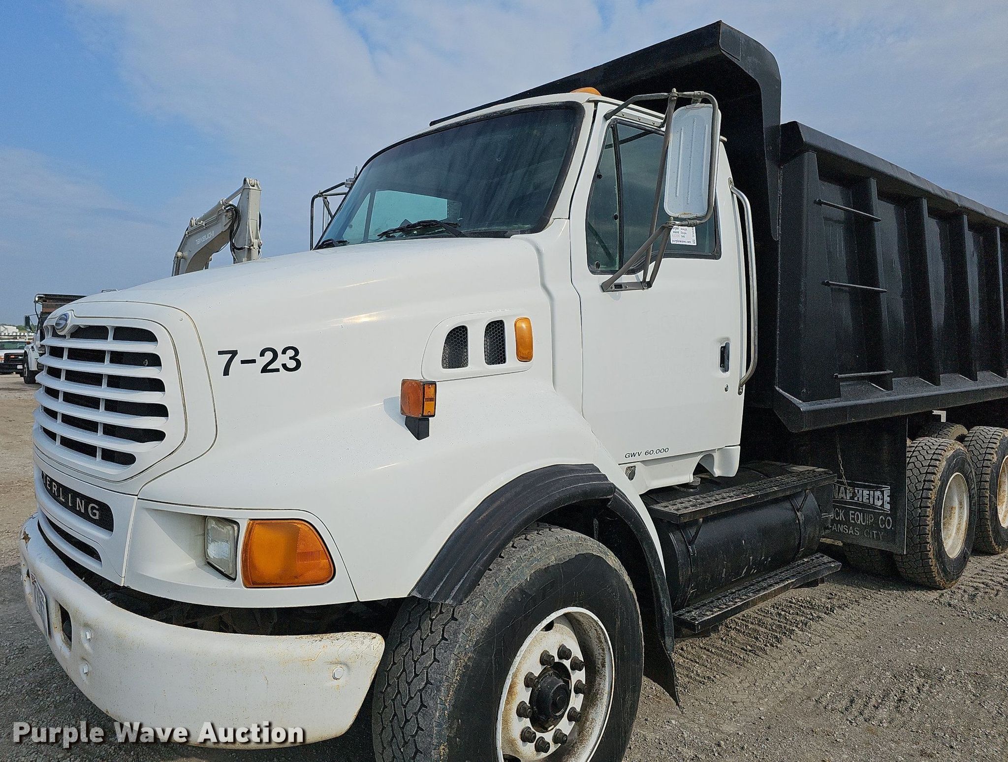 2001 Sterling L9500 dump truck. Miles: 23,694 on odometer, Hours: 6,009 on meter, VIN: 2FZHAZAN71AJ38691. Engine Caterpillar C10, Displacement: 10.3L, Cylinders: 6, Fuel type: Diesel. Transmission Meritor, Manual, Speed: 10. Chassis Axles: Tandem, Differential lock: Inter-axle, Suspension: Spring over walking beam, Brakes: Air, PTO, GVWR: 60,000 lbs FAWR: 20,000 lbs, IAWR: 20,000 lbs, RAWR: 20,000 lbs. Interior AC, Heat. Features Dump bed 15' L x 96" W, Side height: 60", Bed type: Steel, Liner, Ram: Single , End gate: Air operated. Tires Front: 385/65R22.5, Rear: 11R22.5. Missouri title. Title distribution may be delayed up to 14 days from verification of funds. Lewis Backhoe & Excavating, Inc. - Open inspection June 16 and 28. 6645 Mitchell Road Southeast. Saint Joseph, MO 64507